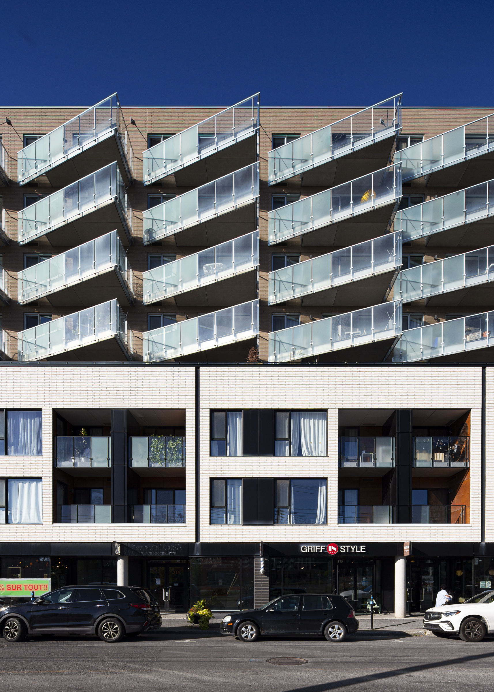 Une belle densité, un design original, une construction en bois, des commerces au rdc et une hauteur qui permet de voir le ciel au niveau de la rue. Toutes des caractéristiques qui font de ce complexe résidentiel un atout urbanistique indéniable pour le quartier.