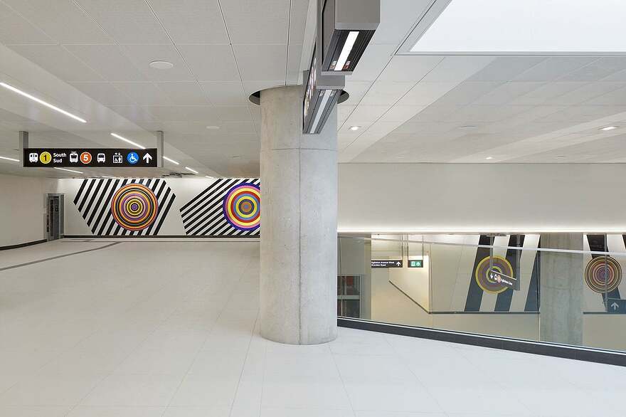 Trois ailes principales se déploient autour d’un noyau central comprenant le hall d’entrée et un escalier circulaire, facilitant la circulation active entre les espaces communs et les logements situés à l’étage. Depuis l’entrée principale, traversante entre les façades nord et sud, un parcours animé par des œuvres d’artistes du Nunavik ponctue les espaces communautaires. Les résident·e·s ont accès à des salles d’activités aménagées sur différents niveaux ainsi qu’un grand salon commun offrant une vue privilégiée sur le village et le fleuve Koksoak. À l’extérieur, une rampe au tracé ludique mène à une cour de jeux adaptée aux petits et grands.