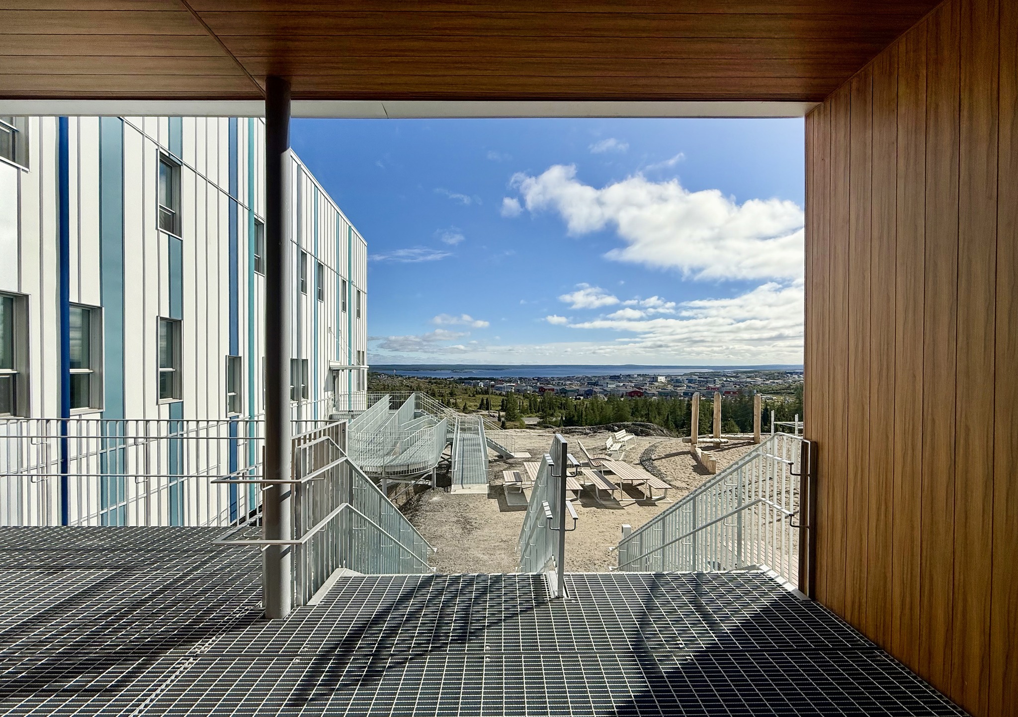 La résidence étudiante comprend 38 logements avec espaces de vie communautaires. Accueillant étudiant·e·s adultes et jeunes parents avec leurs familles, elle constitue le premier édifice d’un futur campus d’enseignement développé par la commission scolaire Kativik Ilisarniliriniq pour desservir 14 villages nordiques.