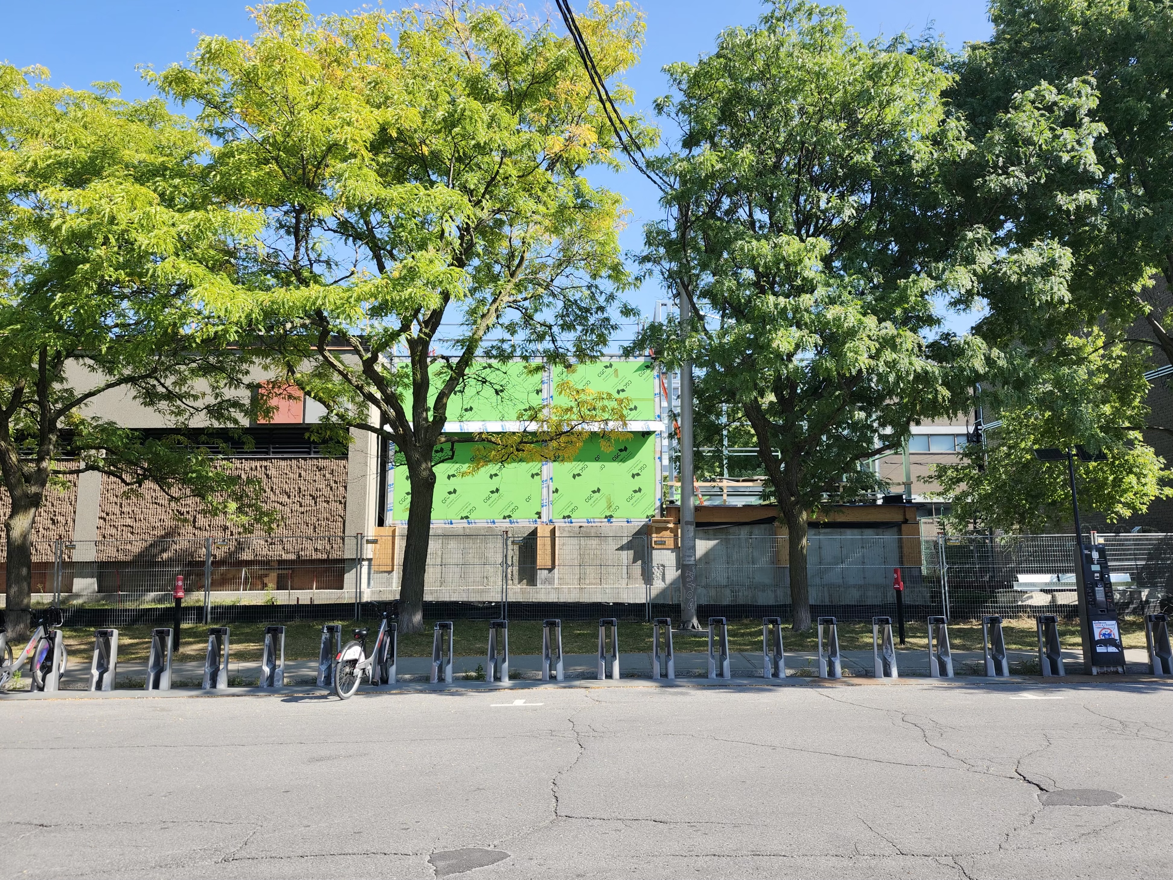 On peut voir un peu de travaux visibles de l’extérieur. Il y a aussi de l’excavation dans le stationnement (qui sera intégré au parc).
