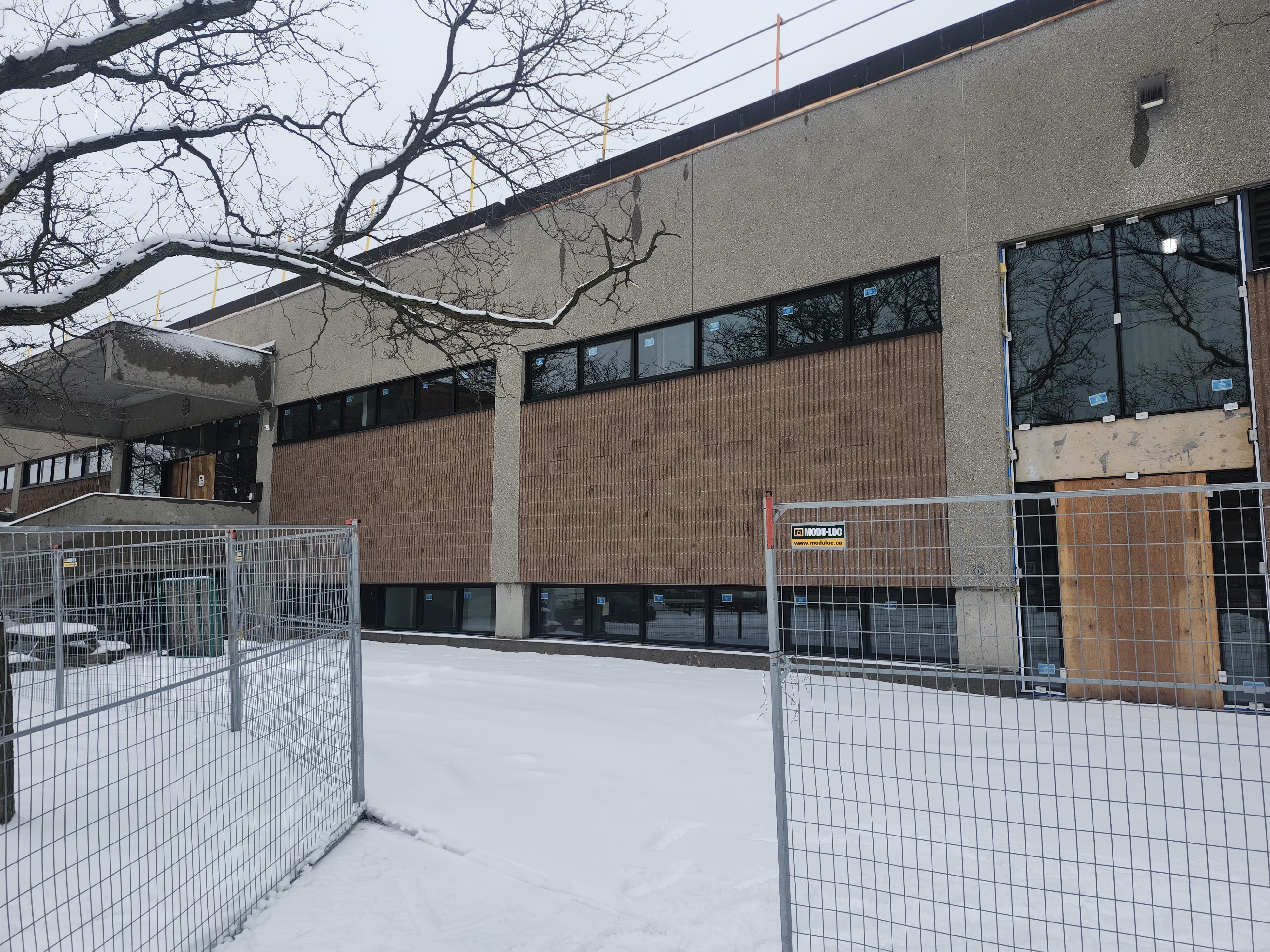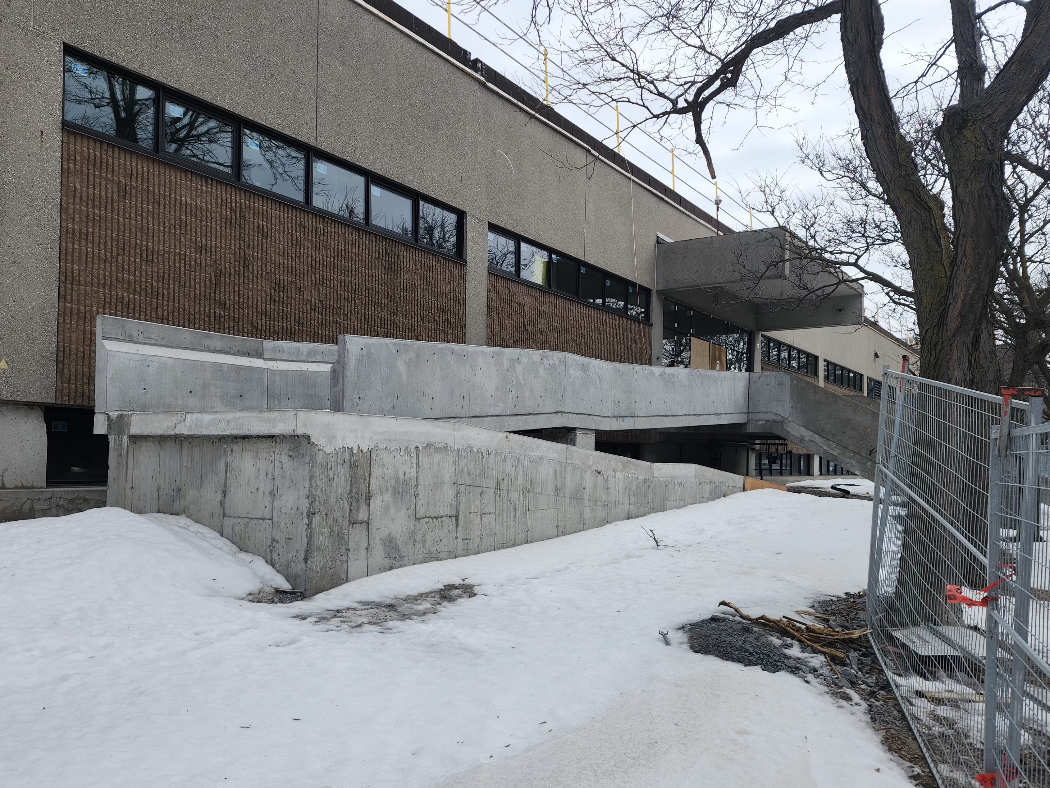 Nouveau revêtement sur l’extension, la nouvelle rampe pour l’entrée, et le nouveau vitrage de l’entrée :
