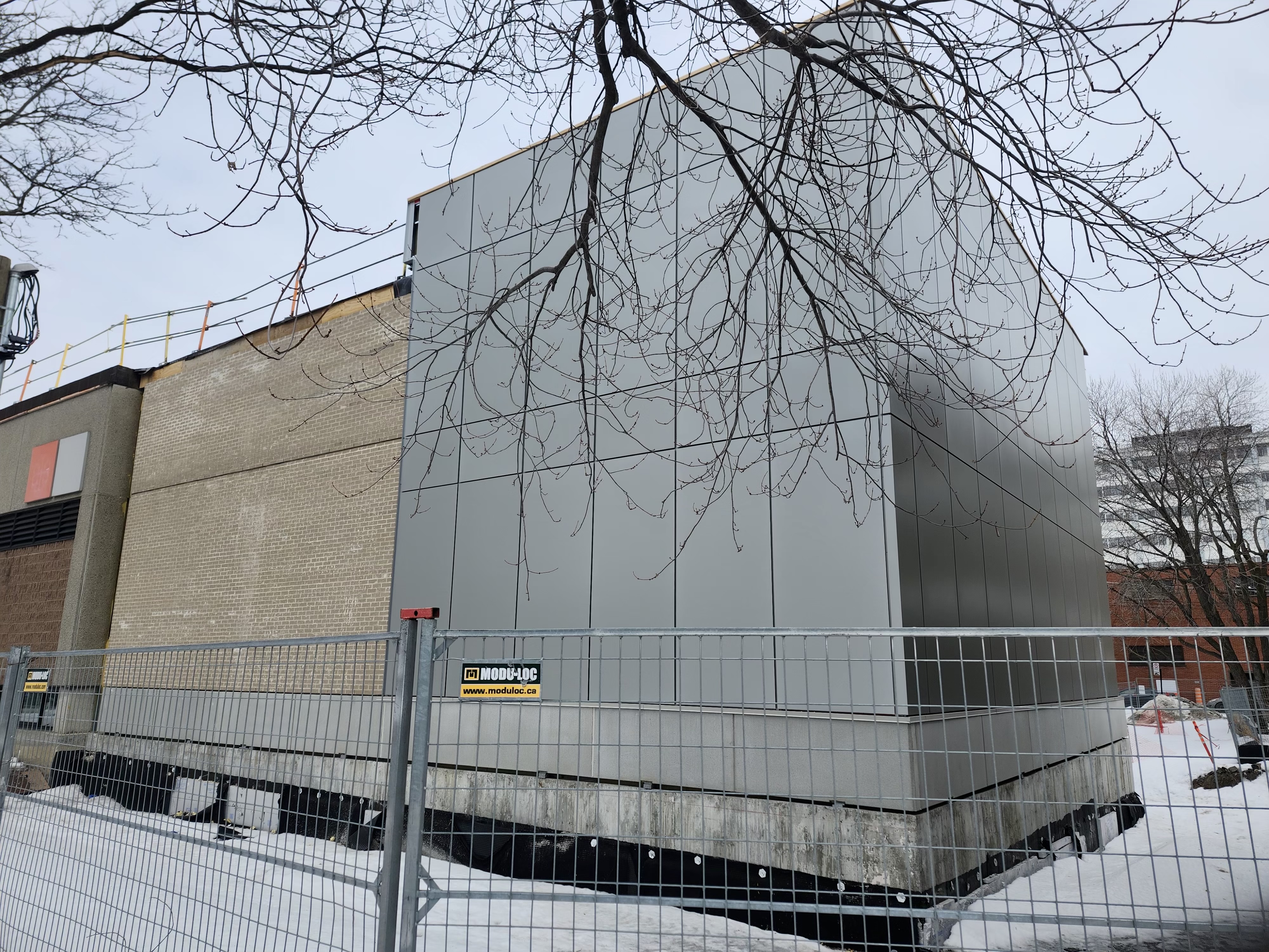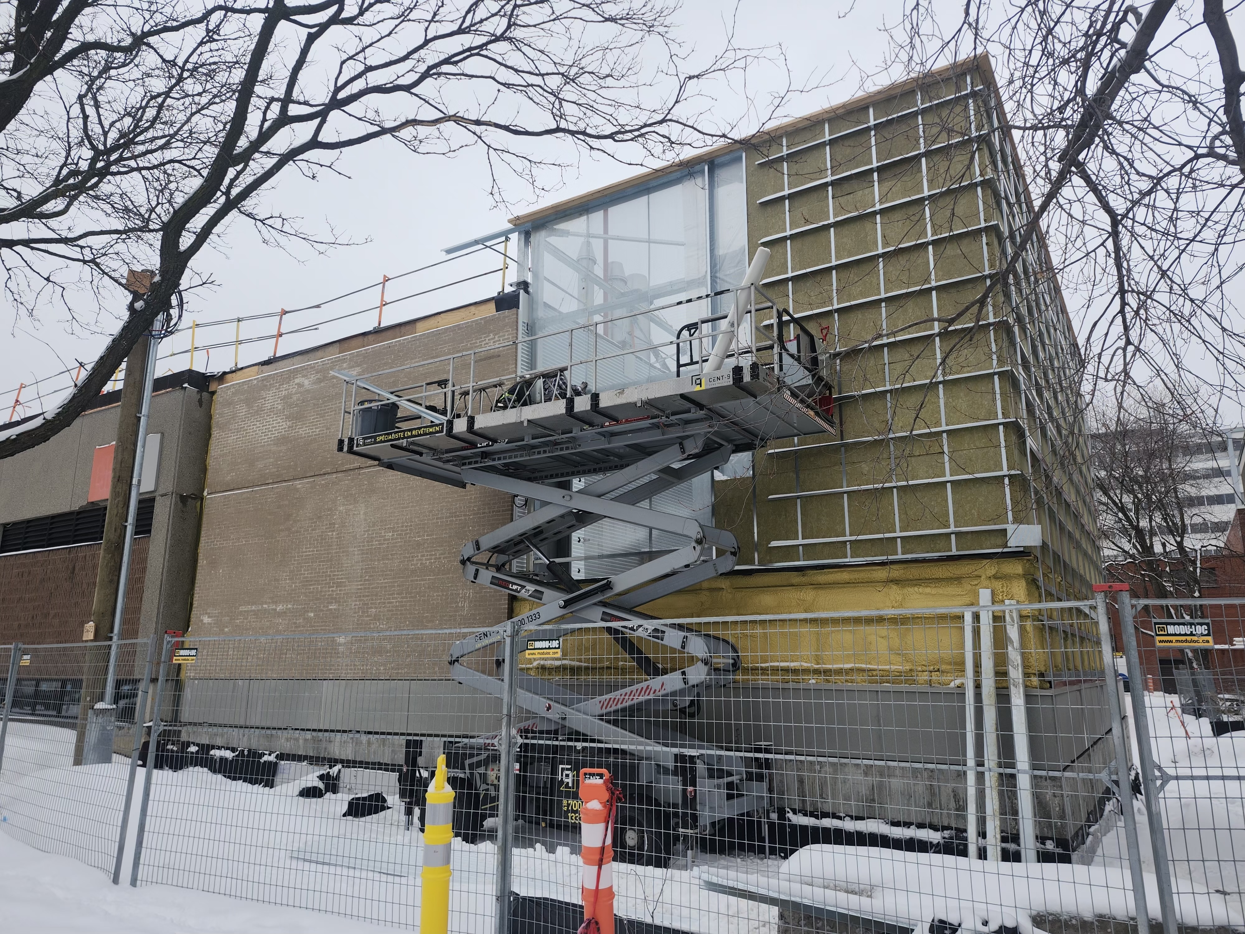 Le chantier est emballé pour l’hiver, et il y a maintenant un nouveau mur de brique sur l’extension. travaux sur la machinerie à l’intérieur.