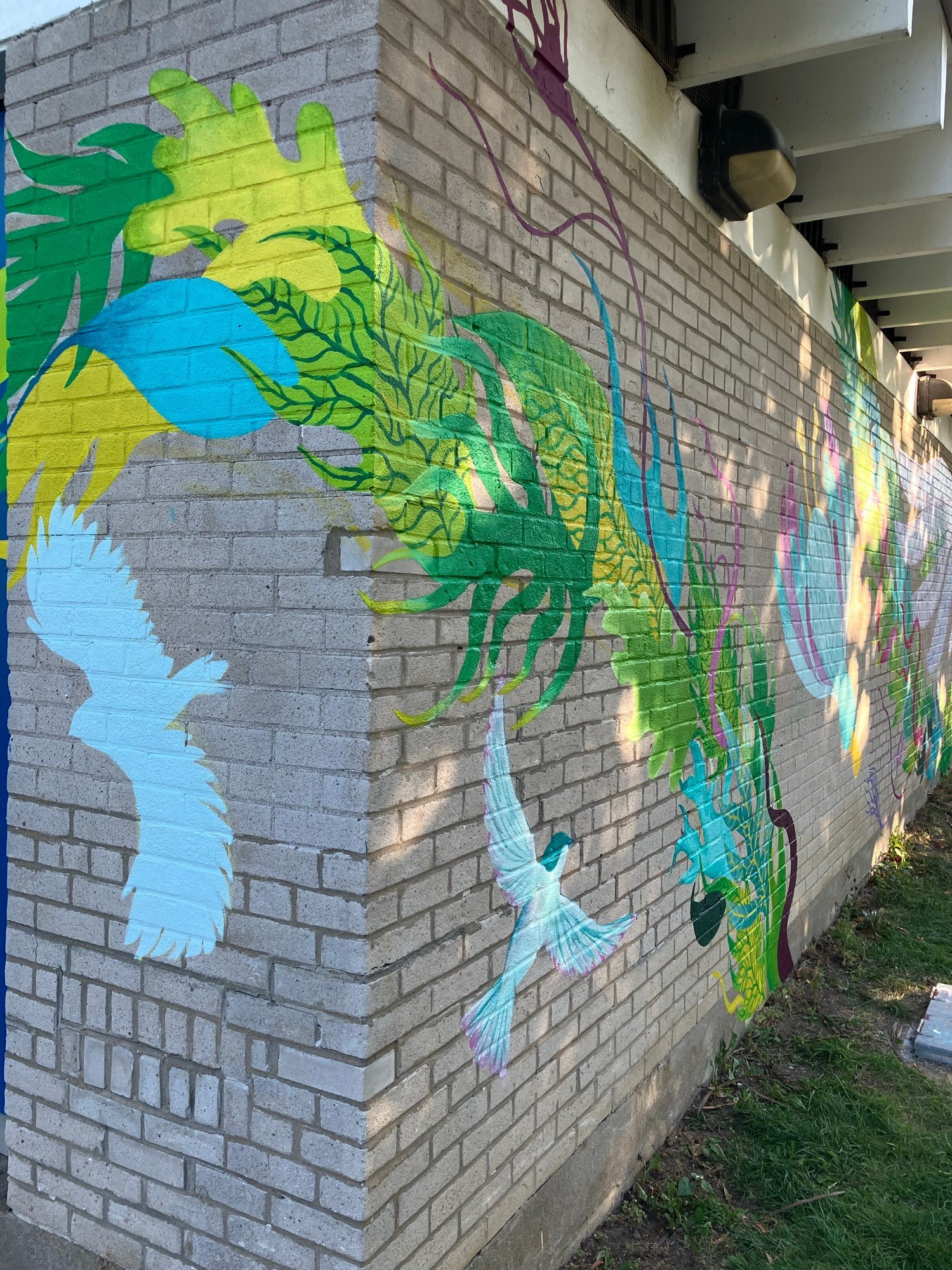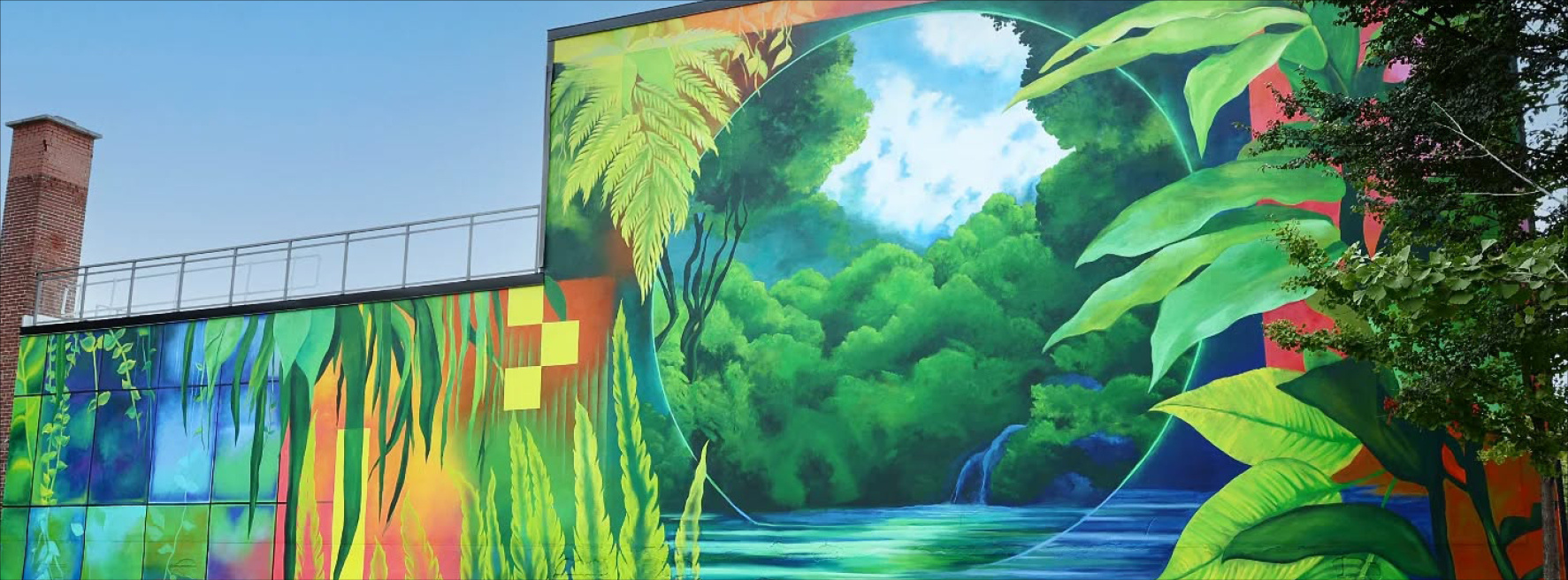 La nouvelle murale « Îlot de fraîcheur » réalisée par Izabelle Duguay sur notre territoire.