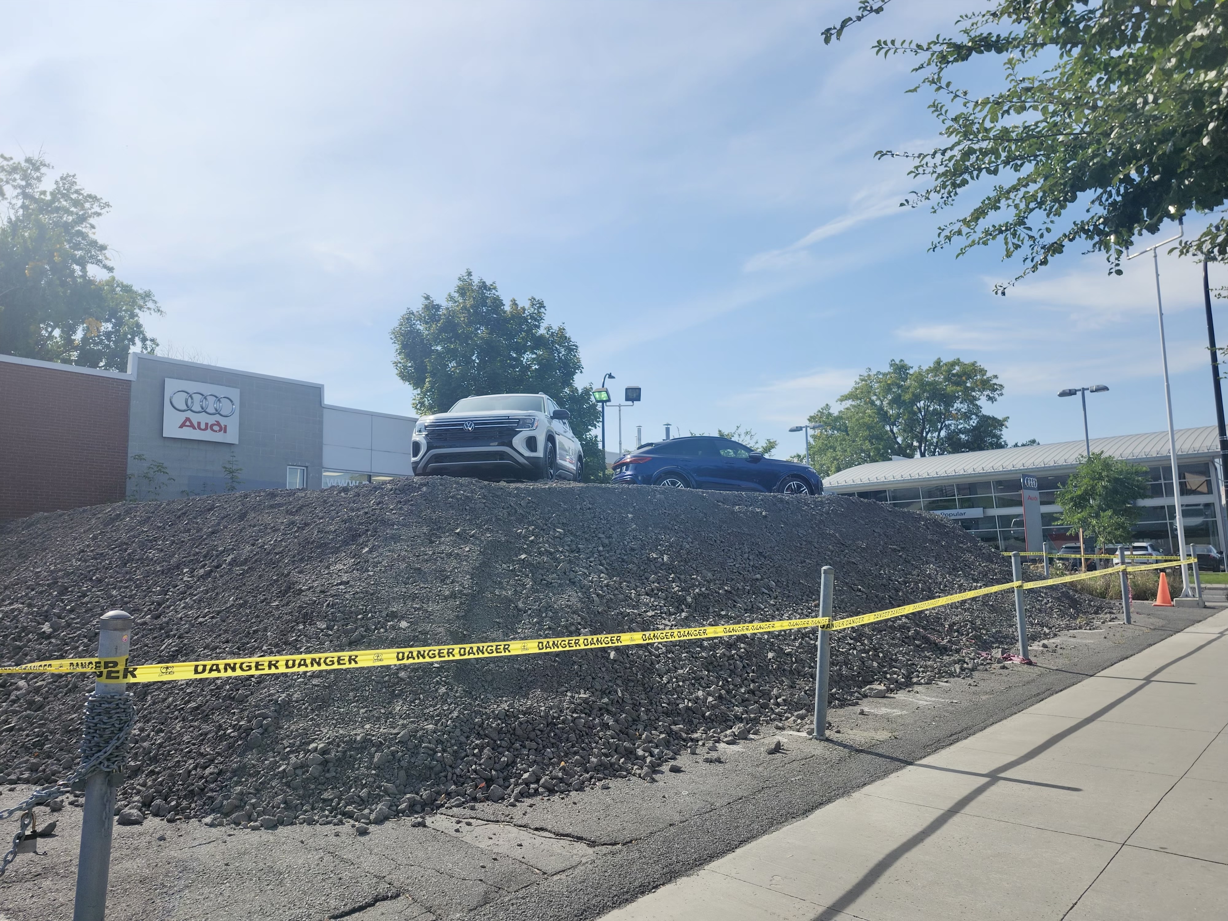 On reconstruit les deux bâtiments du concessionnaire. Honnêtement, j’aurais au minimum préféré une consolidation des concessionnaires Popular - il y a un Volkswagen Popular coin sud-est.