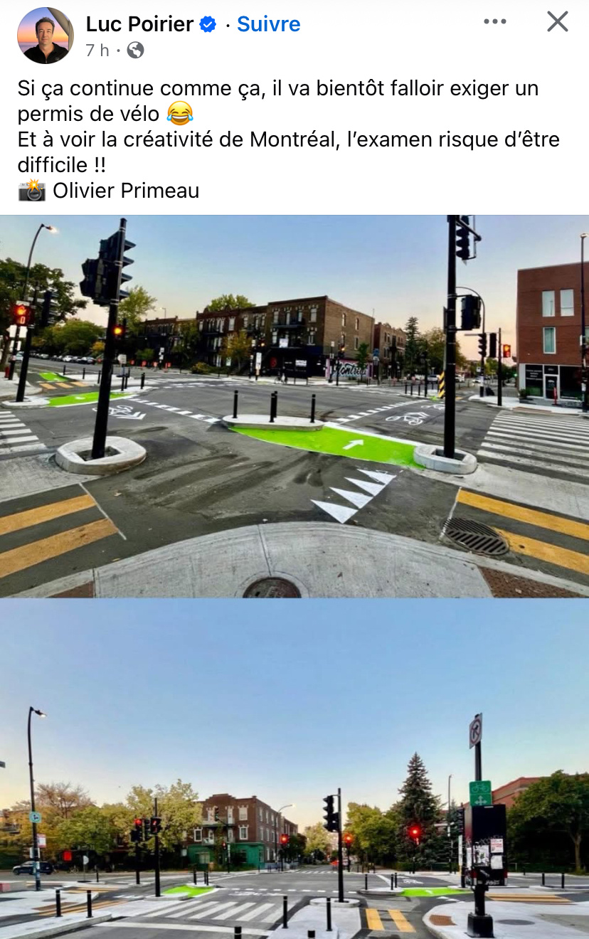 Je ne sais pas si c’est un effet de la vidéo vs être en personne, mais j’adore voir les virages à droite des véhicules qui se font plus lentement grâce à l’aménagement!