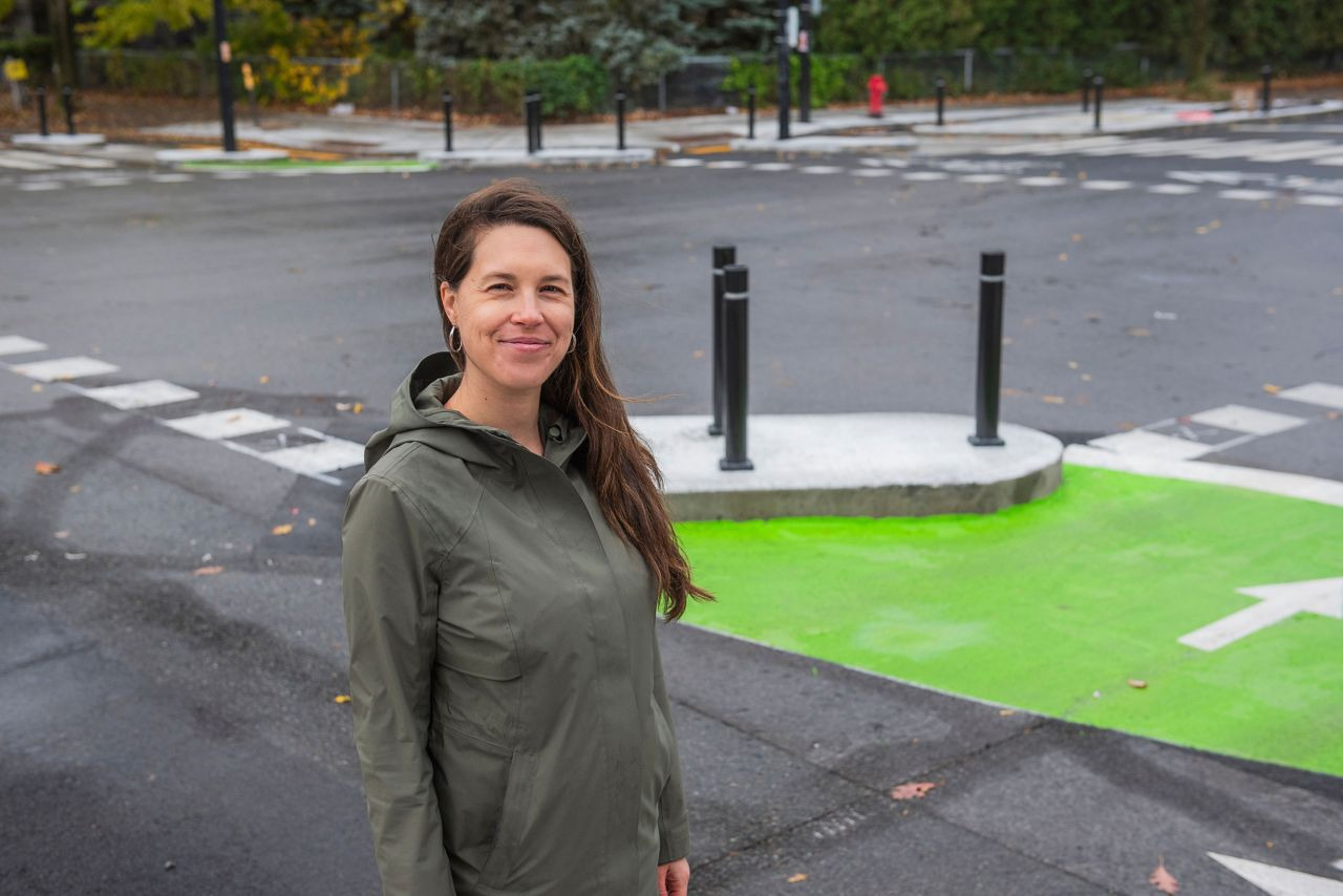 Je suis fière d’avoir contribué à ce projet qui place la sécurité et le confort des usagers vulnérables au cœur de l’aménagement urbain, contribue à atteindre nos objectifs de faire du vélo une option modale attractive, apaise la rue, crée des quartiers à échelle humaine, et contribue à réduire à zéro le nombre de décès et de blessures graves causés par une collision routière. »