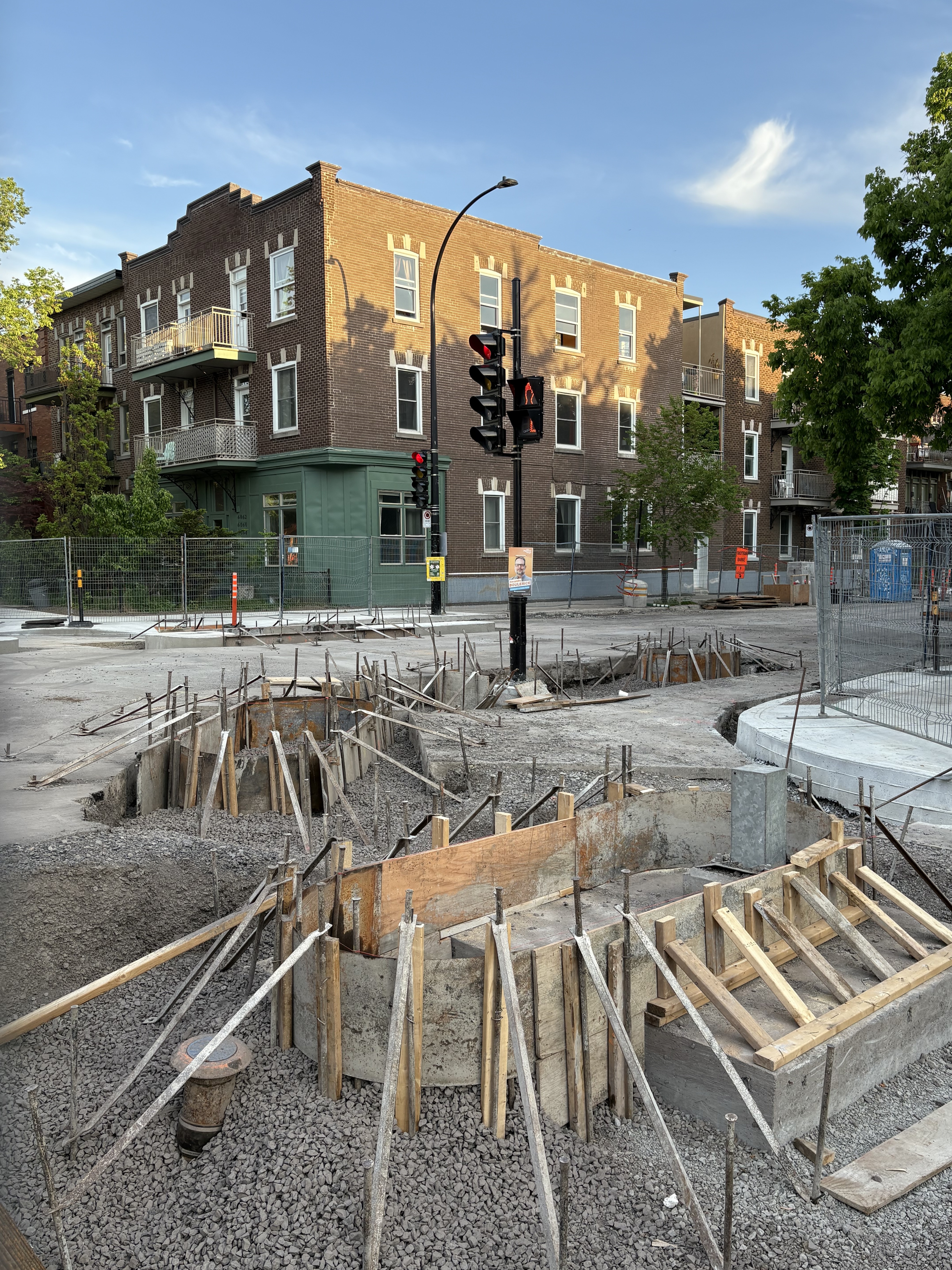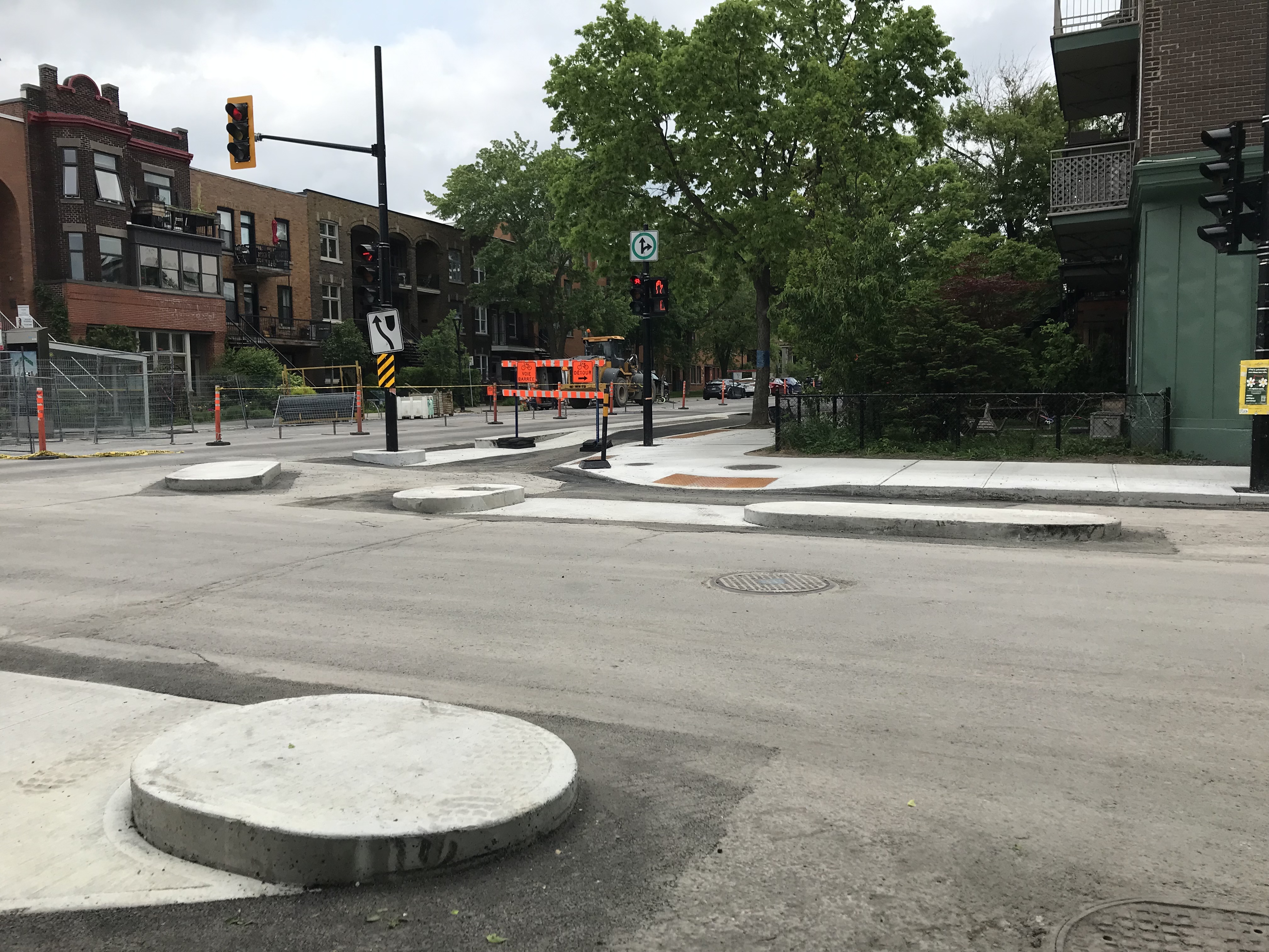 En passant ce matin, j’ai dit un gros merci à une des employés du chantier pour ce travail qui est plus que nécessaire. C’est certain qu’elle fait seulement son boulot mais elle était tout de même contente d’entendre du positif dans sa journée. Bref, elle me laissait savoir que c’était très compliqué comme travaux, mais je me suis bien garder de lui dire que c’était seulement parce que c’est pas quelque chose d’habituel pour Montréal d’avoir des intersections de ce genre.