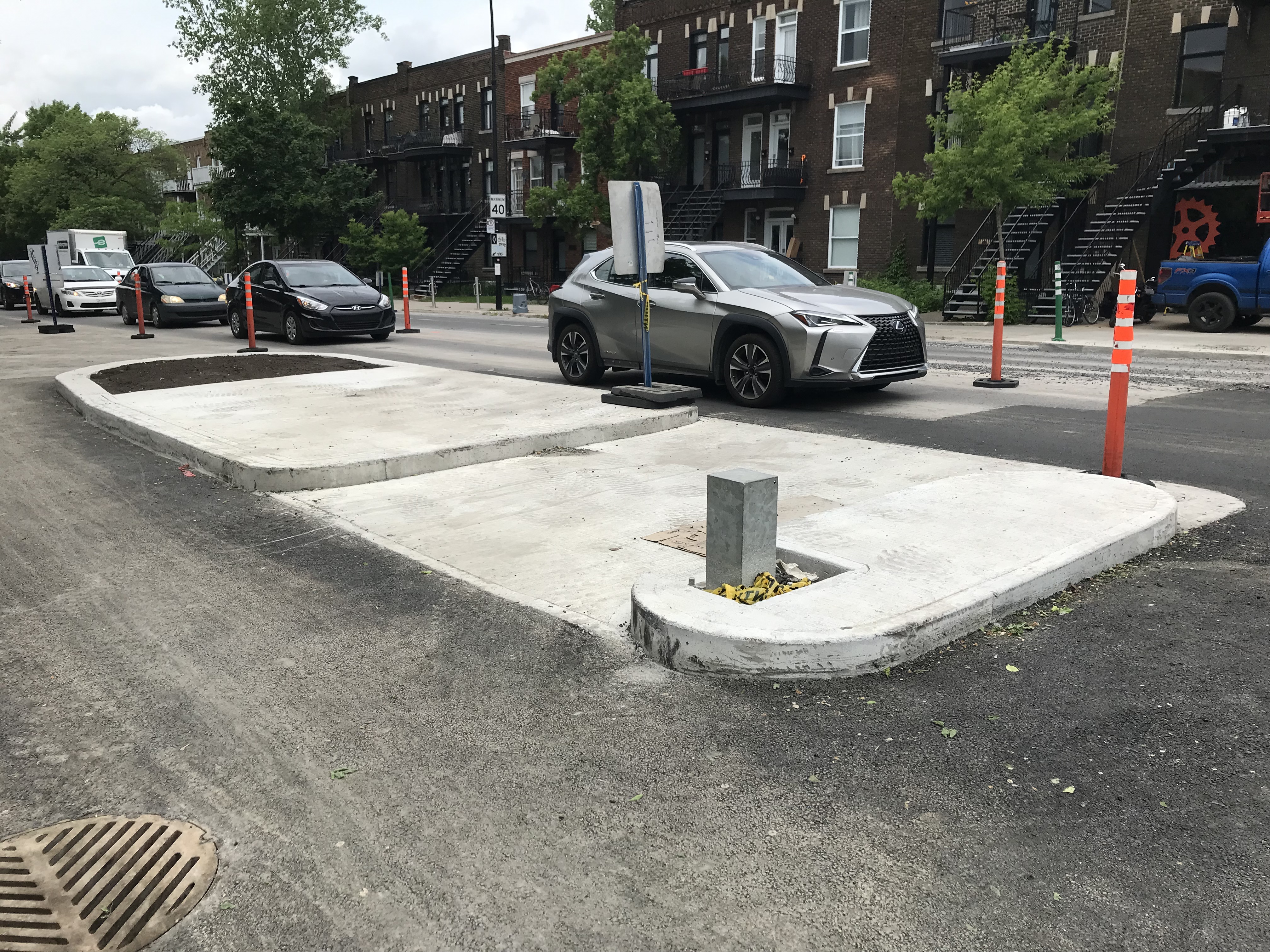 Chaque bordures et îlots semblent gondoler et les formes ne sont jamais réellement rondes et uniformes. Je sais pas si c’est la recette de béton qui cause cela, mais ça donne des résultats qui font cheap
