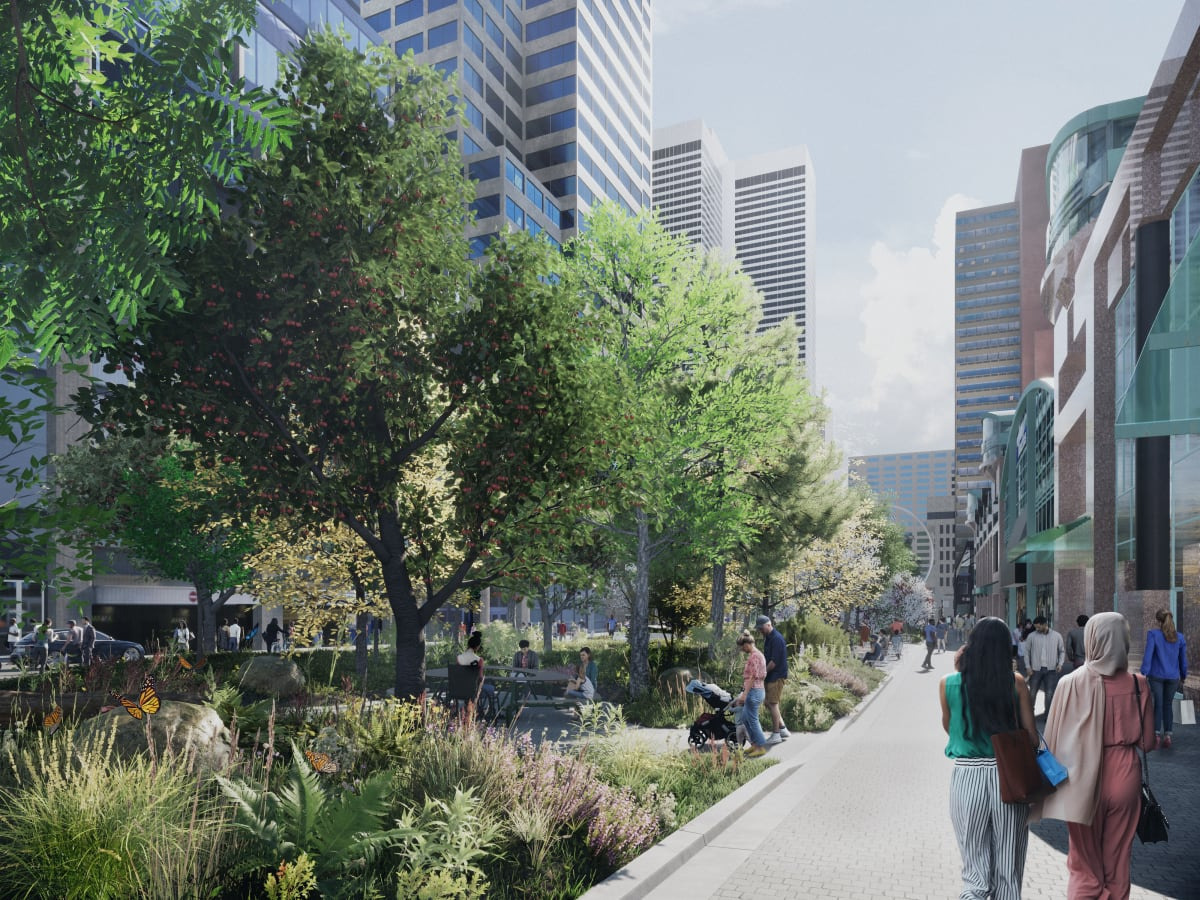 Dans 40 ans, on ne verra plus le Mont-Royal de l’axe, considérant la quantité de canopée qu’on veux y planter. L’objectif original était justement de préserver la vue du Mont-Royal à travers cette artère. Cette vision a-t-elle été écartée?