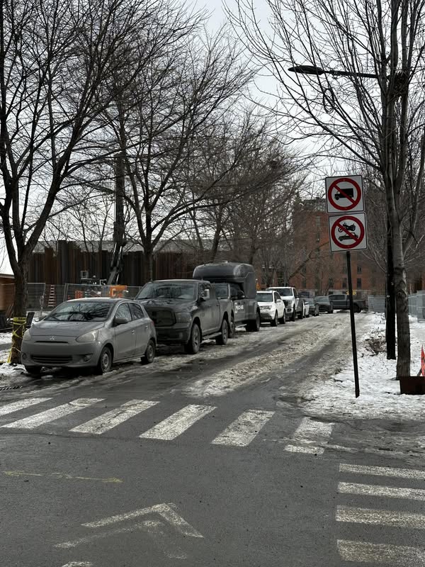 Example: la construction vient juste de commencer et les travailleurs essayent deja de s’accaparer de la piste cyclable.