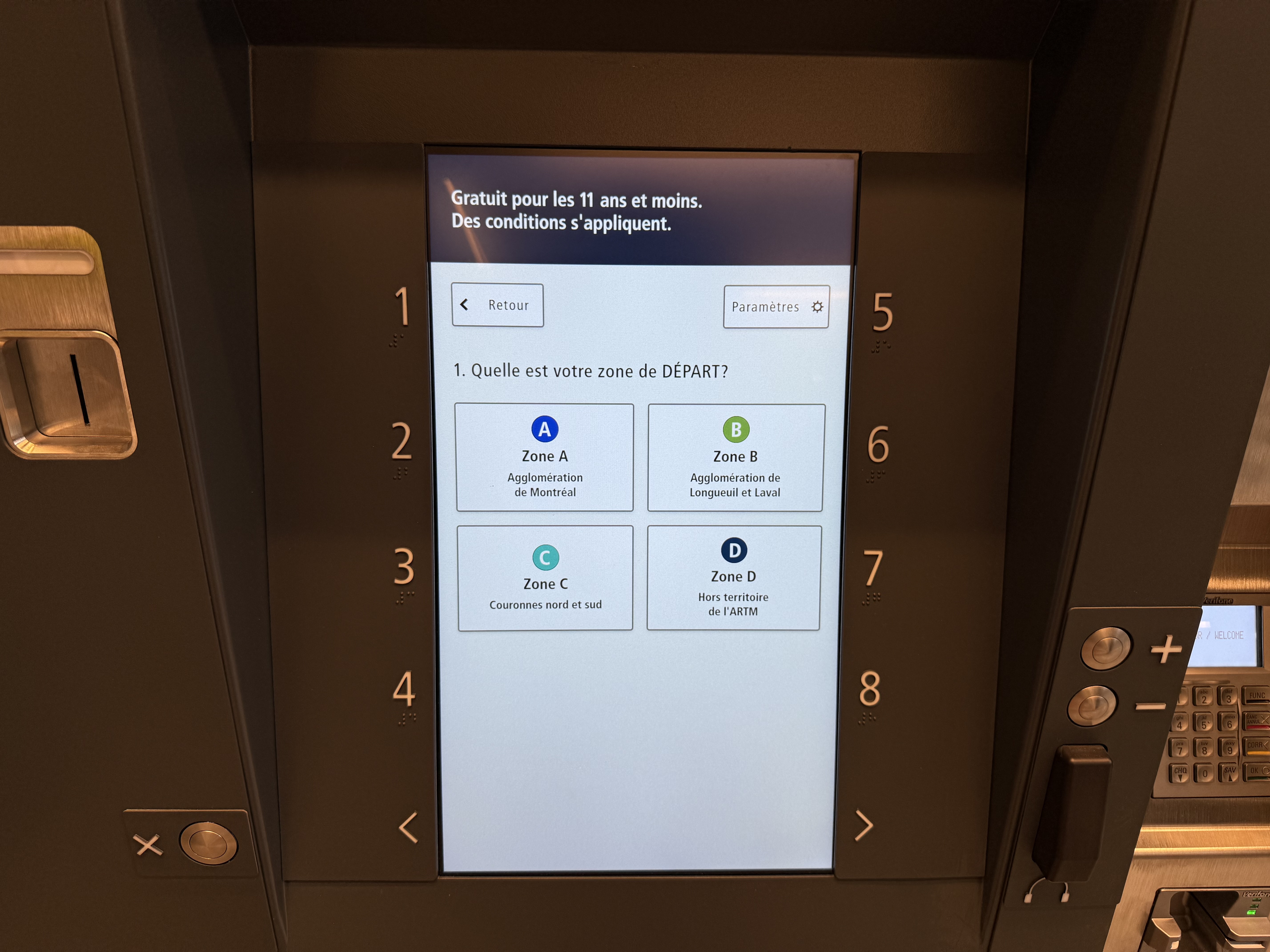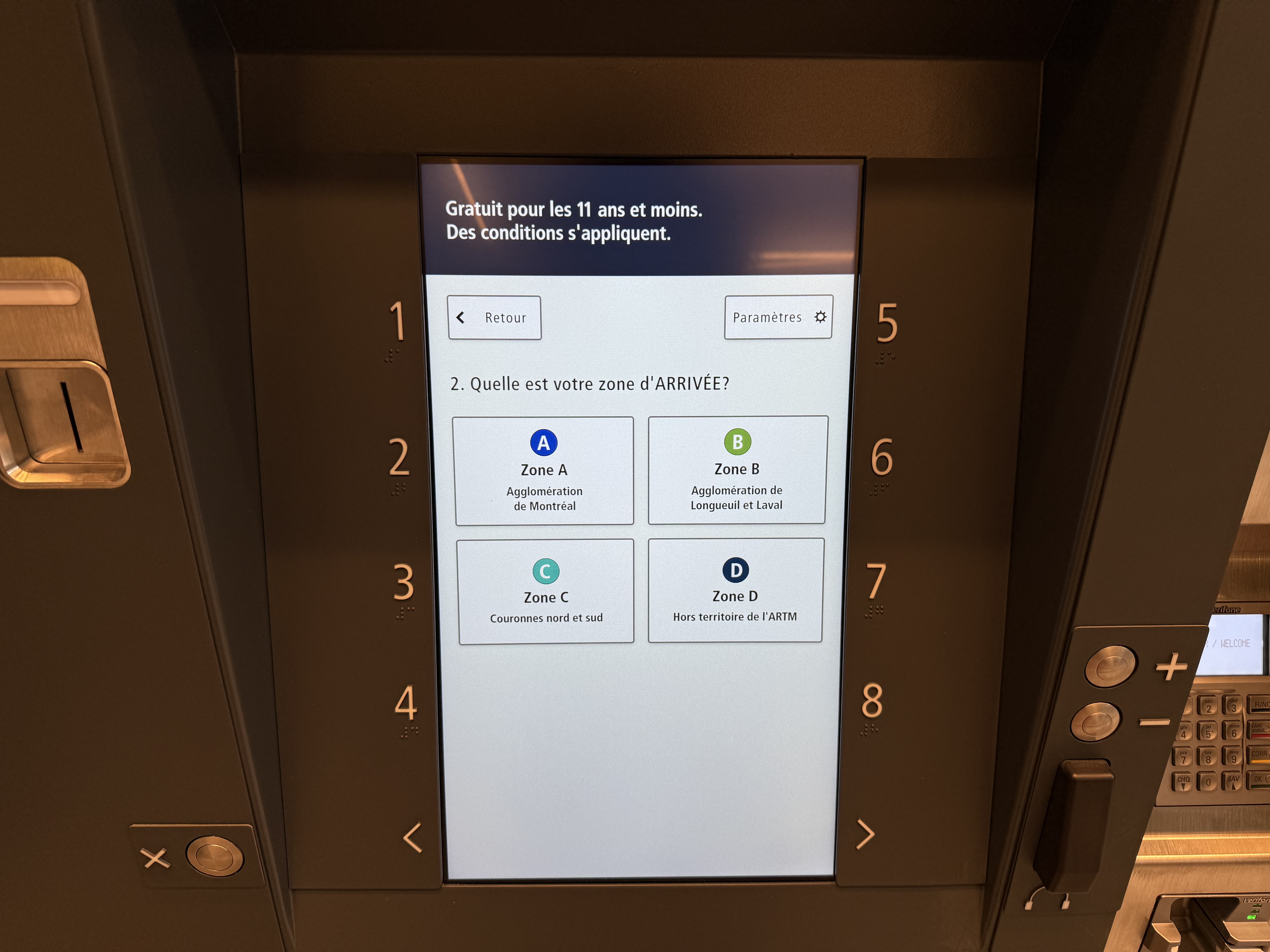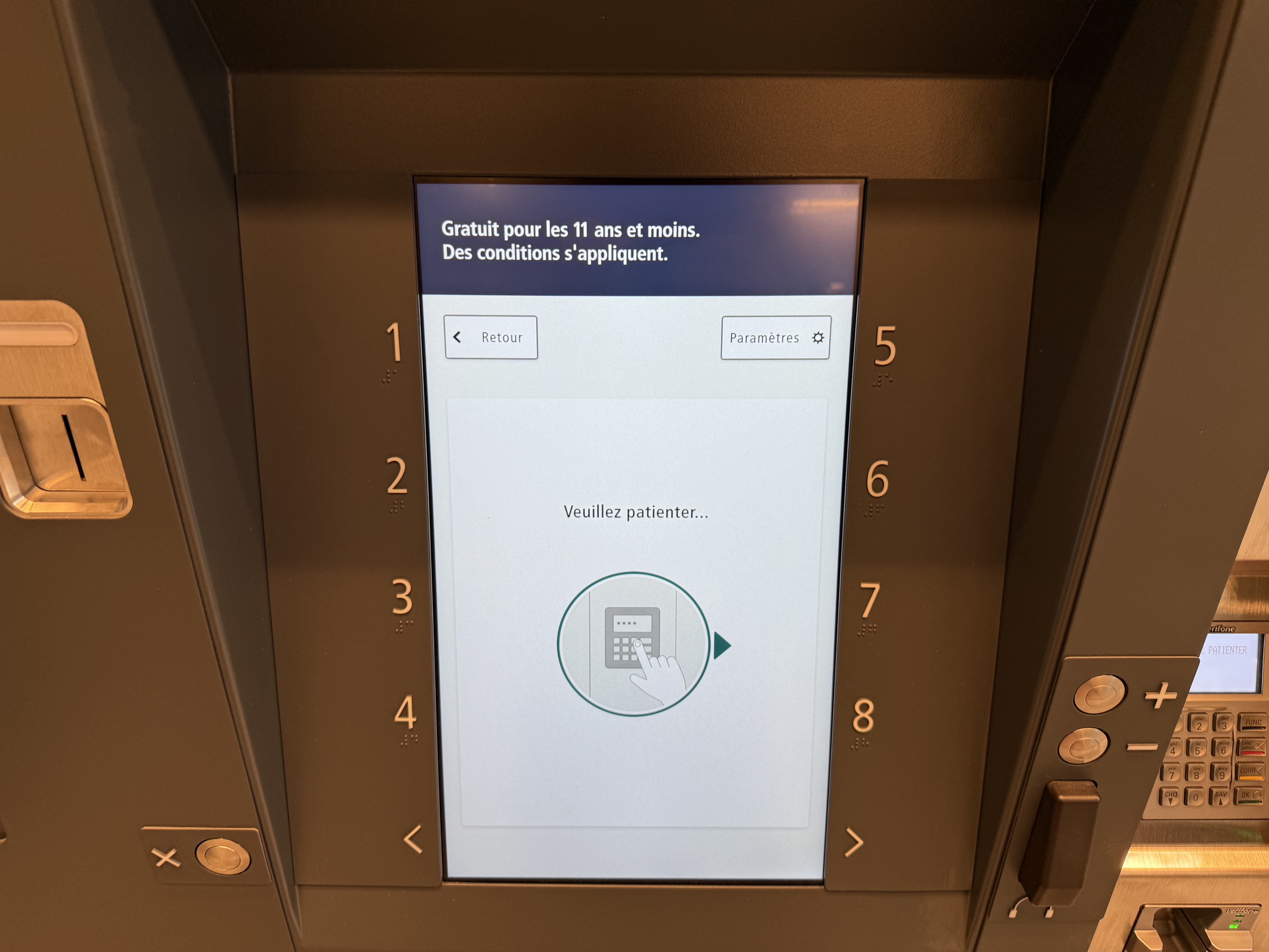 Pour réveiller la DAT, il faut toucher l’écran. (Ou possiblement, déposer la carte OPUS dans le socle, ce qui permet de sauter le premier écran. À vérifier.)