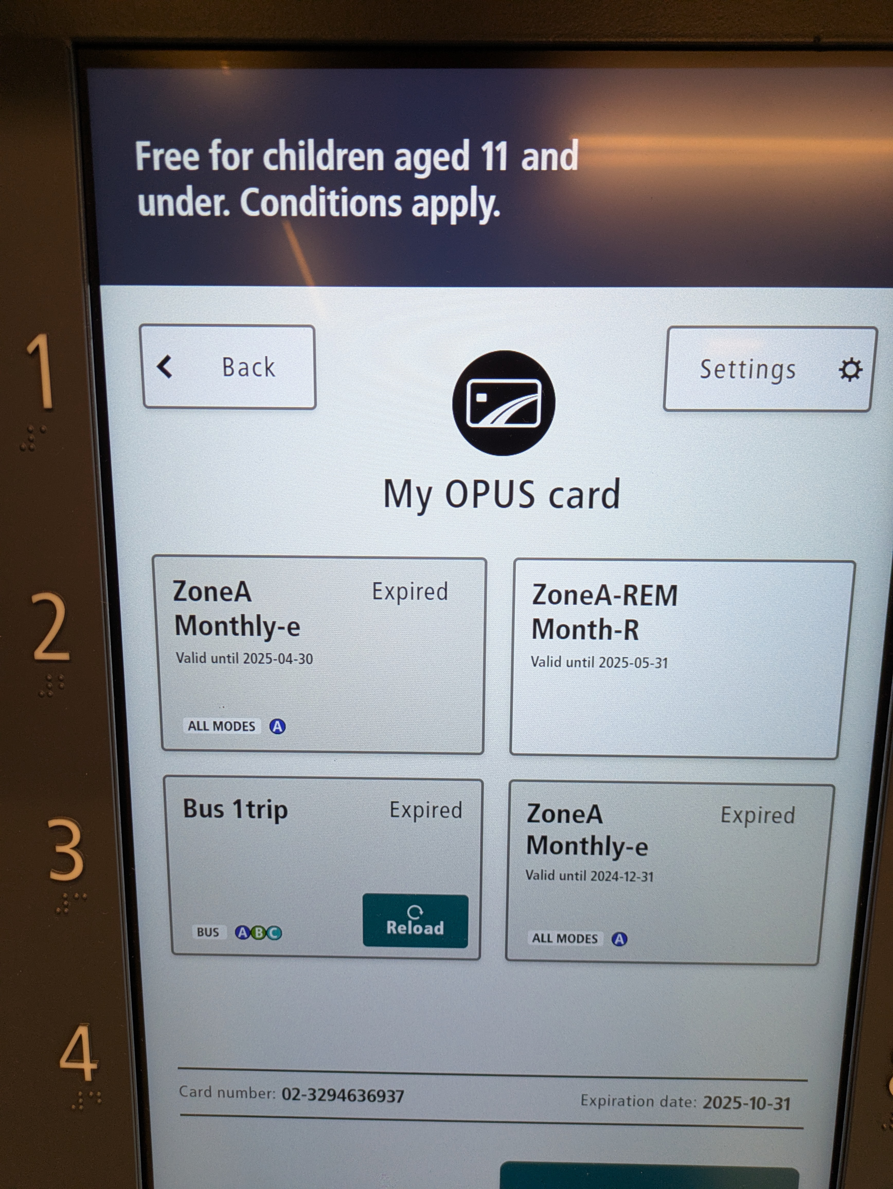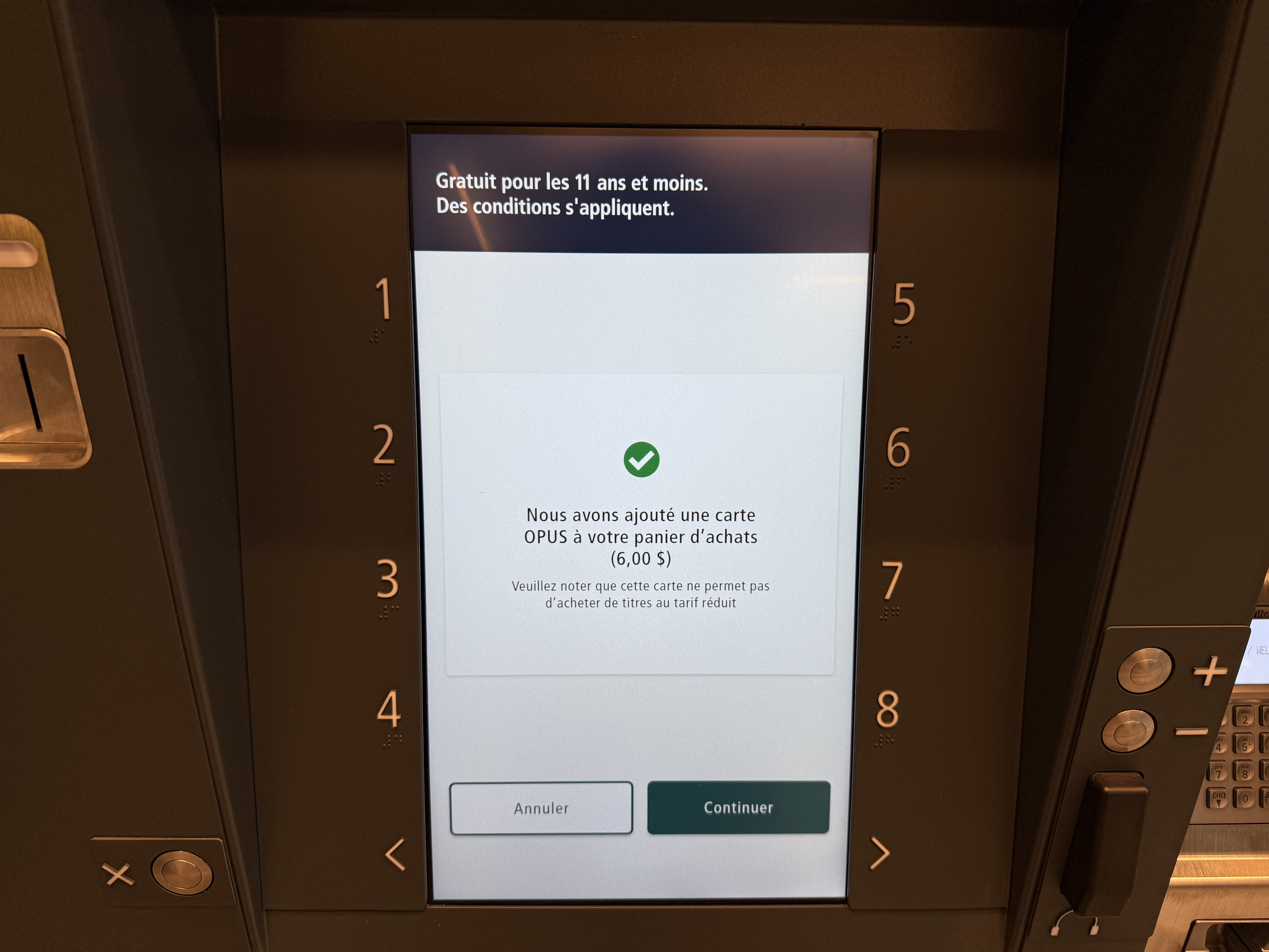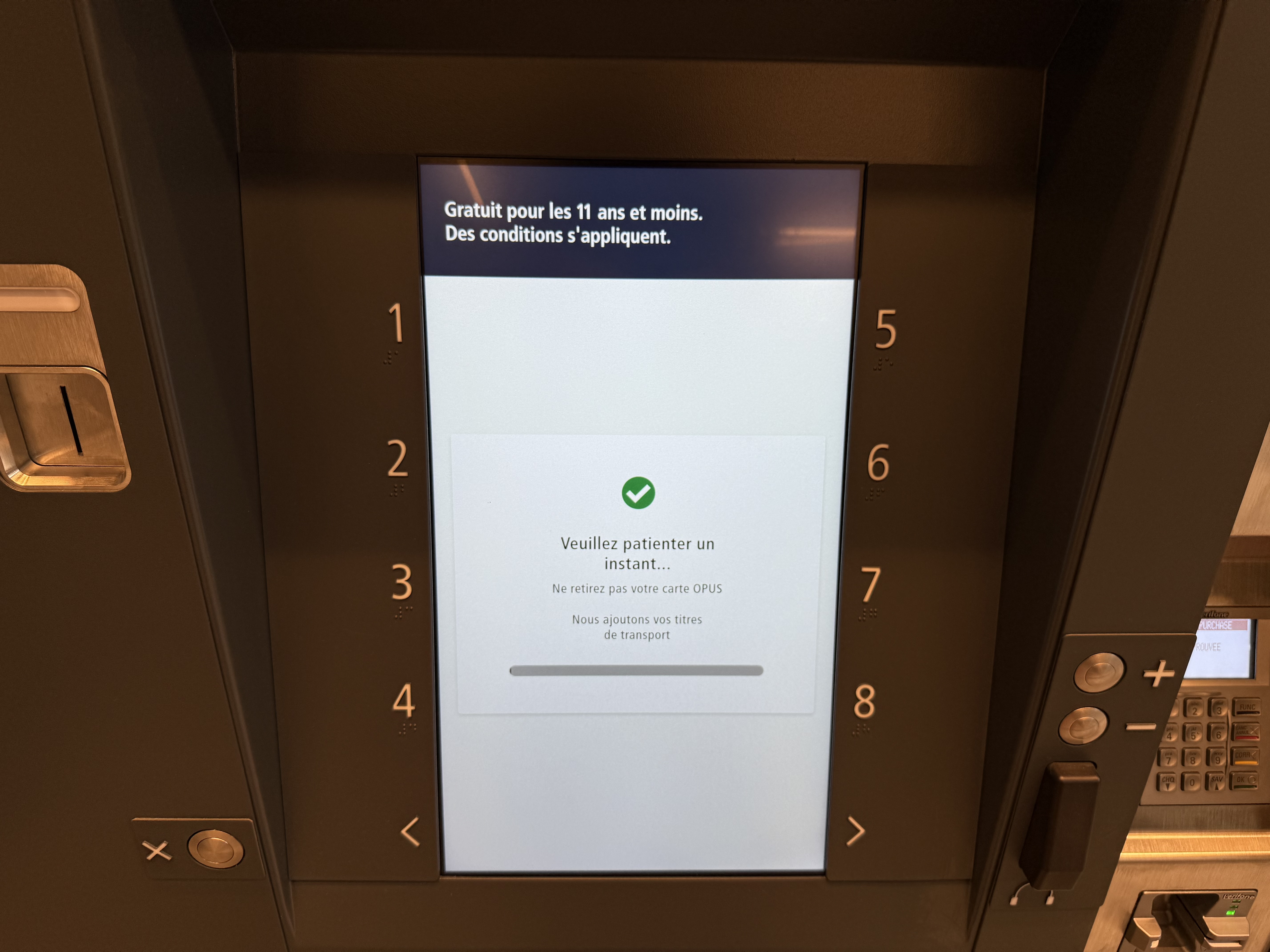 Lors de l’achat d’une nouvelle carte OPUS, cet écran s’affiche.