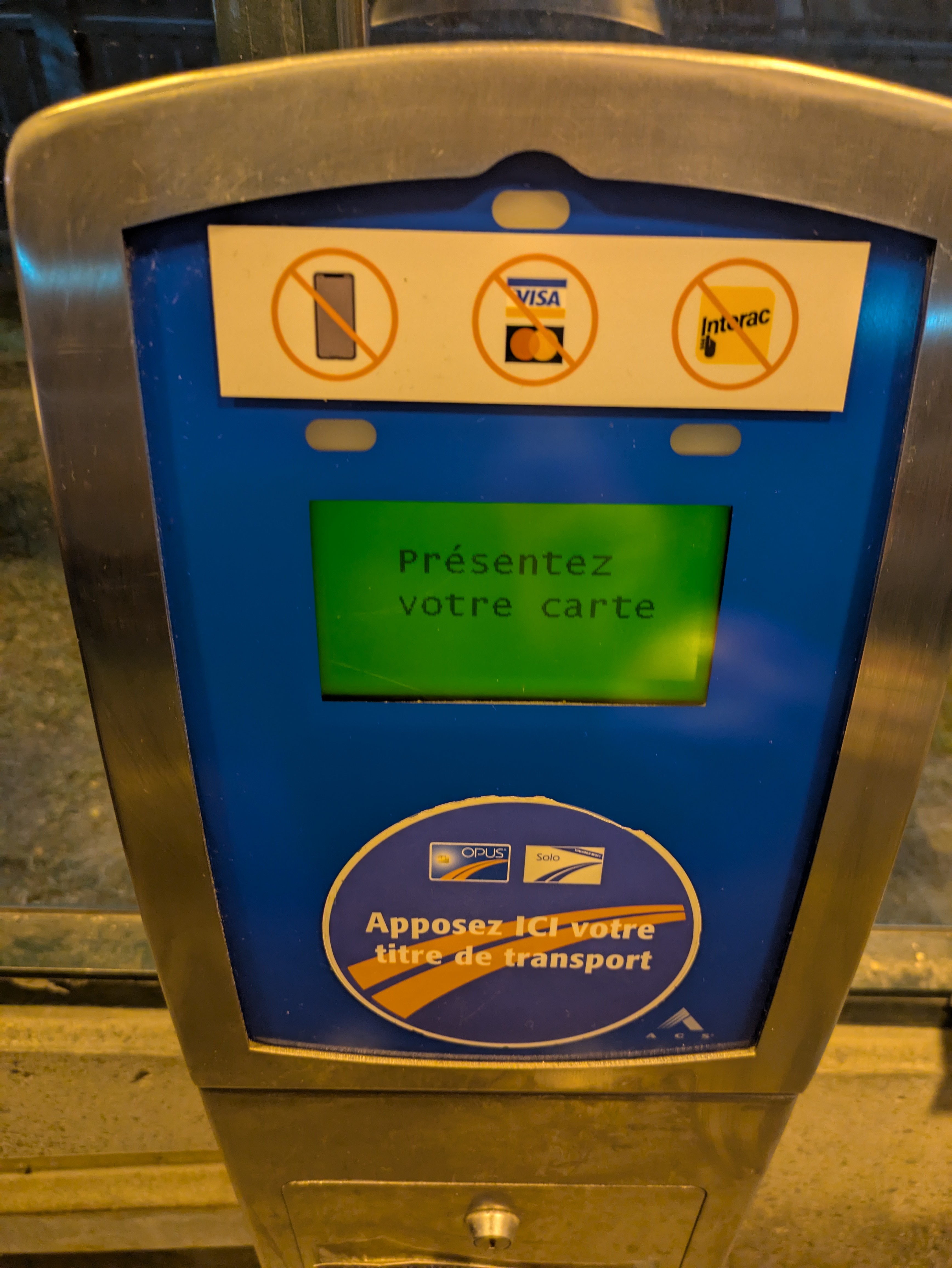 L’accès au transport collectif doit être simple, fluide et instinctif. Avec son système de carte Opus, Montréal accuse un retard de près de dix ans sur plusieurs grandes villes. Il est temps de dématérialiser la carte et de permettre l’utilisation d’un téléphone ou d’une montre intelligente, ou même d’une carte de crédit ou de débit comme titre de transport.
