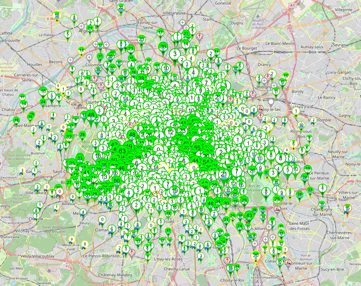 Mais cette constatation est relativisée par la distribution des stations : à Montréal, il y a beaucoup de trous dans la densité du réseau, alors qu’à Paris, le réseau s’inscrit dans un cercle assez homogène.