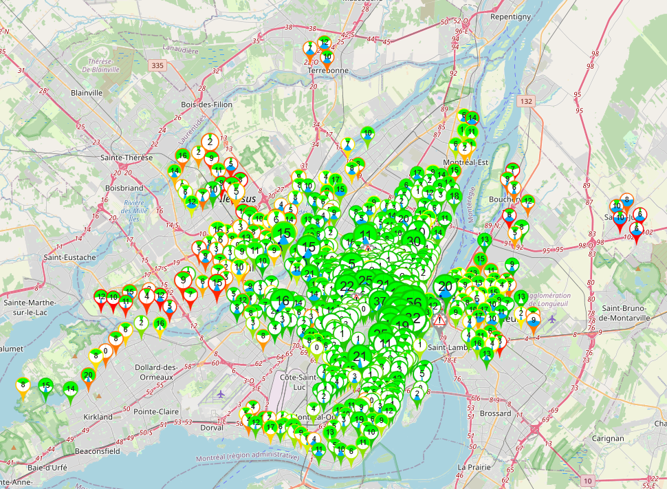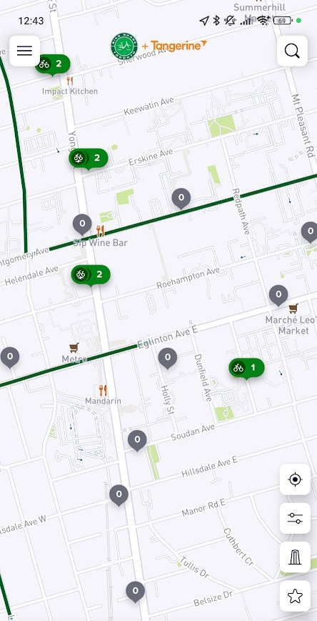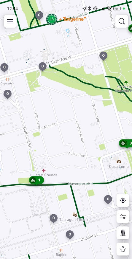 Ayant habité dans les deux villes depuis 2021, je peux confirmer que la répartition des vélos est bien pire à Toronto qu’à Montréal. Les deux villes sont assez similaires, les deux avec leurs centre-villes en bas d’une colline, mais Montréal ne connaît pas les mêmes problèmes que Toronto. Voici deux captures d’écran de la situation à Toronto que je viens de prendre: