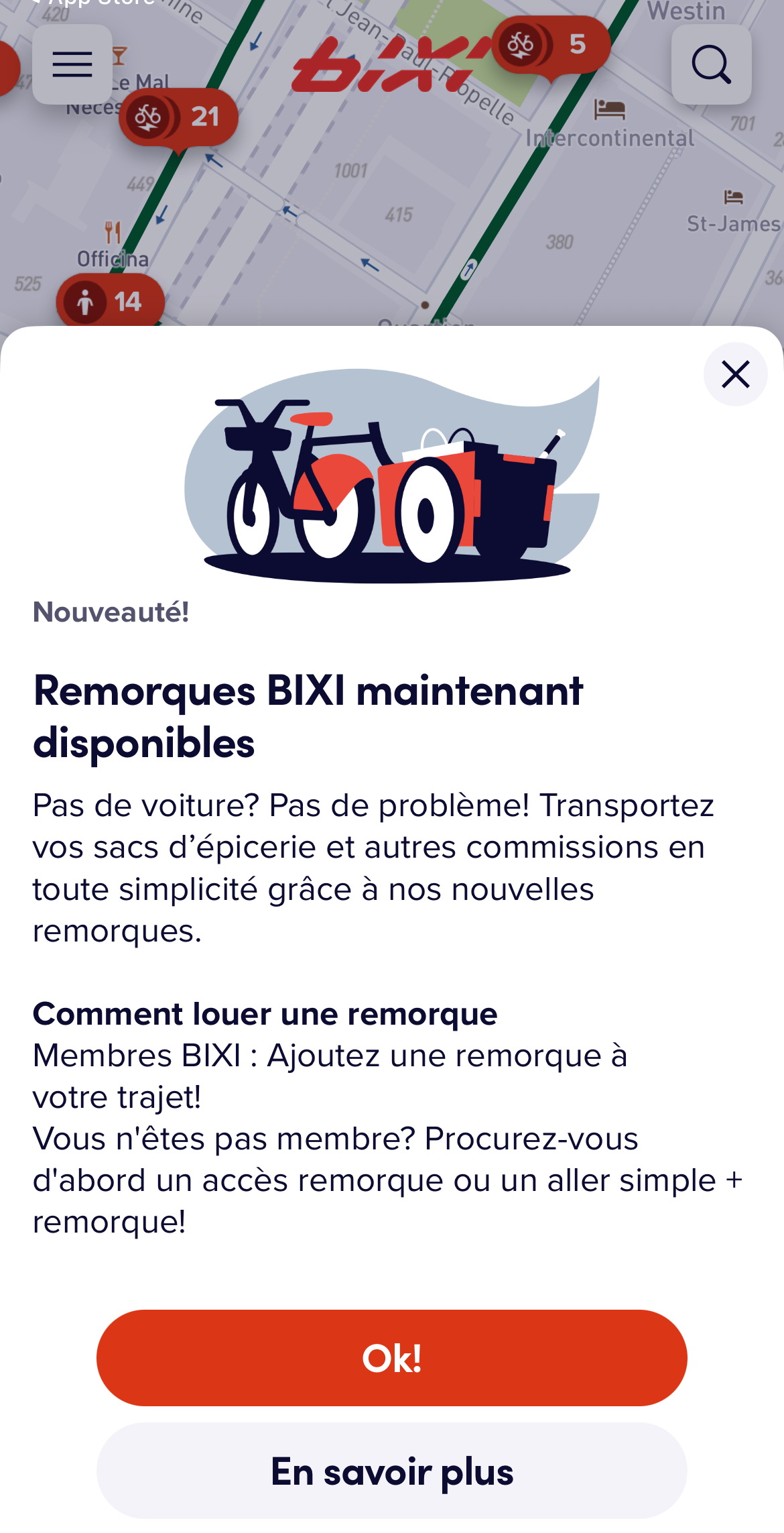 Pour cette première année, 50 remorques seront rendues disponibles dans plusieurs stations BIXI de la ville de Montréal. Repérez-les dès maintenant grâce au filtre «Remorque» de la carte des stations dans l’application BIXI!