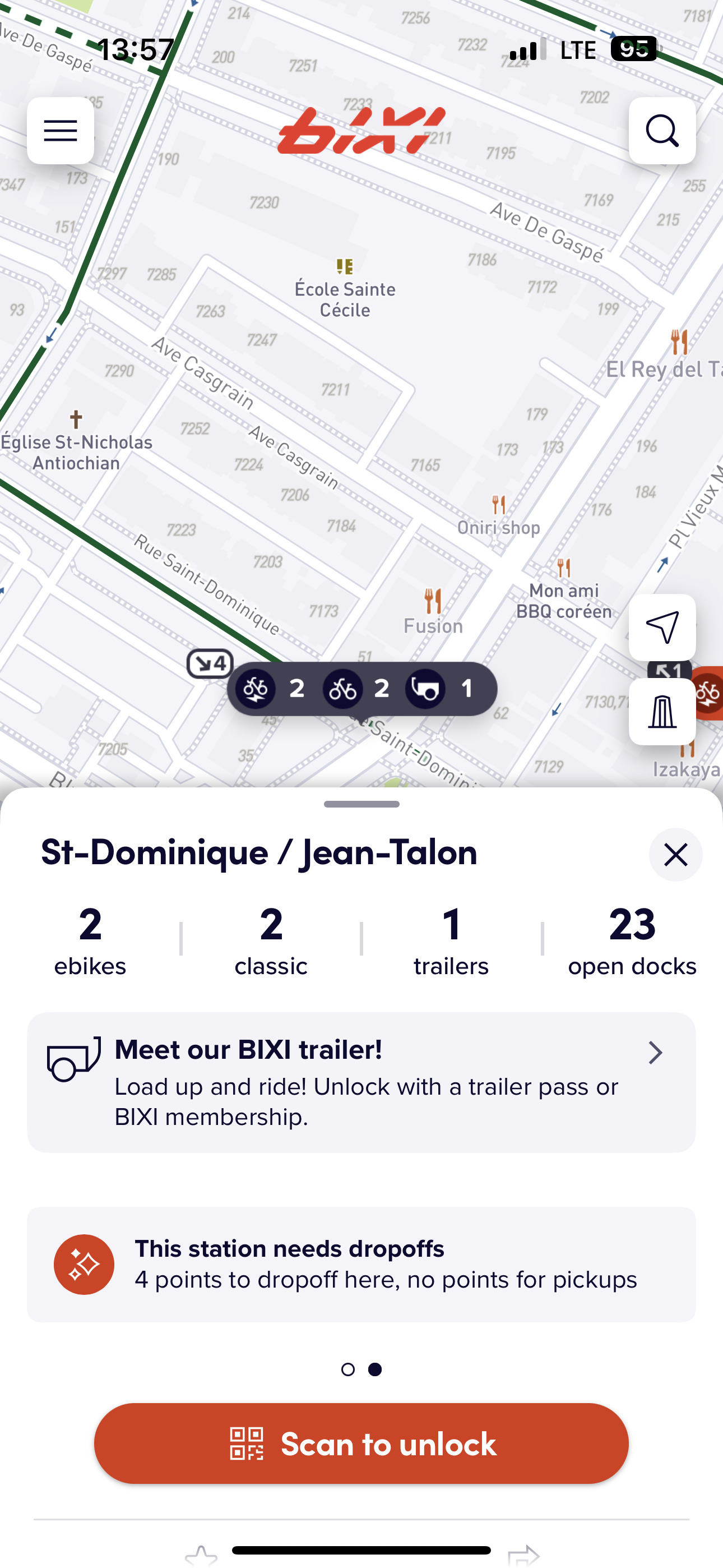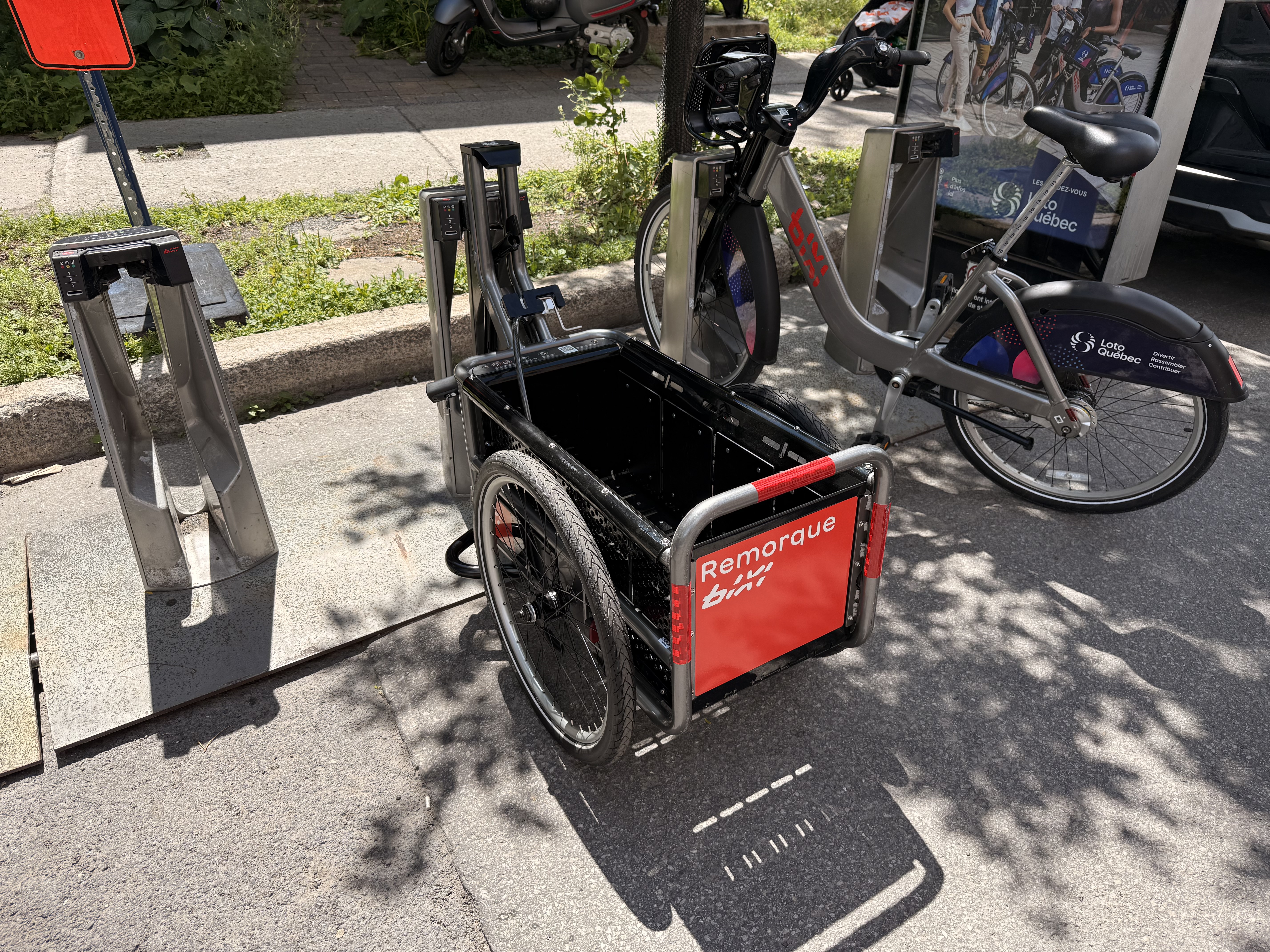 Je ne sait pas à quel point le standard GBFS limite la possibilité de différencier entre les vélos et les remorques, mais ils sont actuellement affichés comme des vélos classiques dans les applications autres que celui de BIXI.