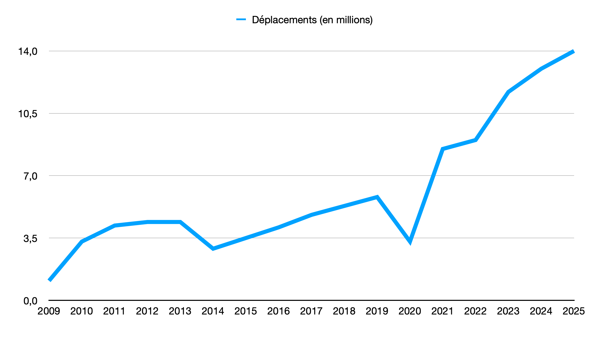 - Le chiffre 2025 (14 millions) est mon estimation. On était à 11 652 522 fin septembre (dernières données publiques).