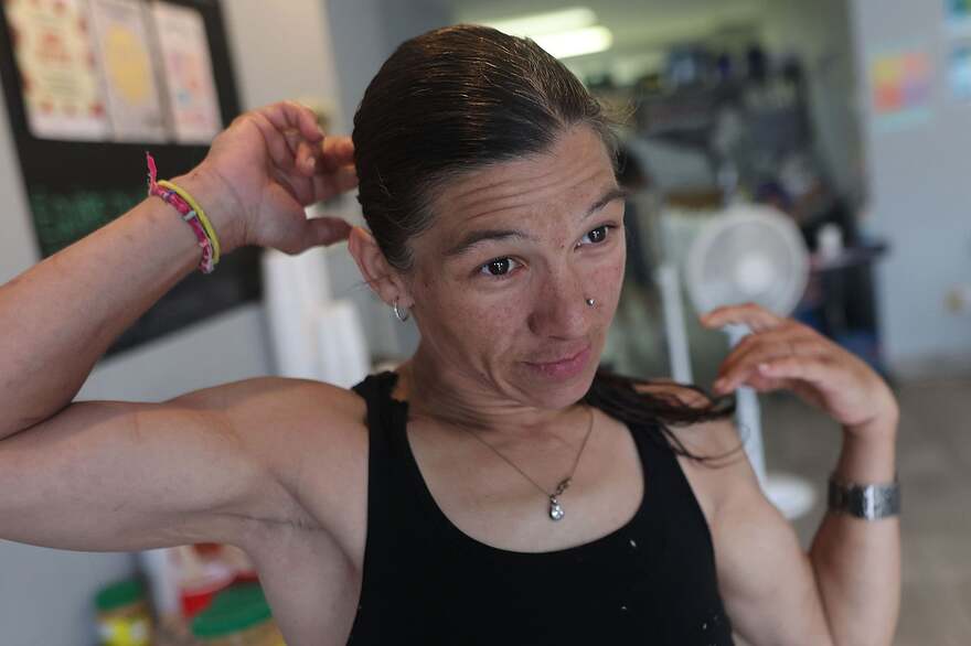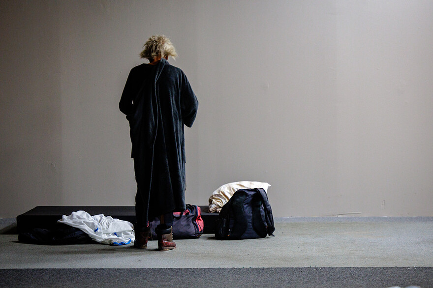 Une usagère de l’ancien club vidéo transformé en refuge d’urgence pour sans-abri.