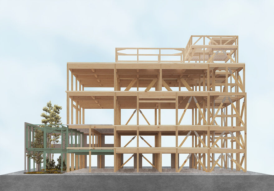 La structure en bois modélisée. Photo : Courtoisie CAB