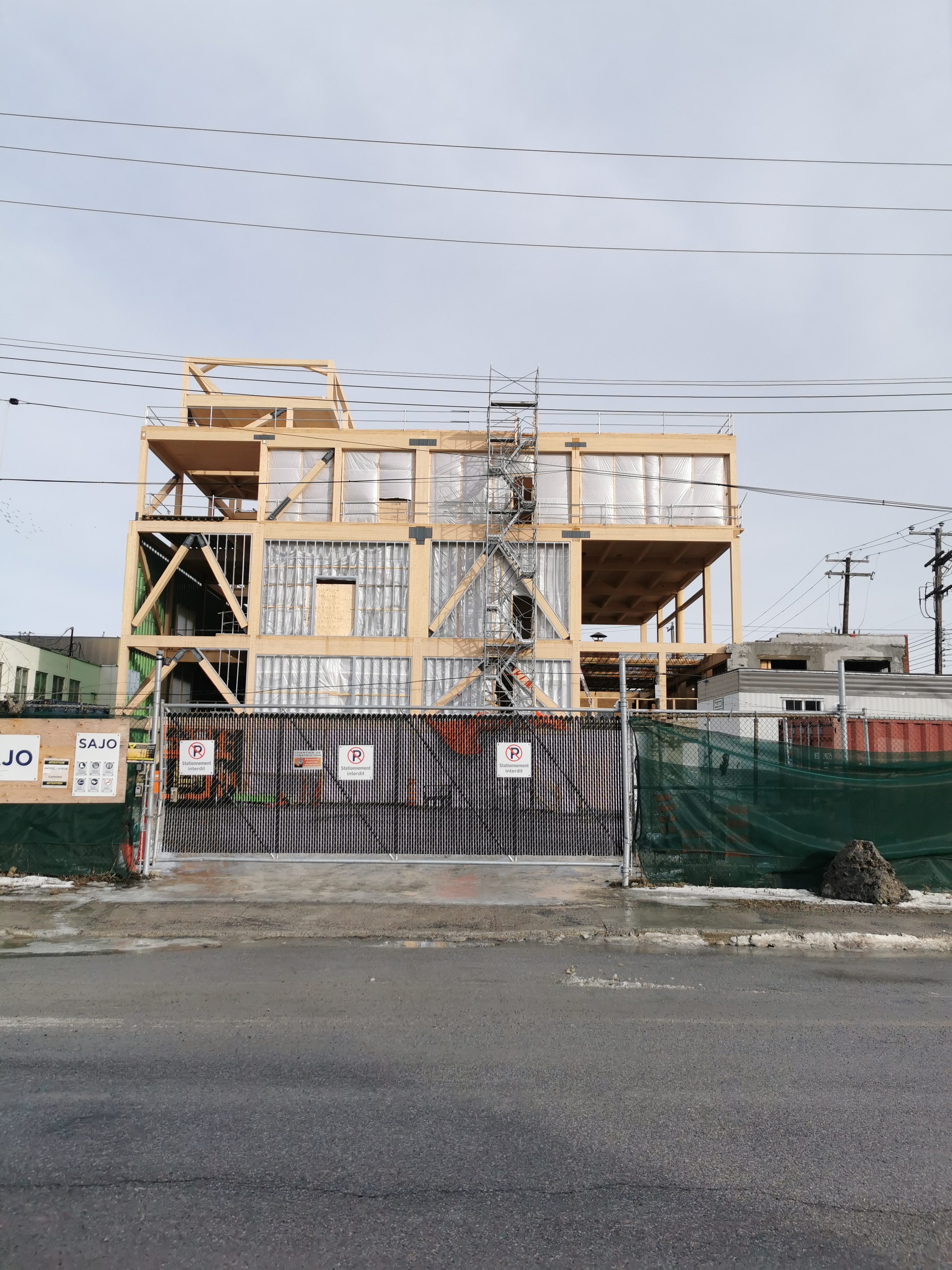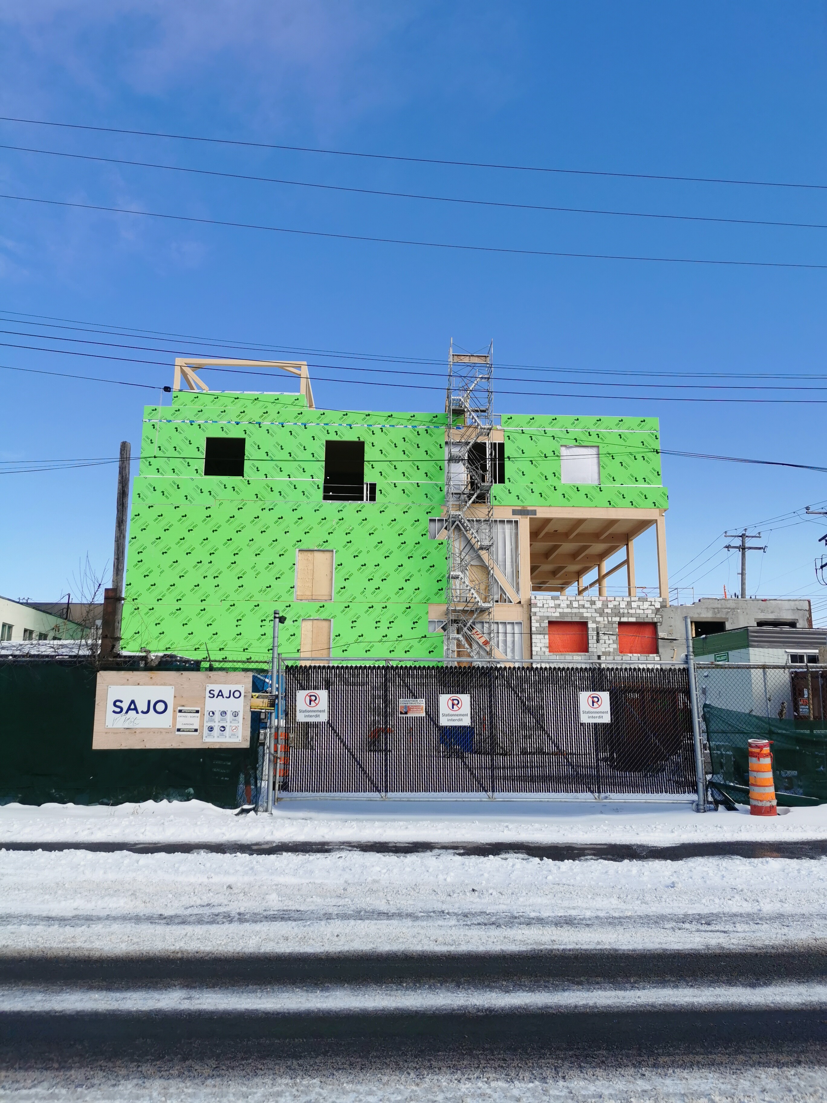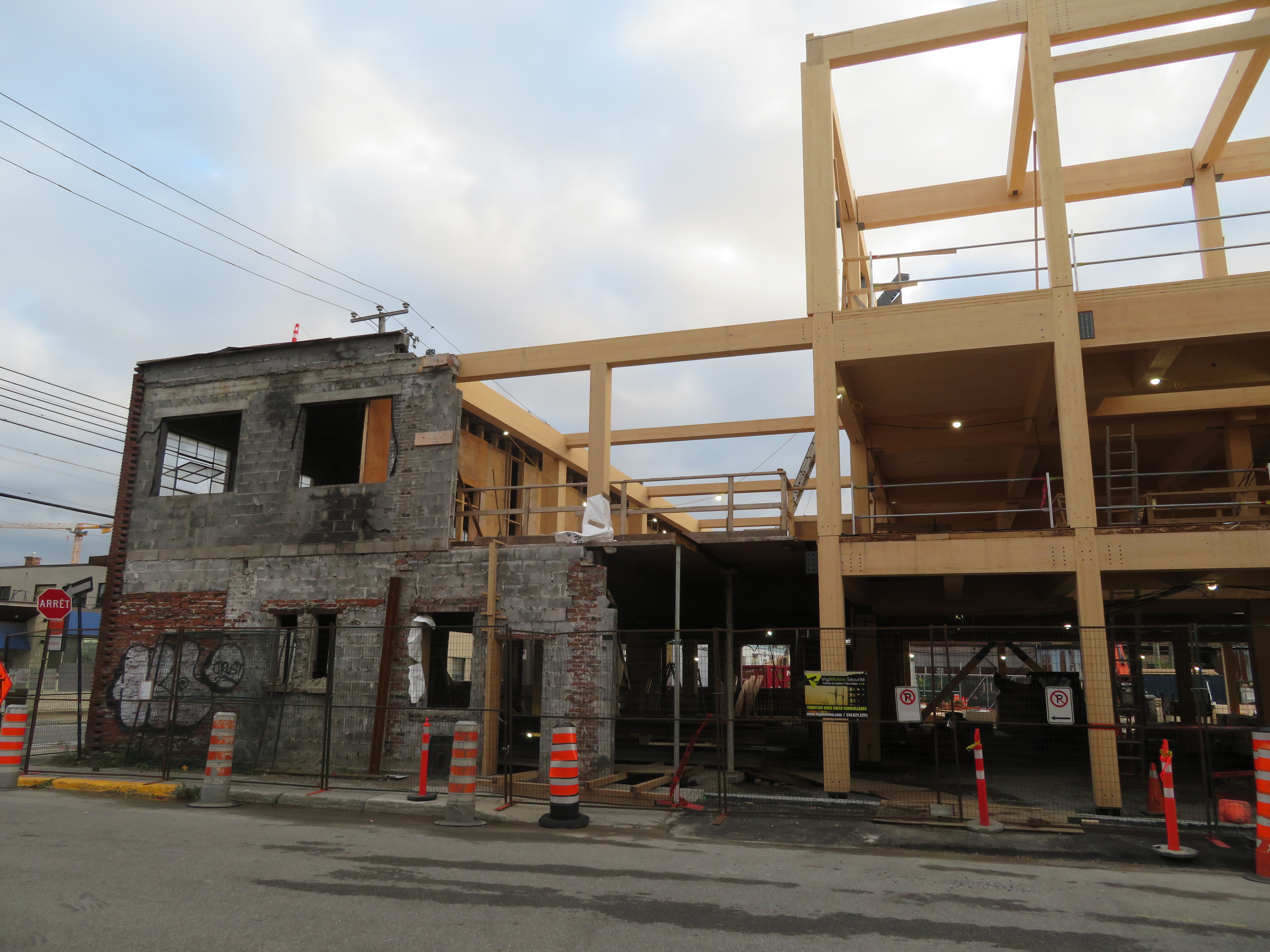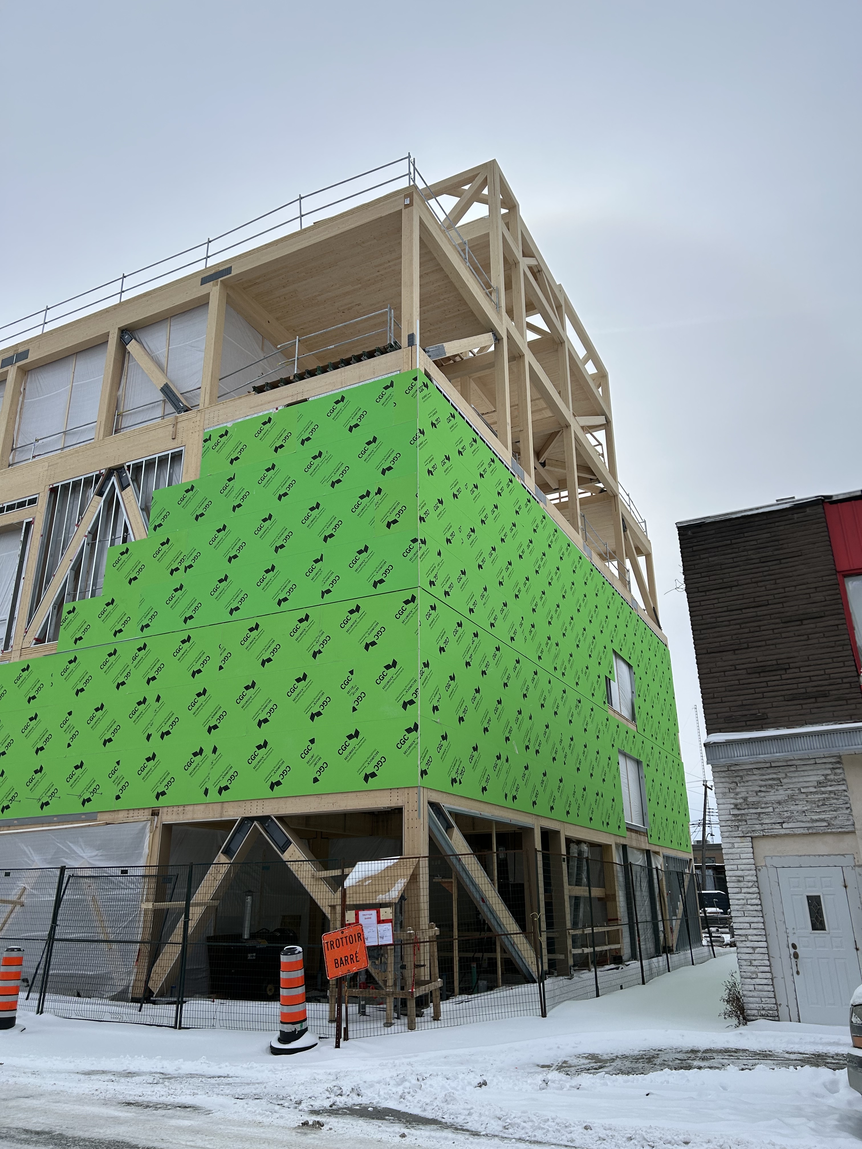 C’est la première fois que je vois une structure de ce type à Montréal. Le contreventement en diagonale avec les plaques d’attache est assez impressionnant.