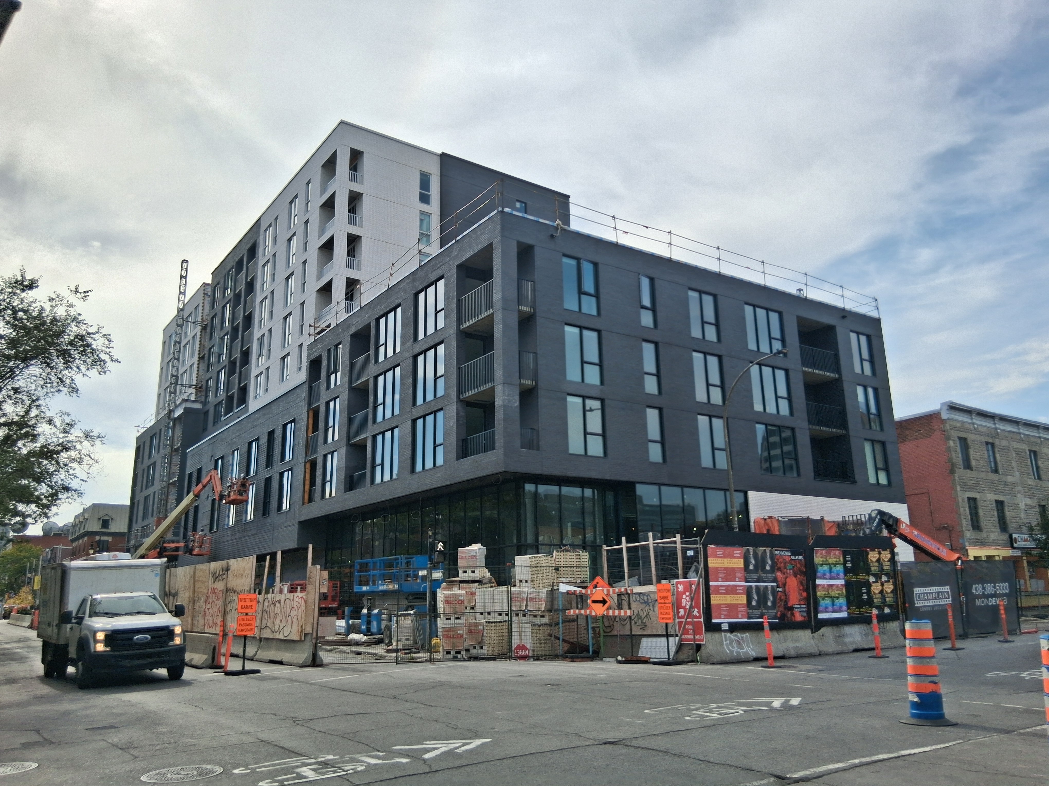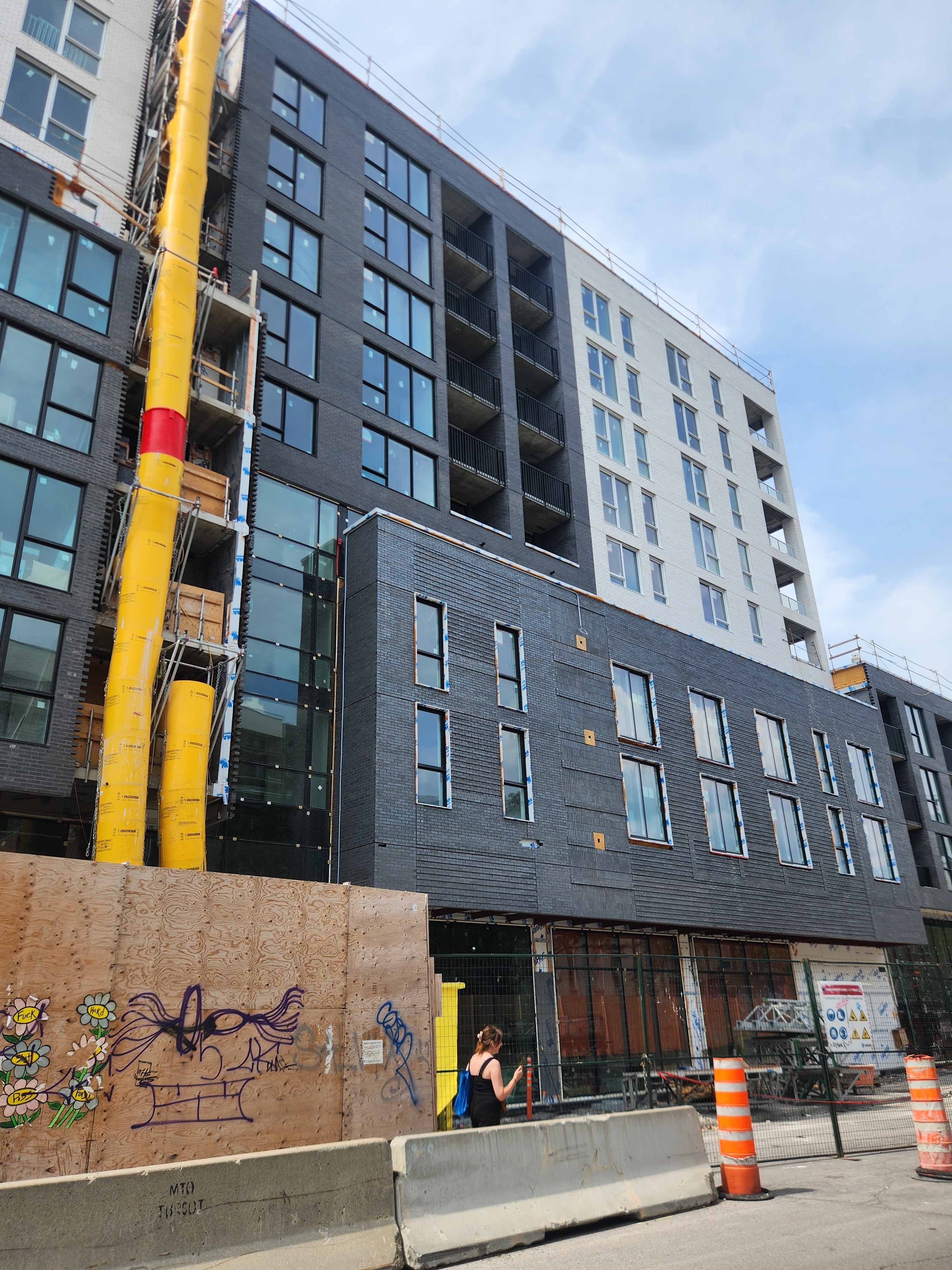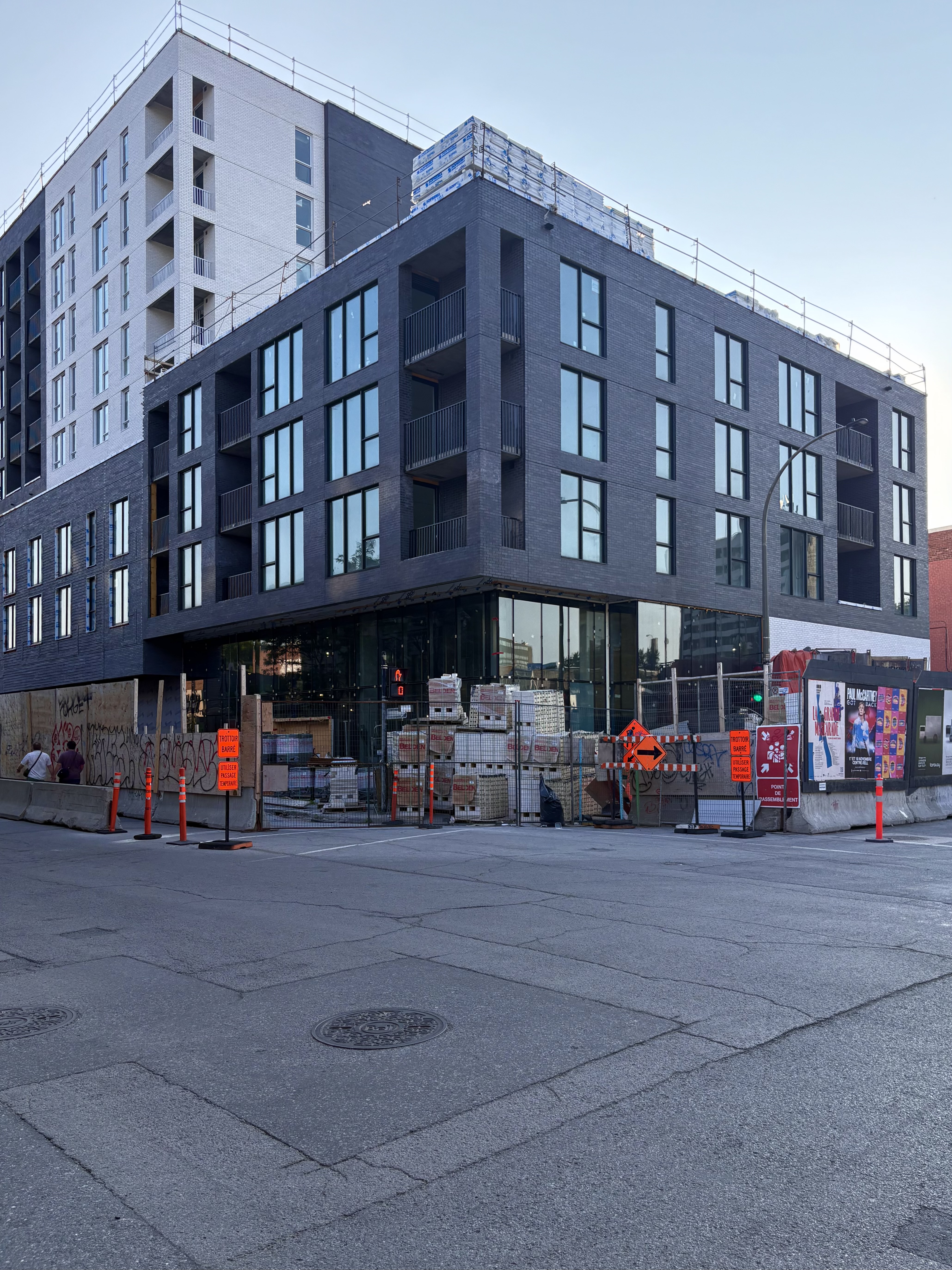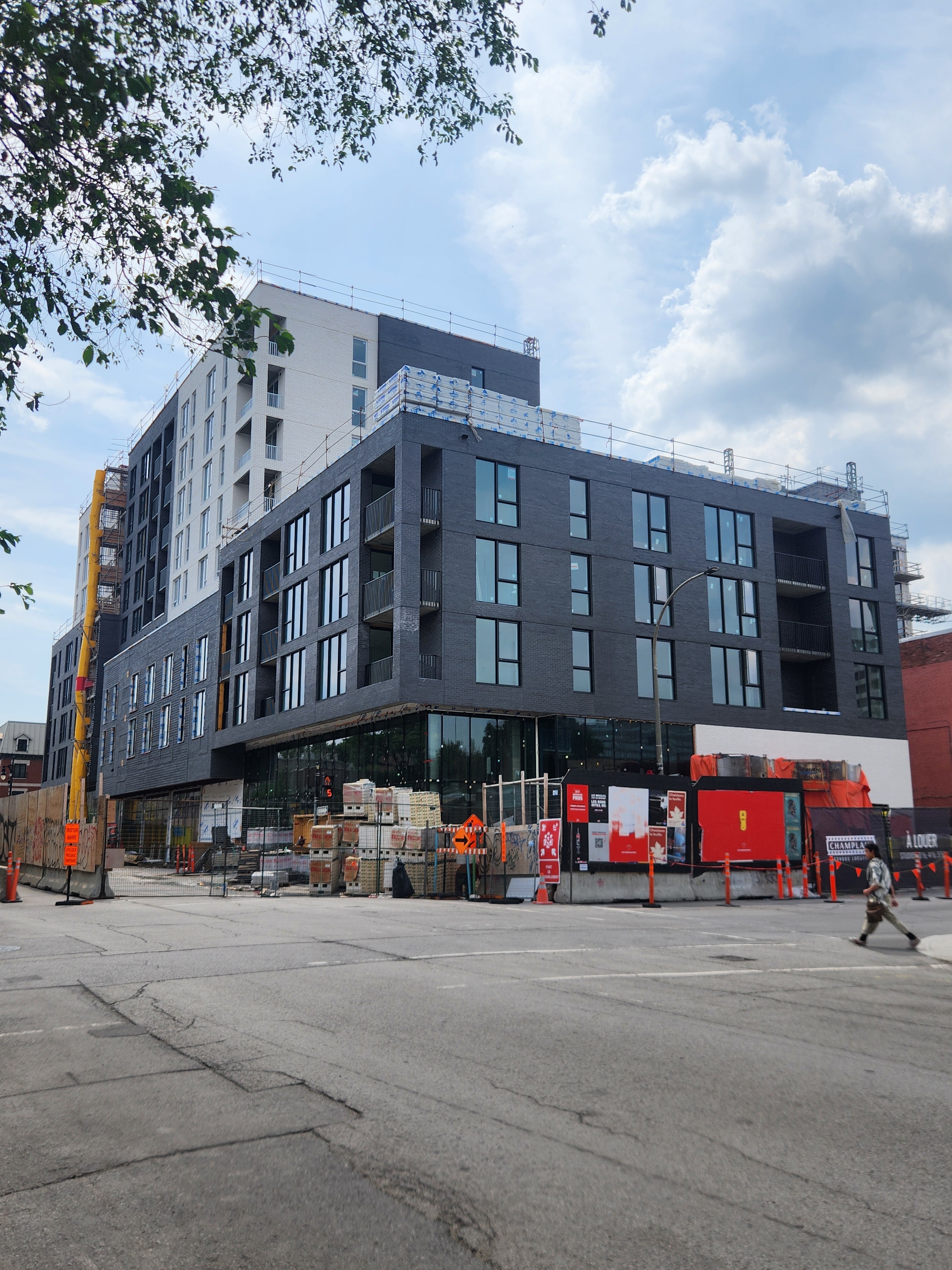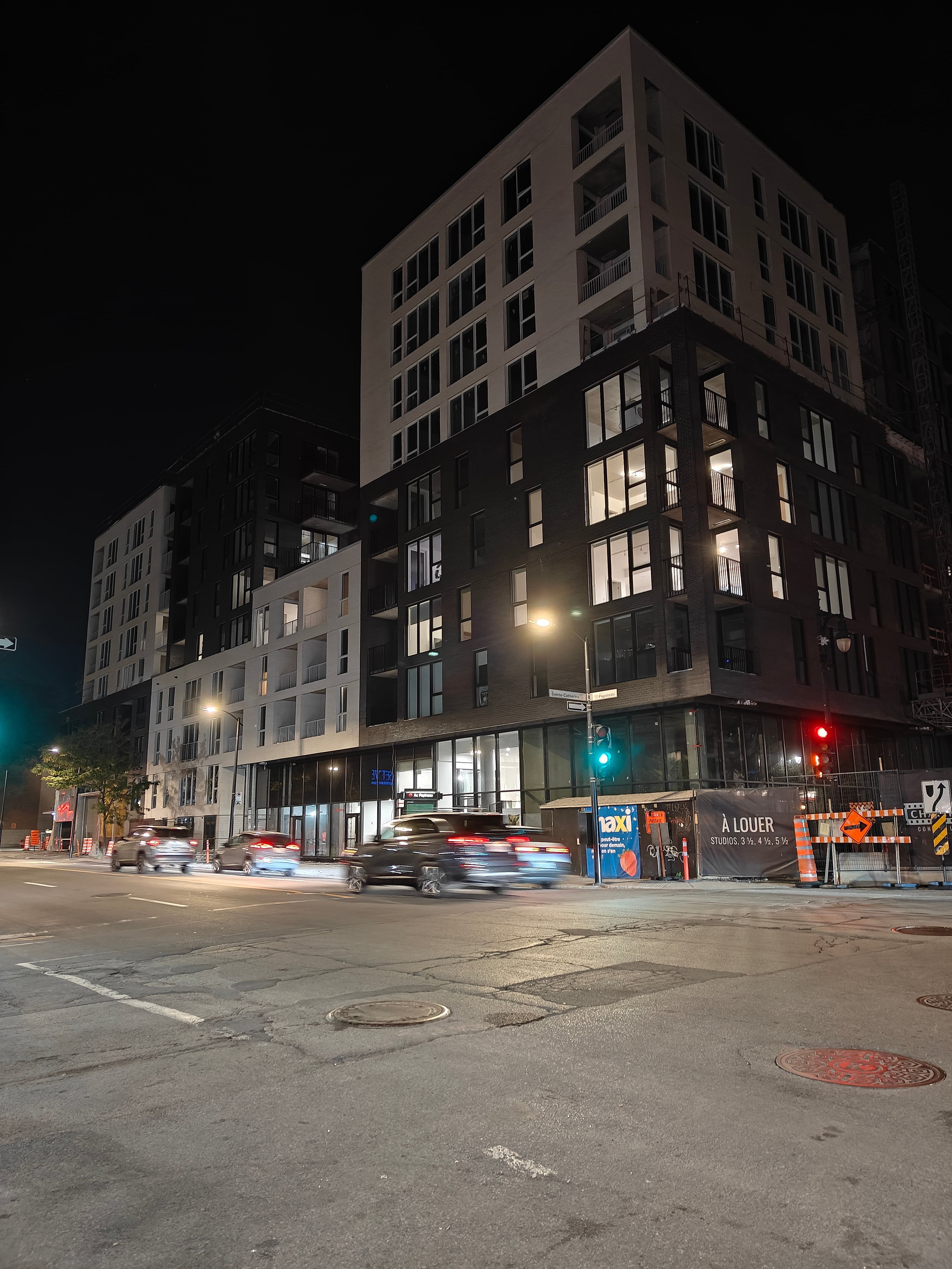 S’insère très bien dans son environnement. J’apprécie particulièrement les différents décrochés qui ajoutent du mouvement, ainsi que le recul au niveau des 2 premiers étages au coin de l’avenue Papineau et Sainte-Catherine, qui permet un trottoir plus large. Le logo du projet rappelle également l’ancien cinéma sur le site avec sa pellicule, joli clin d’oeil.