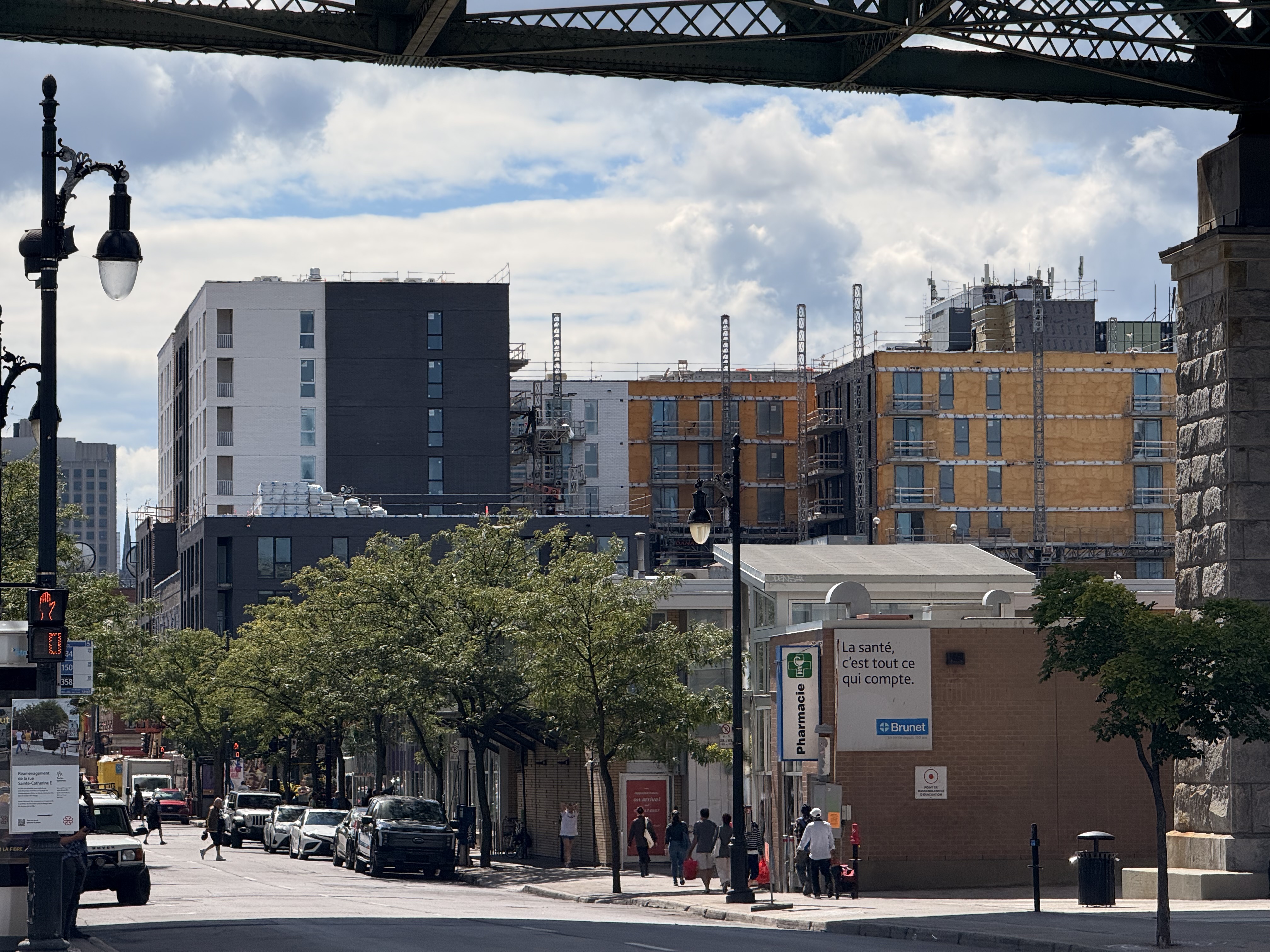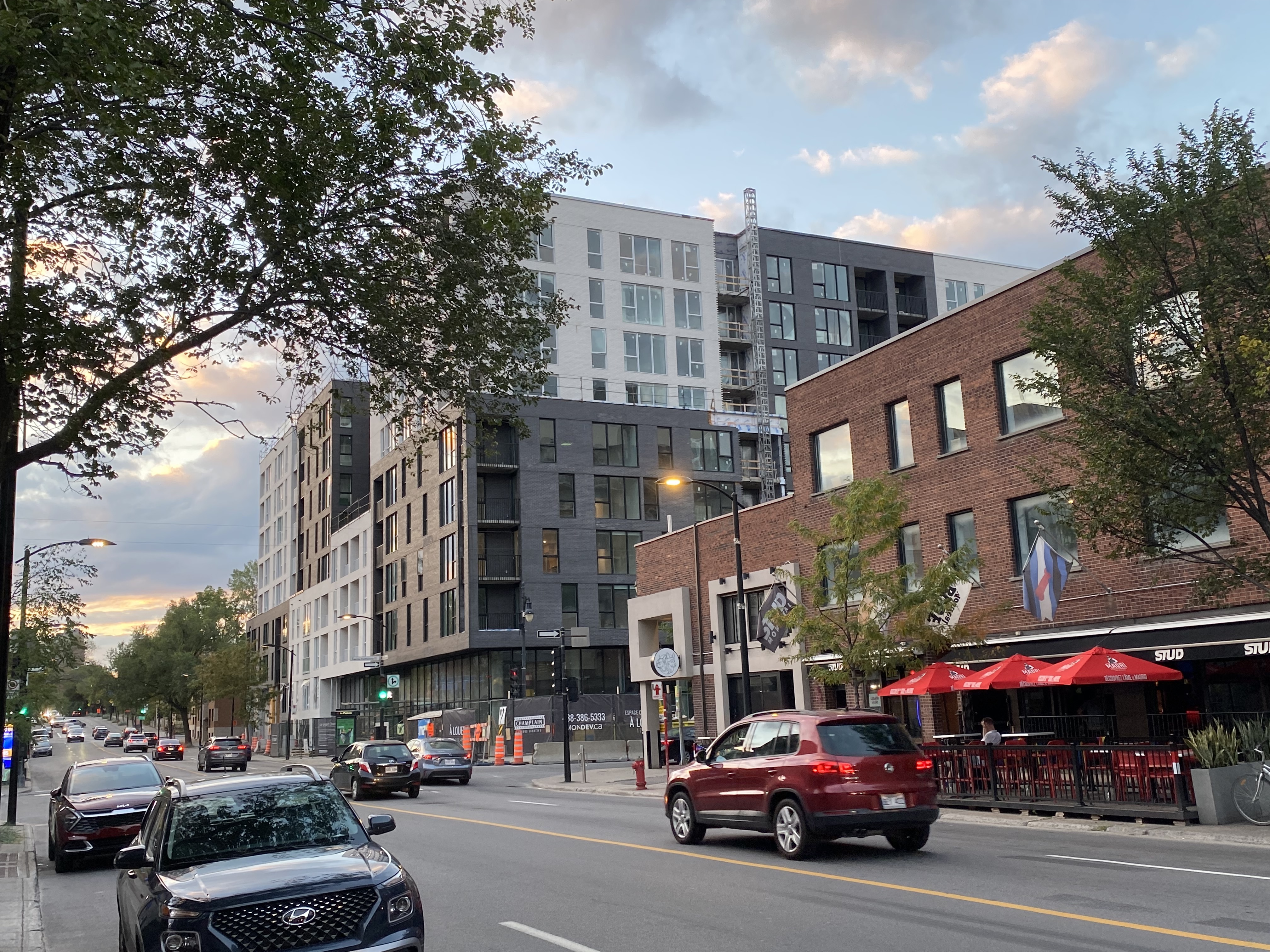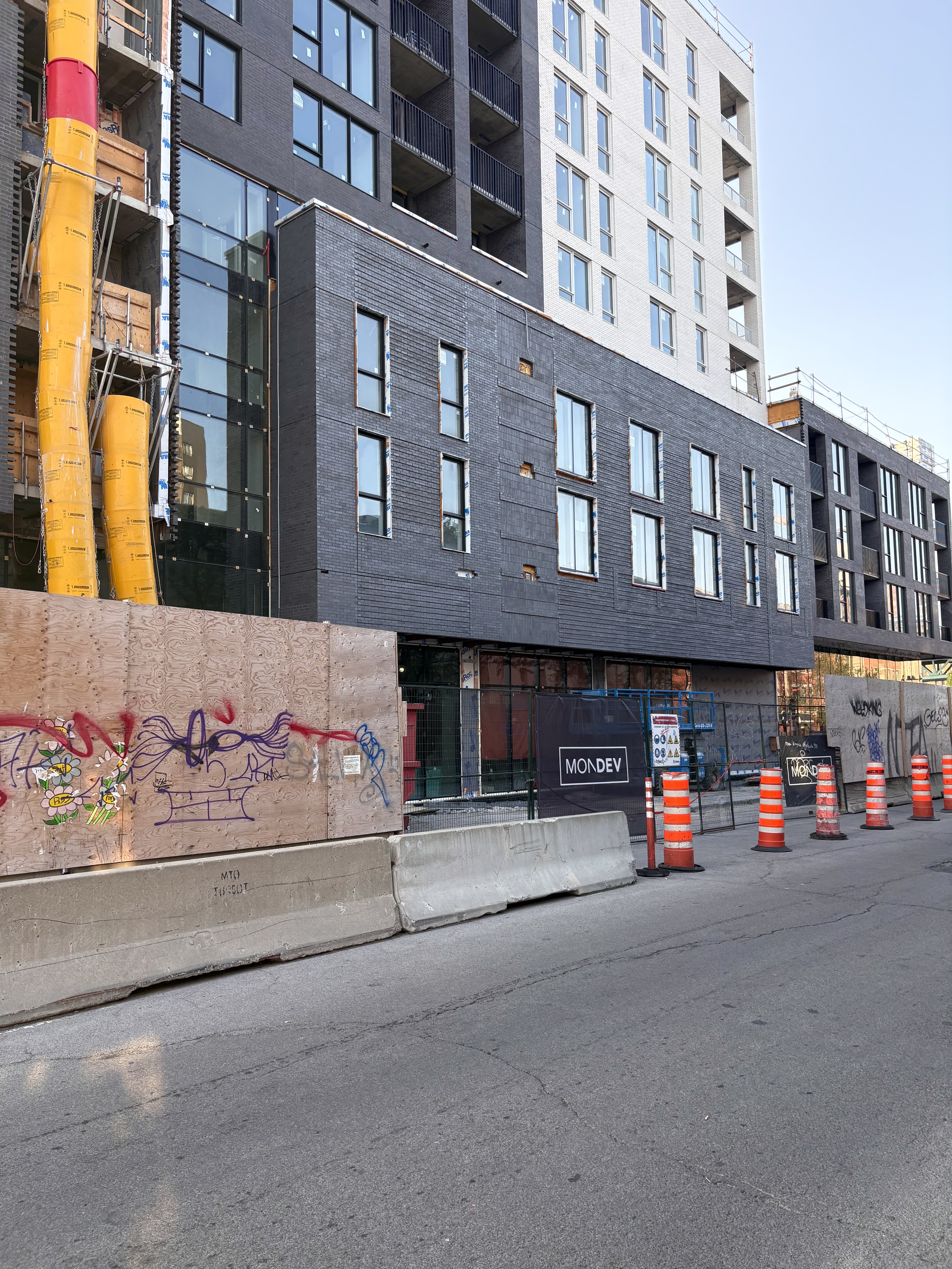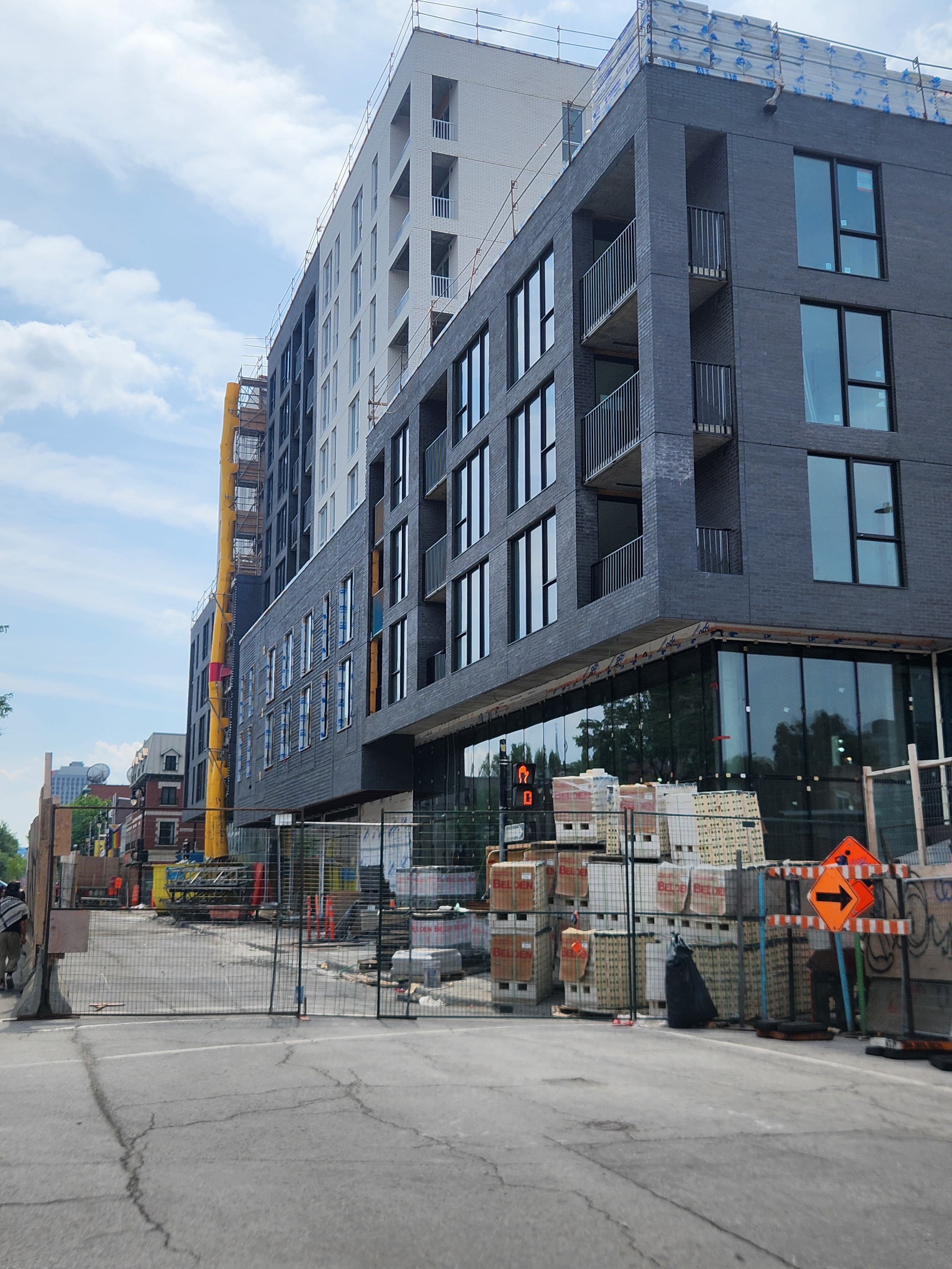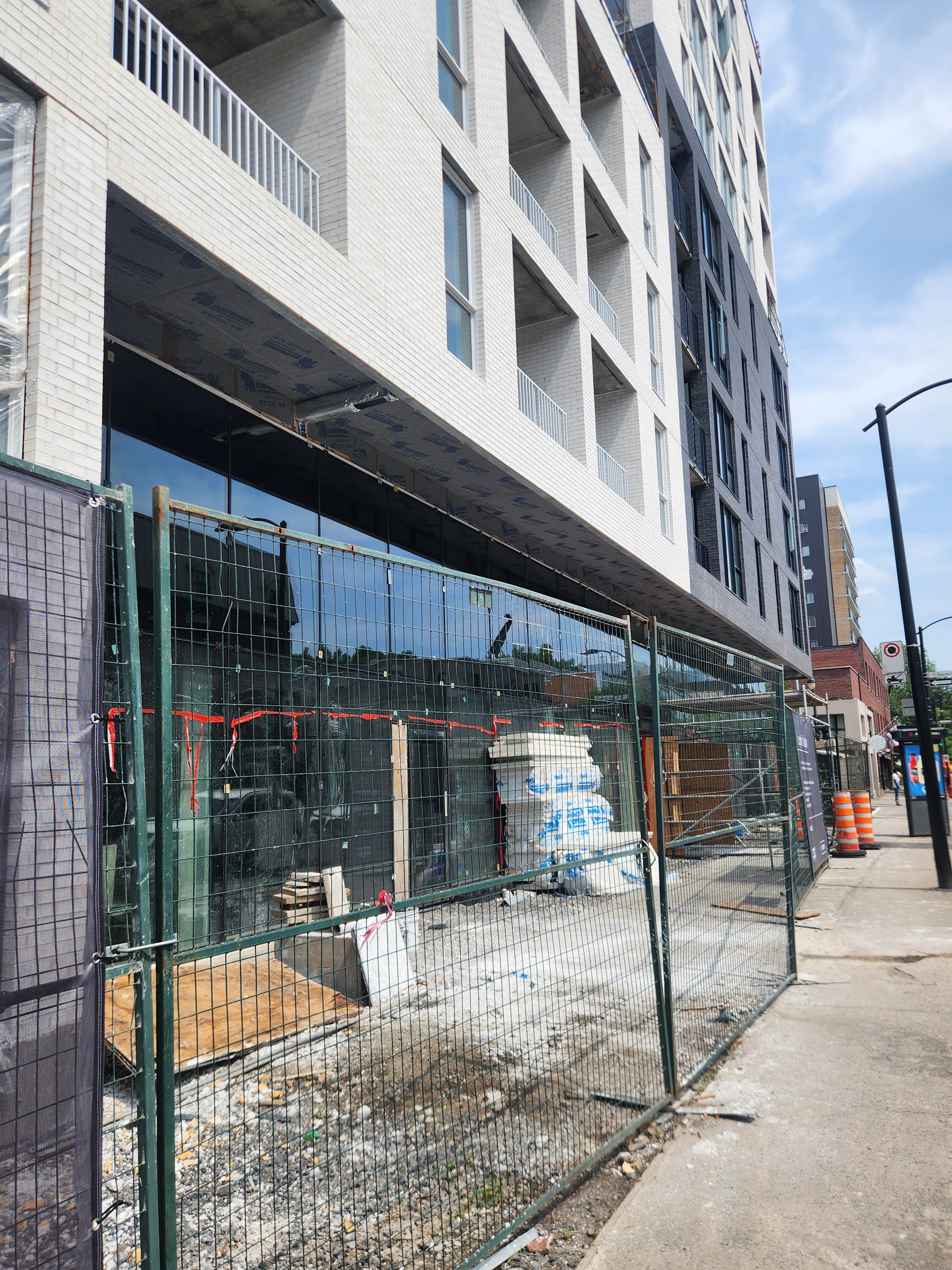 S’insère très bien dans son environnement. J’apprécie particulièrement les différents décrochés qui ajoutent du mouvement, ainsi que le recul au niveau des 2 premiers étages au coin de l’avenue Papineau et Sainte-Catherine, qui permet un trottoir plus large. Le logo du projet rappelle également l’ancien cinéma sur le site avec sa pellicule, joli clin d’oeil.