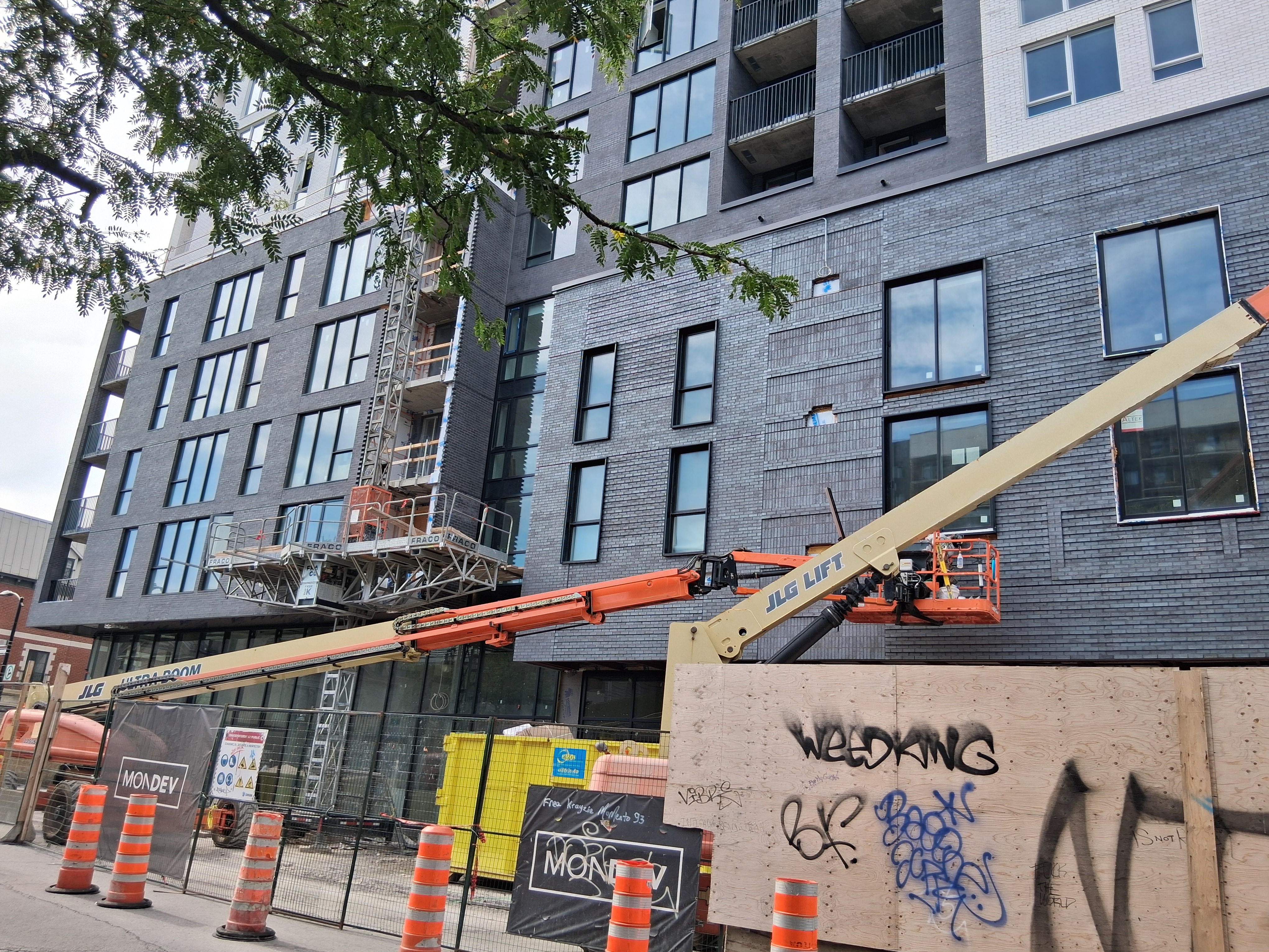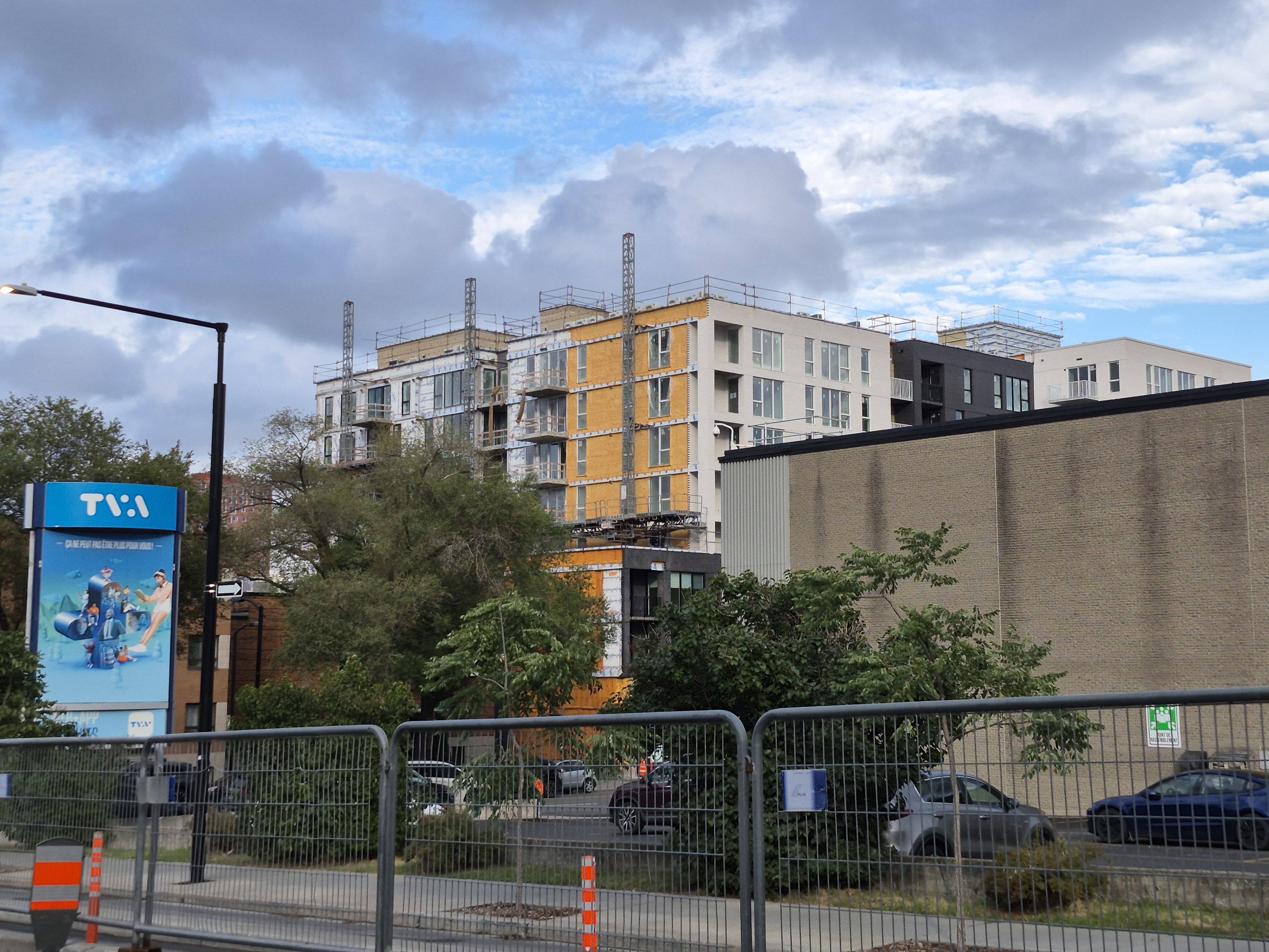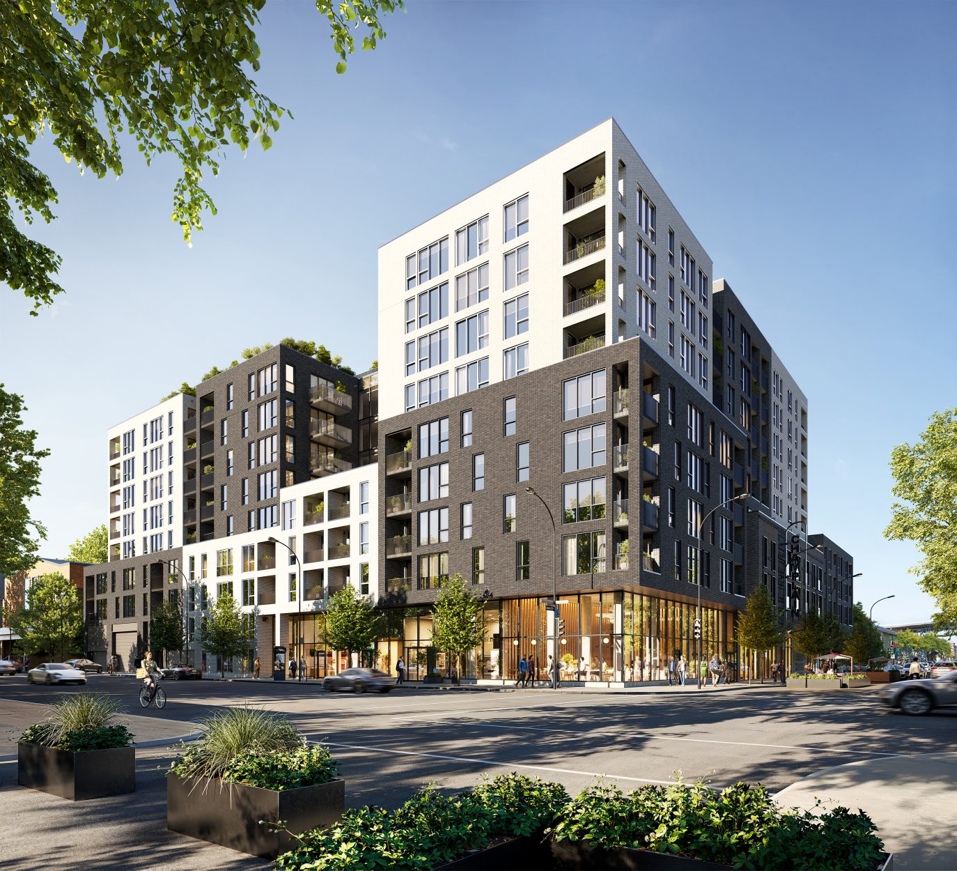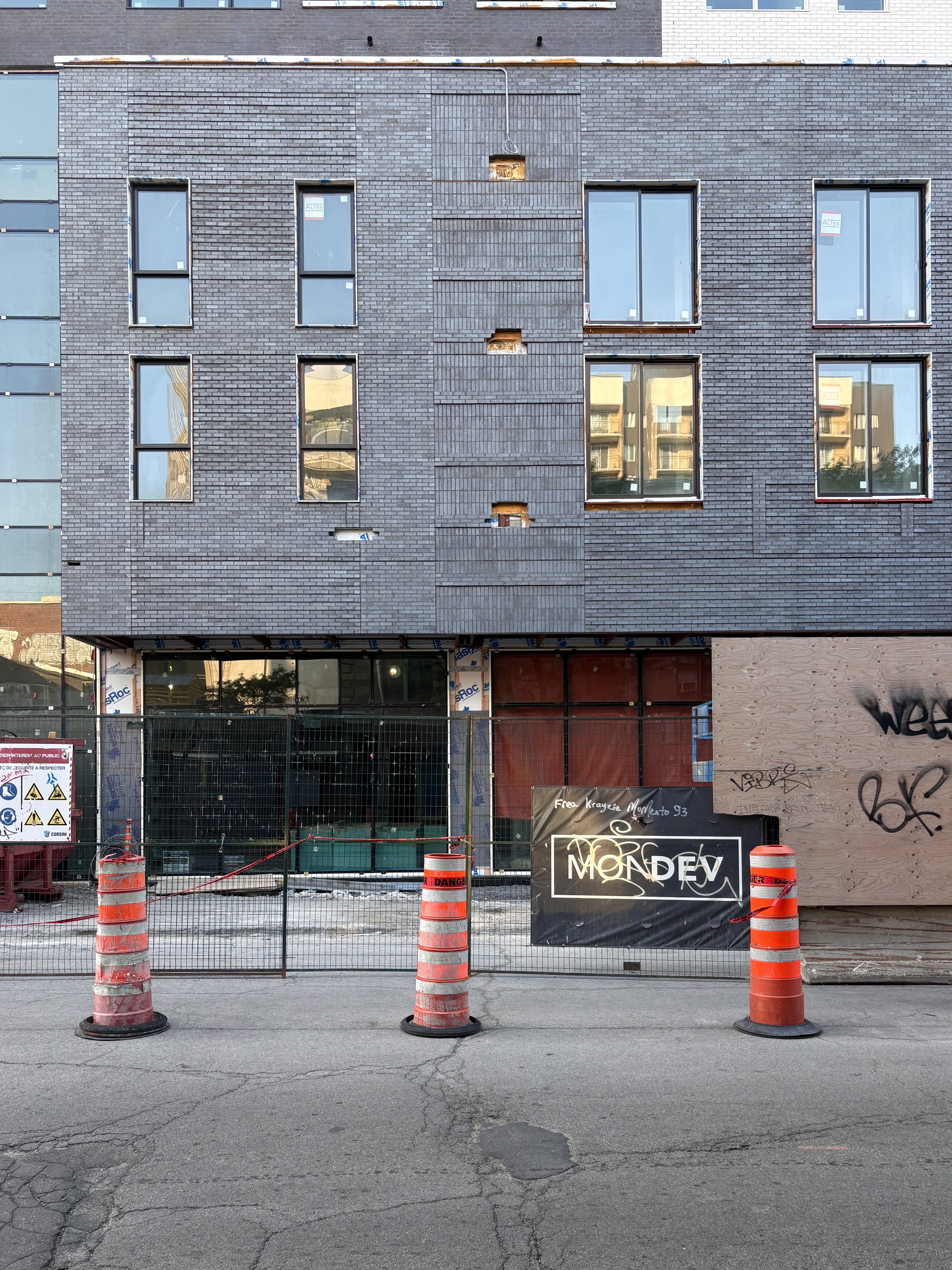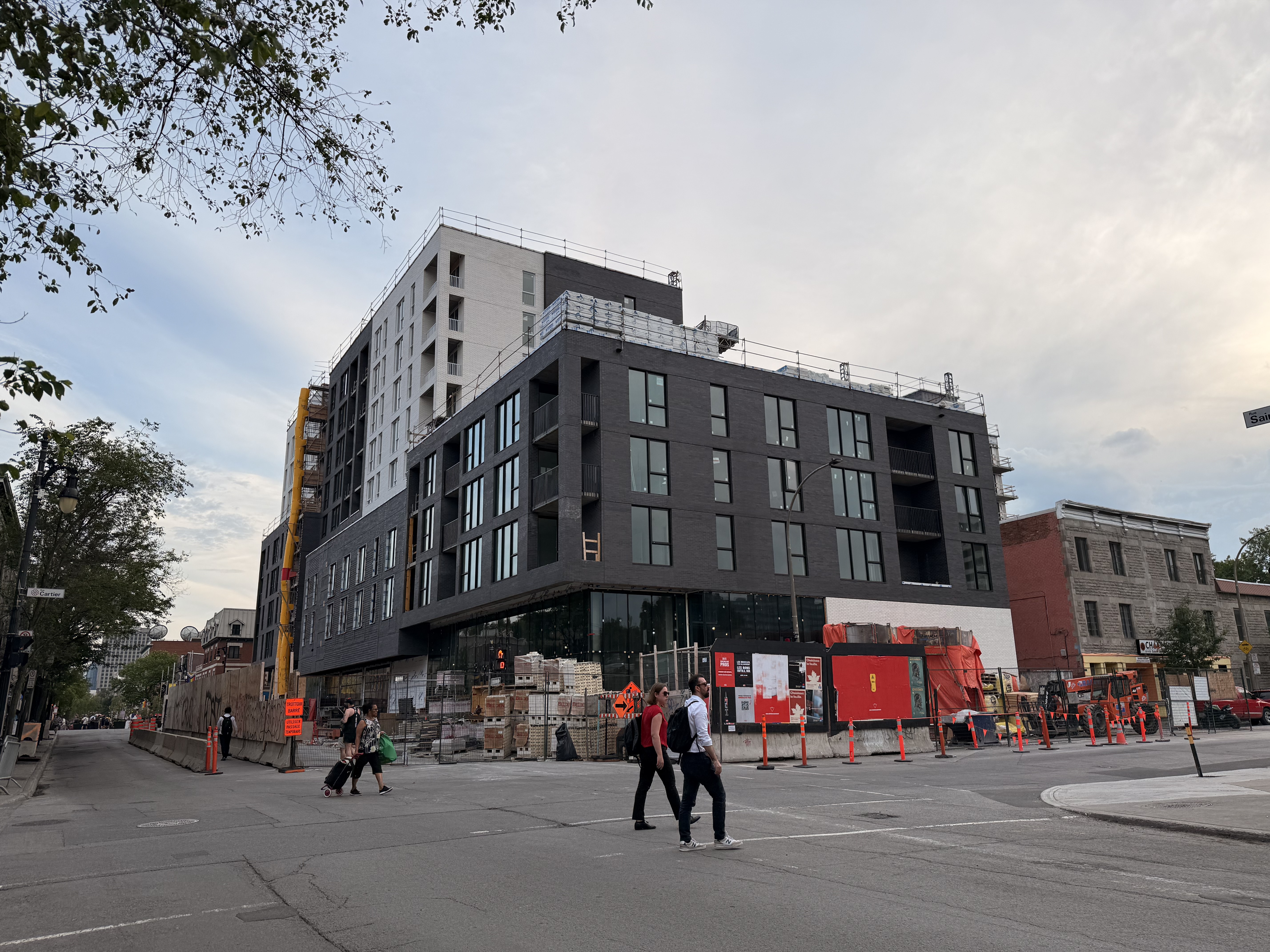 S’insère très bien dans son environnement. J’apprécie particulièrement les différents décrochés qui ajoutent du mouvement, ainsi que le recul au niveau des 2 premiers étages au coin de l’avenue Papineau et Sainte-Catherine, qui permet un trottoir plus large. Le logo du projet rappelle également l’ancien cinéma sur le site avec sa pellicule, joli clin d’oeil.