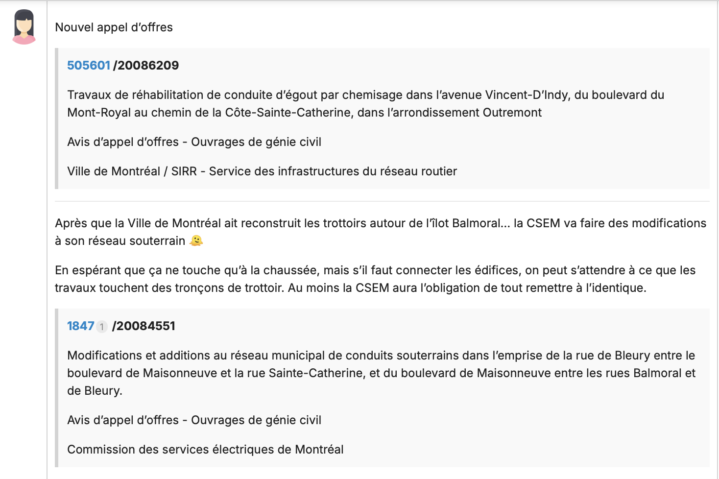 Sinon, ça a été mentionné dans ce sujet à quelques reprises, ces intervenants sur le domaine public ont accès à un outil pour planifier les travaux d’une façon commune. L’outil est là et il est utilisé. Maintenant à savoir pourquoi ce n’est pas synchronisé ici, on ne peut que spéculer.