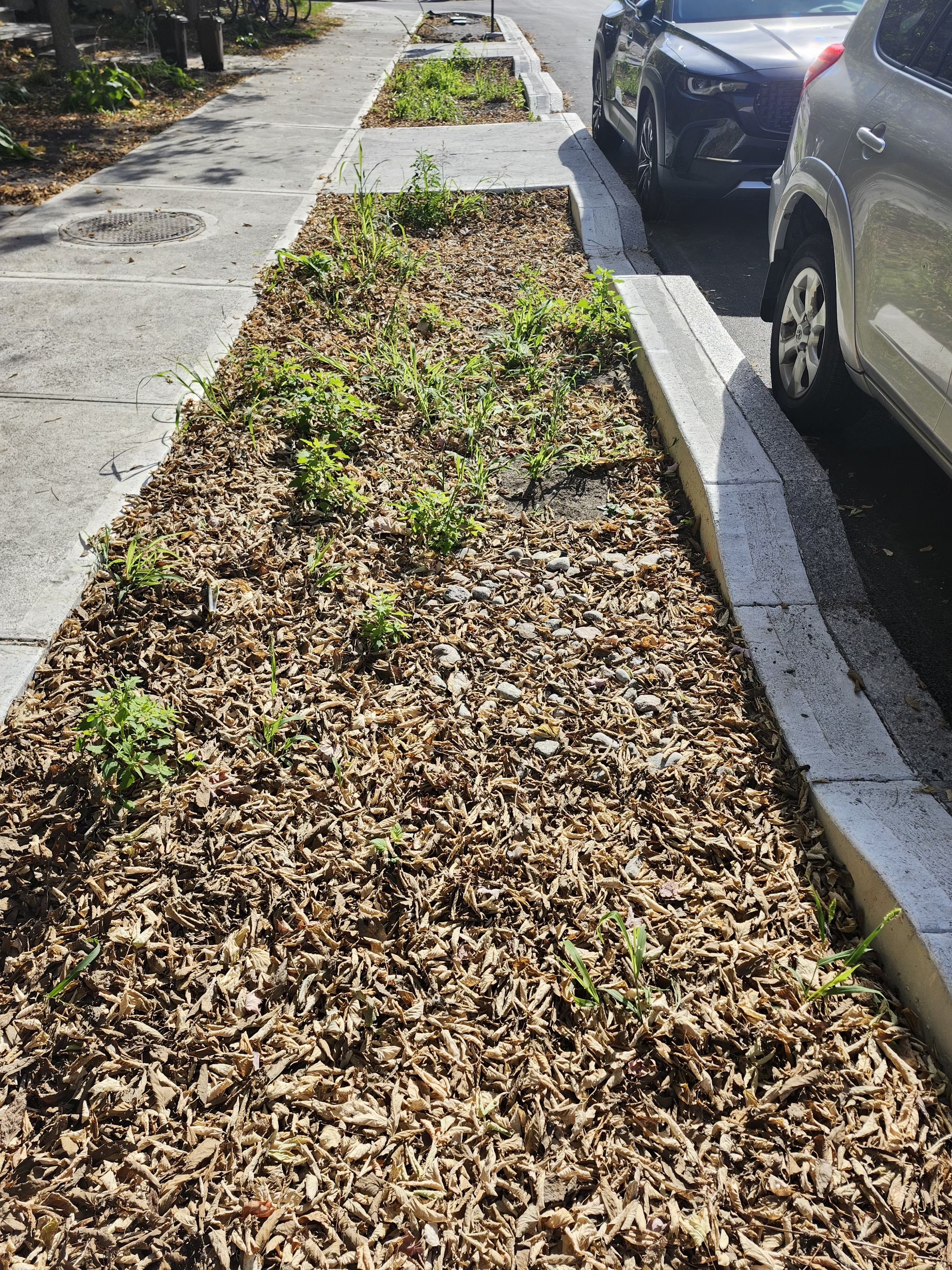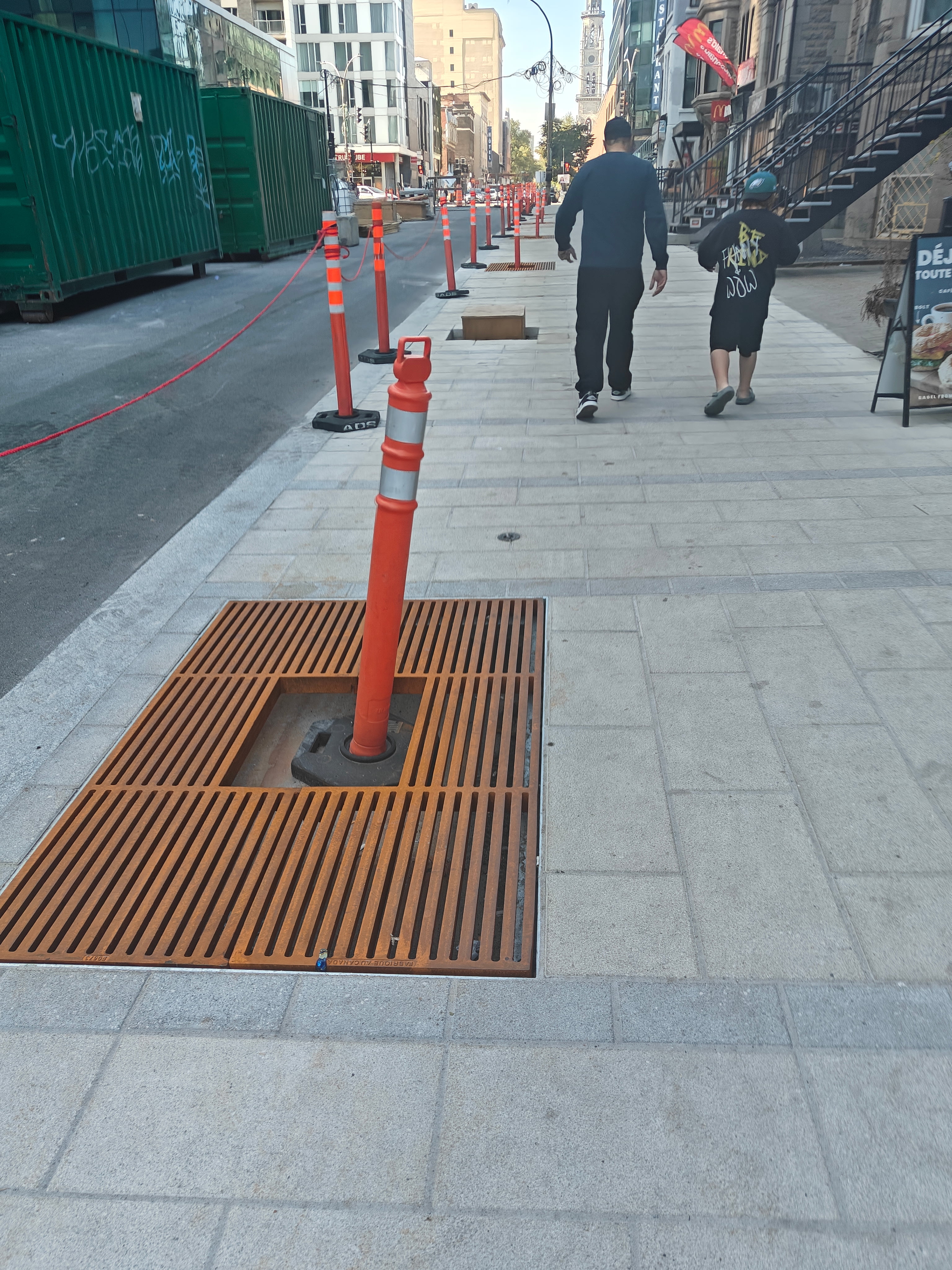 On peut voir un massif dans une des fosses (autre côté de la rue):