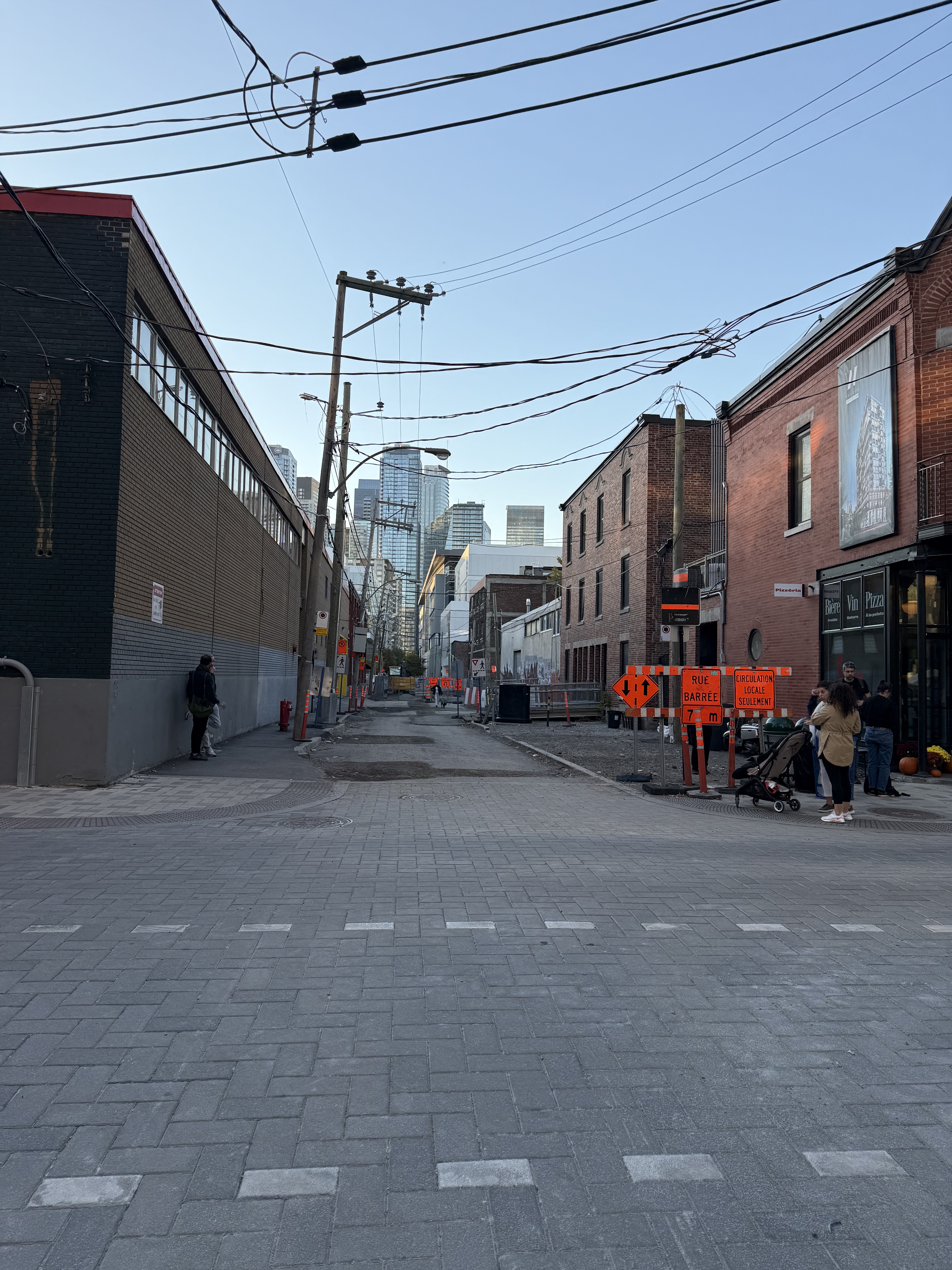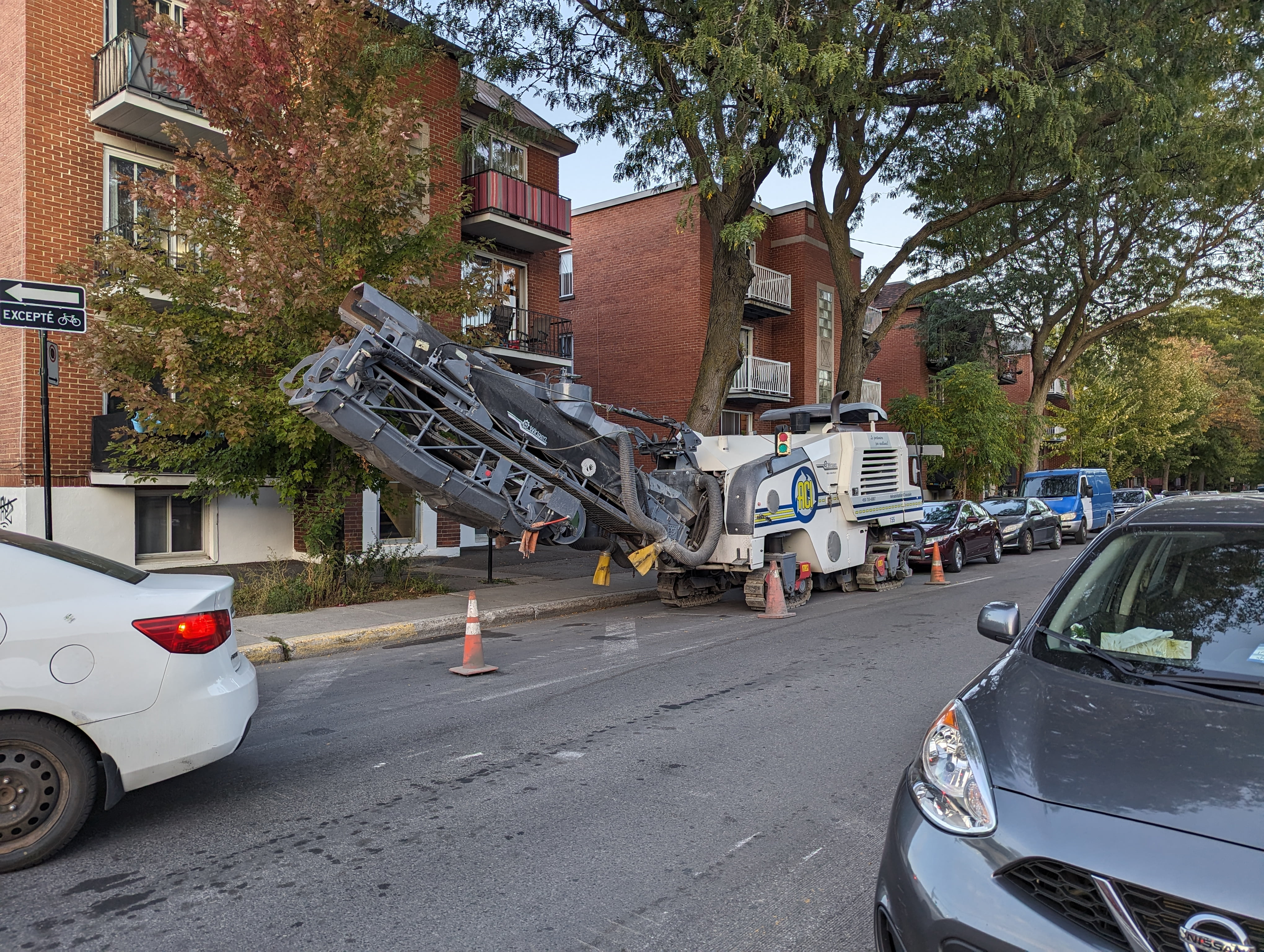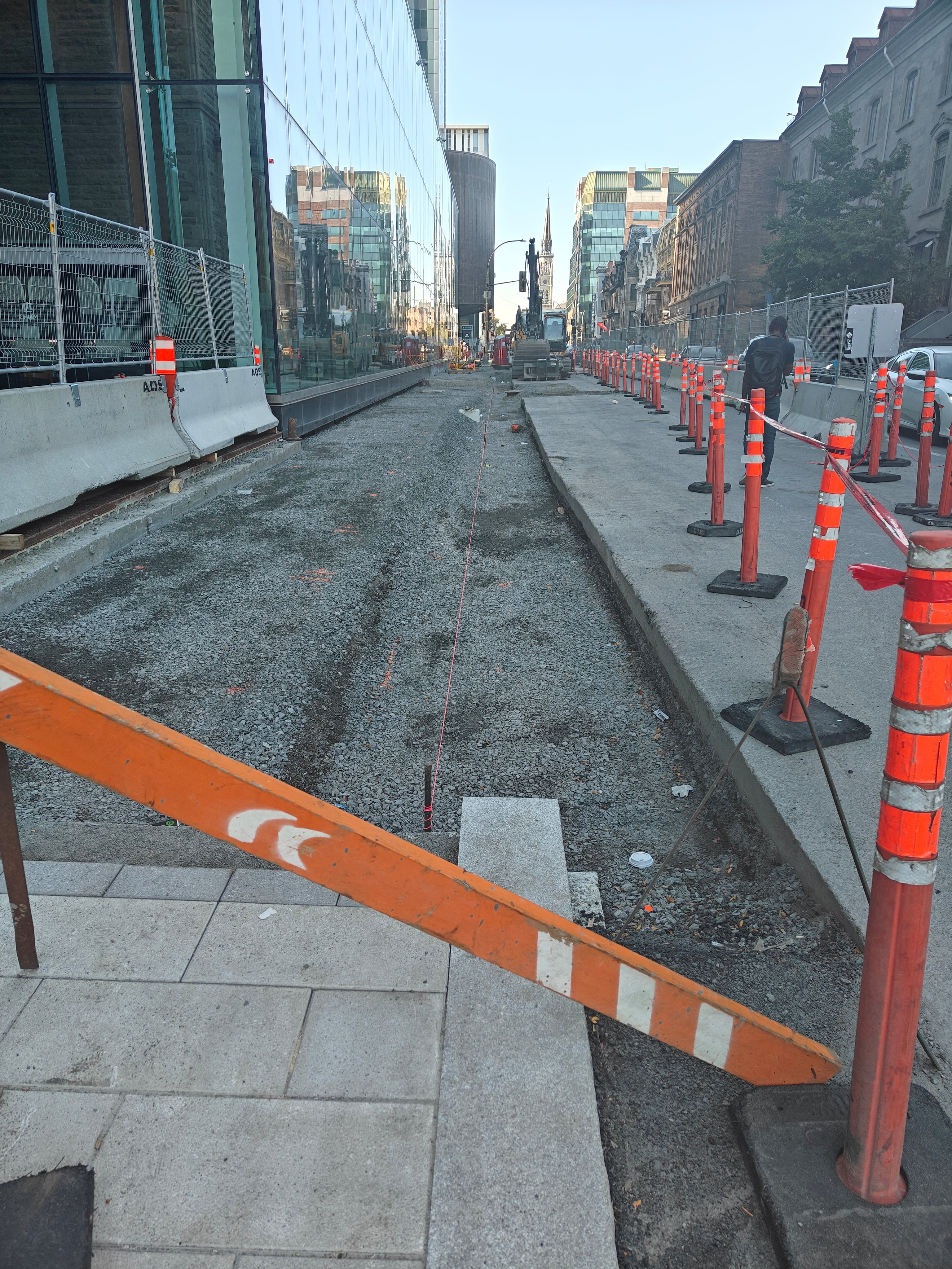 Travaux sur l’avenue Claremont sur la colline de Westmount. On voit des vestiges qui me font imaginer un tram moderne qui monte les rues de Montréal…