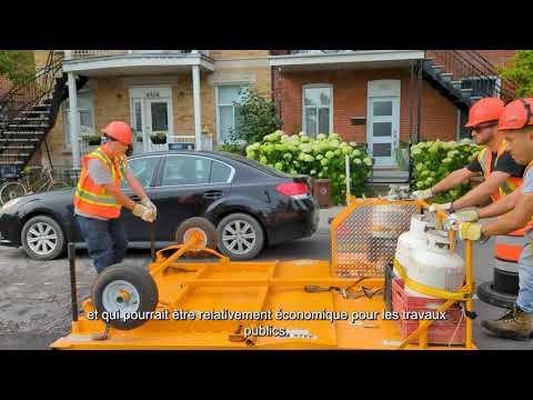 Grâce à une plaque chauffante thermique, les équipes de la voirie expérimentent avec une méthode qui consiste à chauffer et réutiliser l’asphalte en place, en y ajoutant seulement une infime quantité de matériau neuf pour réparer la chaussée. Ce procédé permet notamment de réduire les déchets. Nous évaluons également les économies potentielles associées à cette nouvelle technologie, dont la mise en œuvre simple présente un avantage notable.