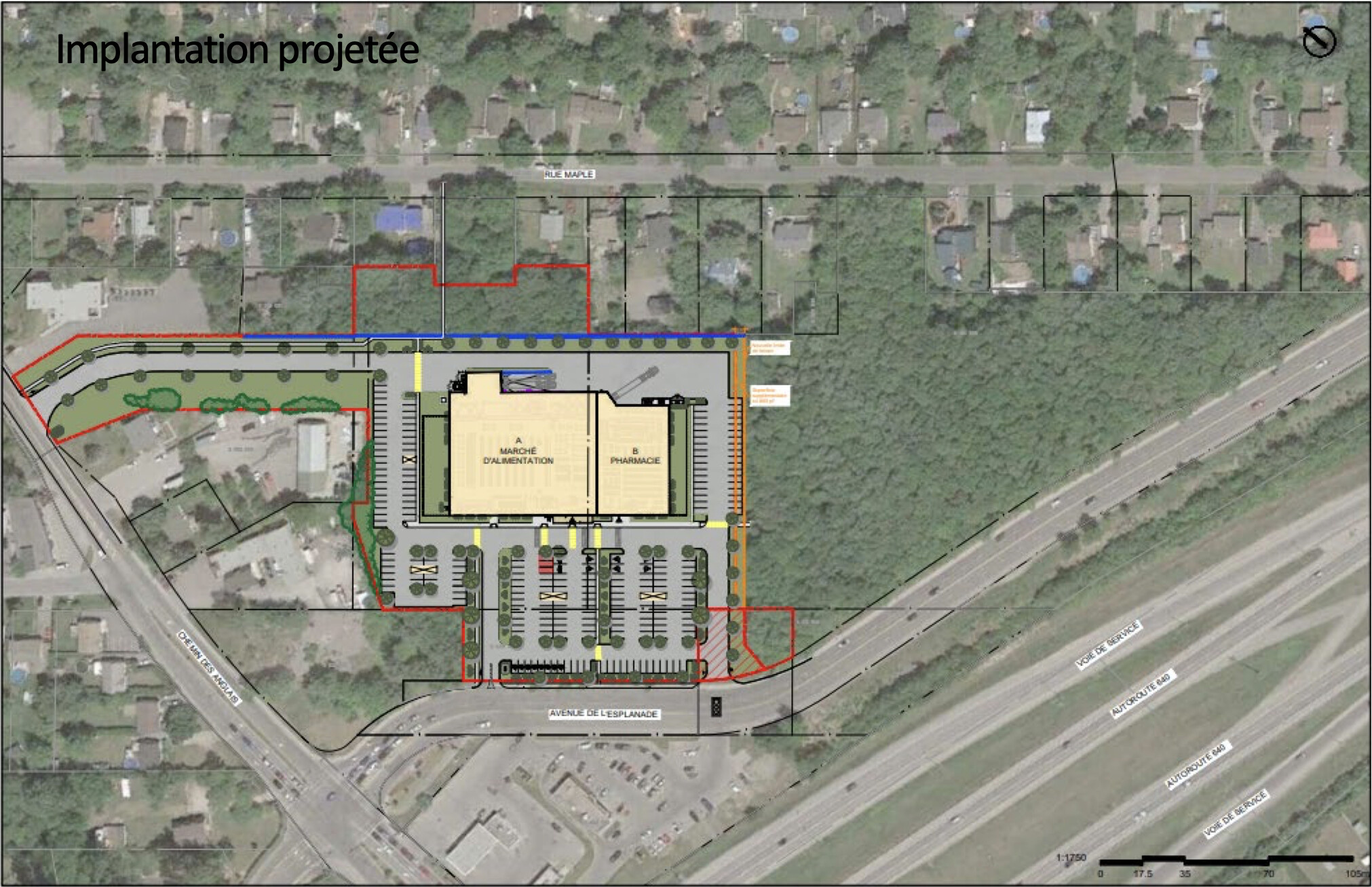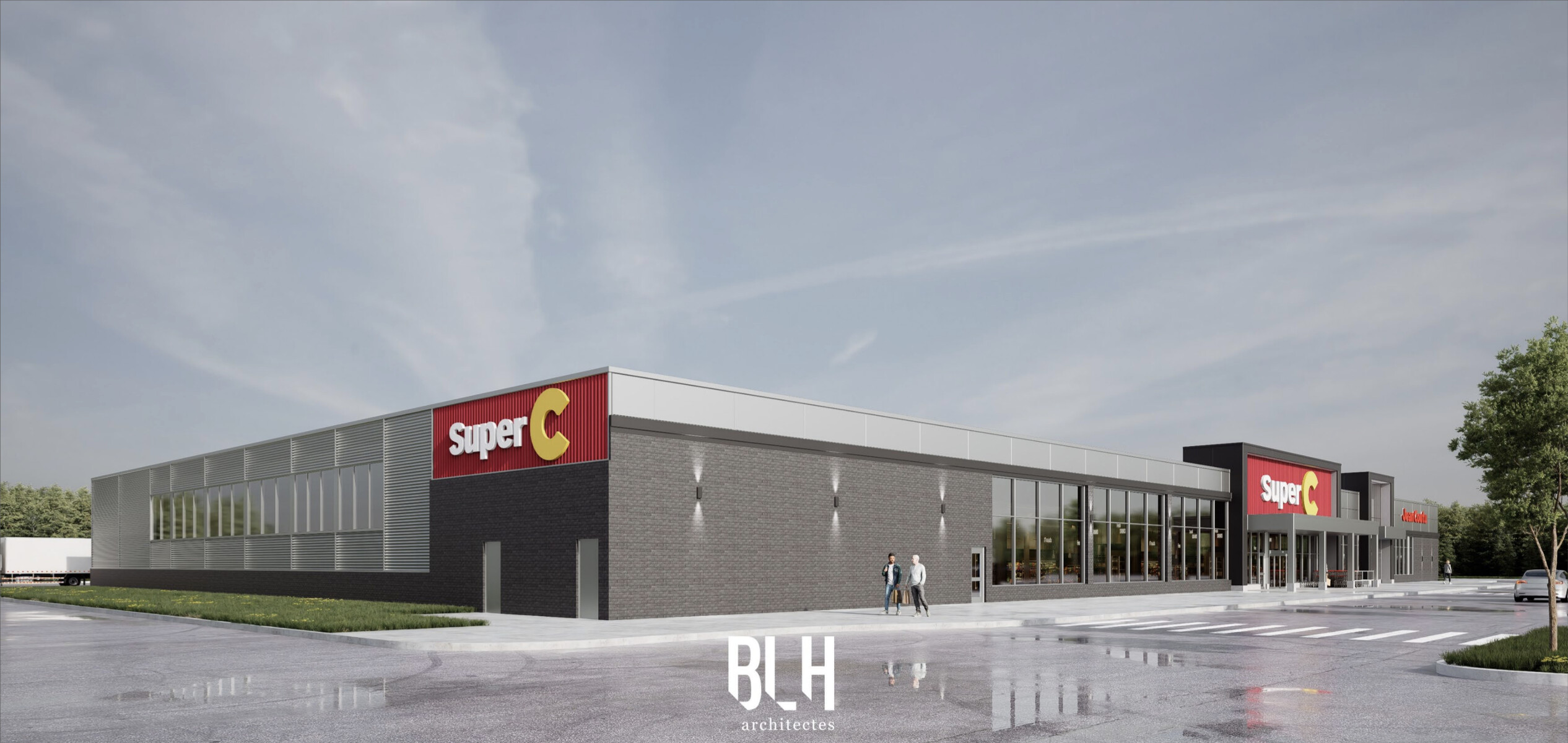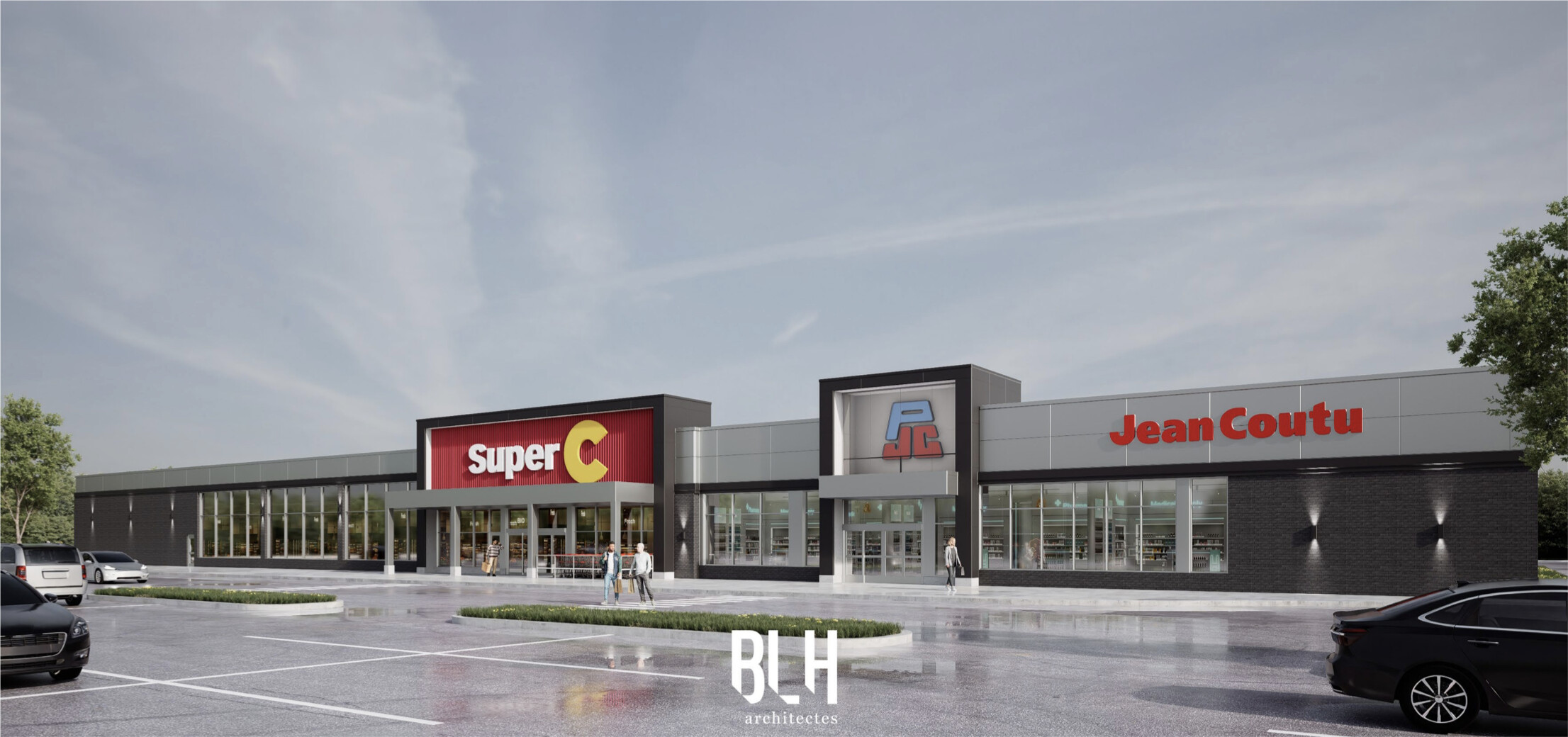 Construction d’un bâtiment commercial abritant un Super C et un Jean Coutu à proximité de l’autoroute 640.