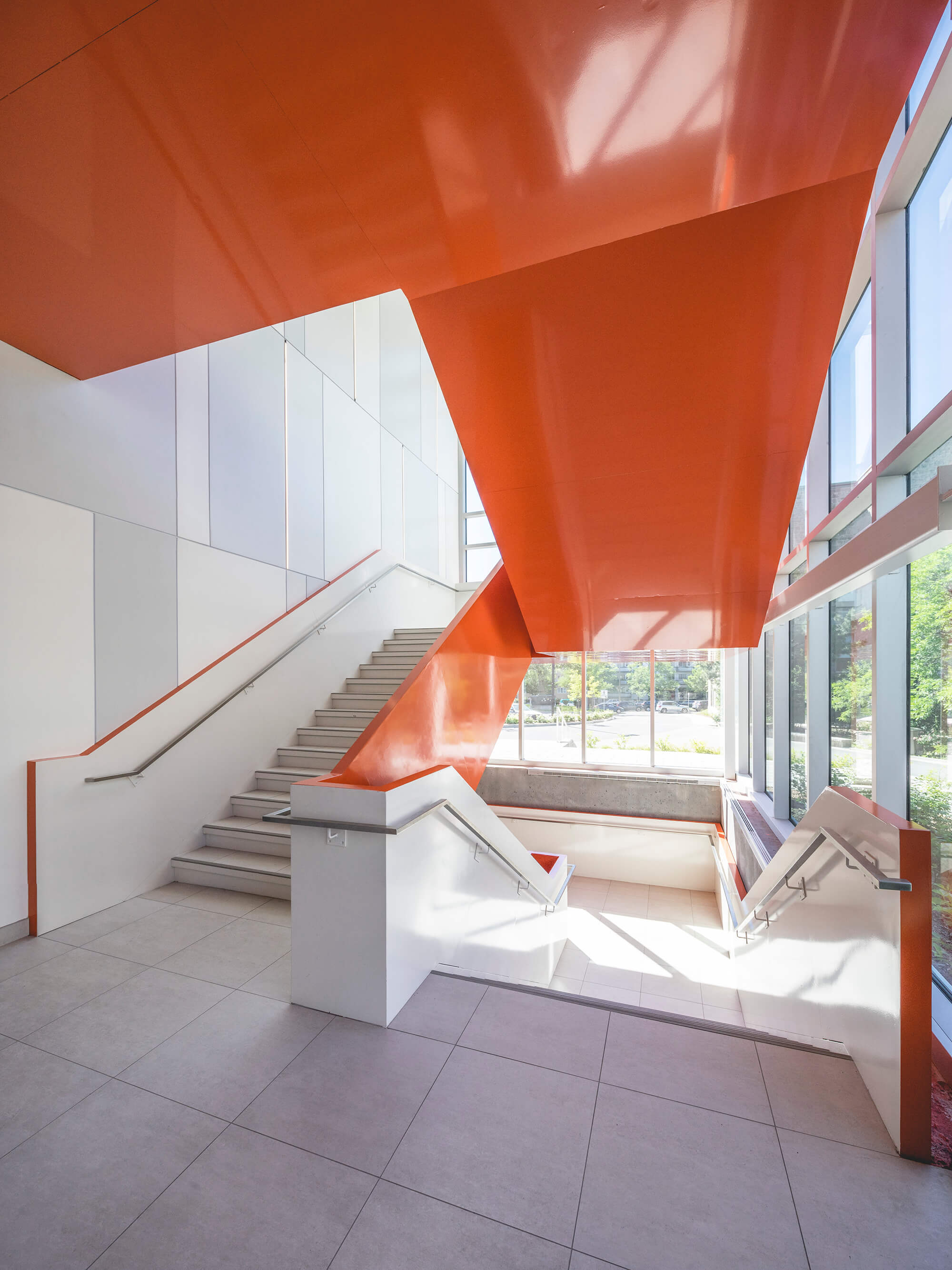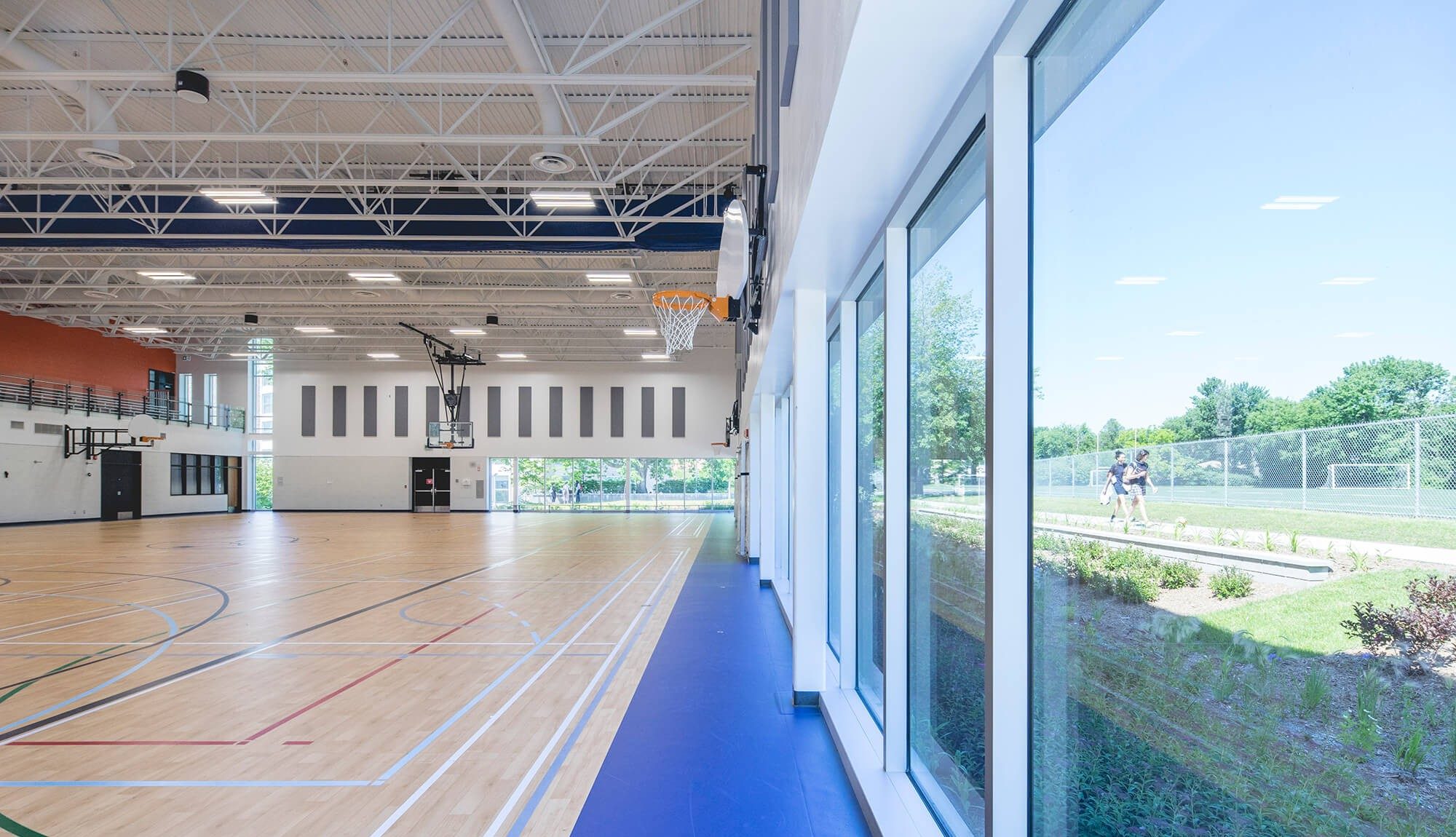 En effet, l’augmentation du nombre d’élèves au fil des ans ainsi que le développement des activités sportives au niveau scolaire et parascolaire ont entraîné la nécessité de construire un deuxième gymnase double sur le site. Le Collège Mont-Saint-Louis a ainsi profité de cette opportunité pour créer un pavillon multifonctionnel et ouvert sur la communauté.