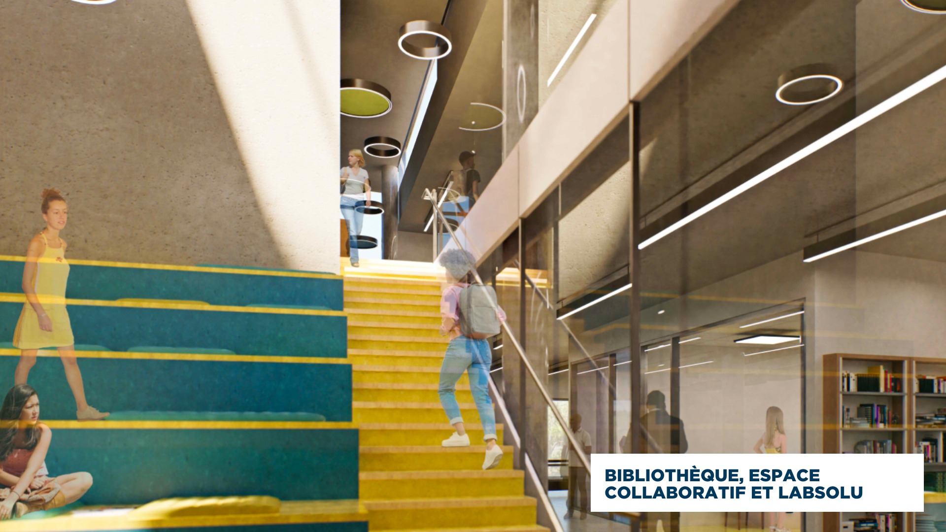 - Nouvelle bibliothèque, espaces étudiants, palestre, terrasse, réaménagement des aires communes