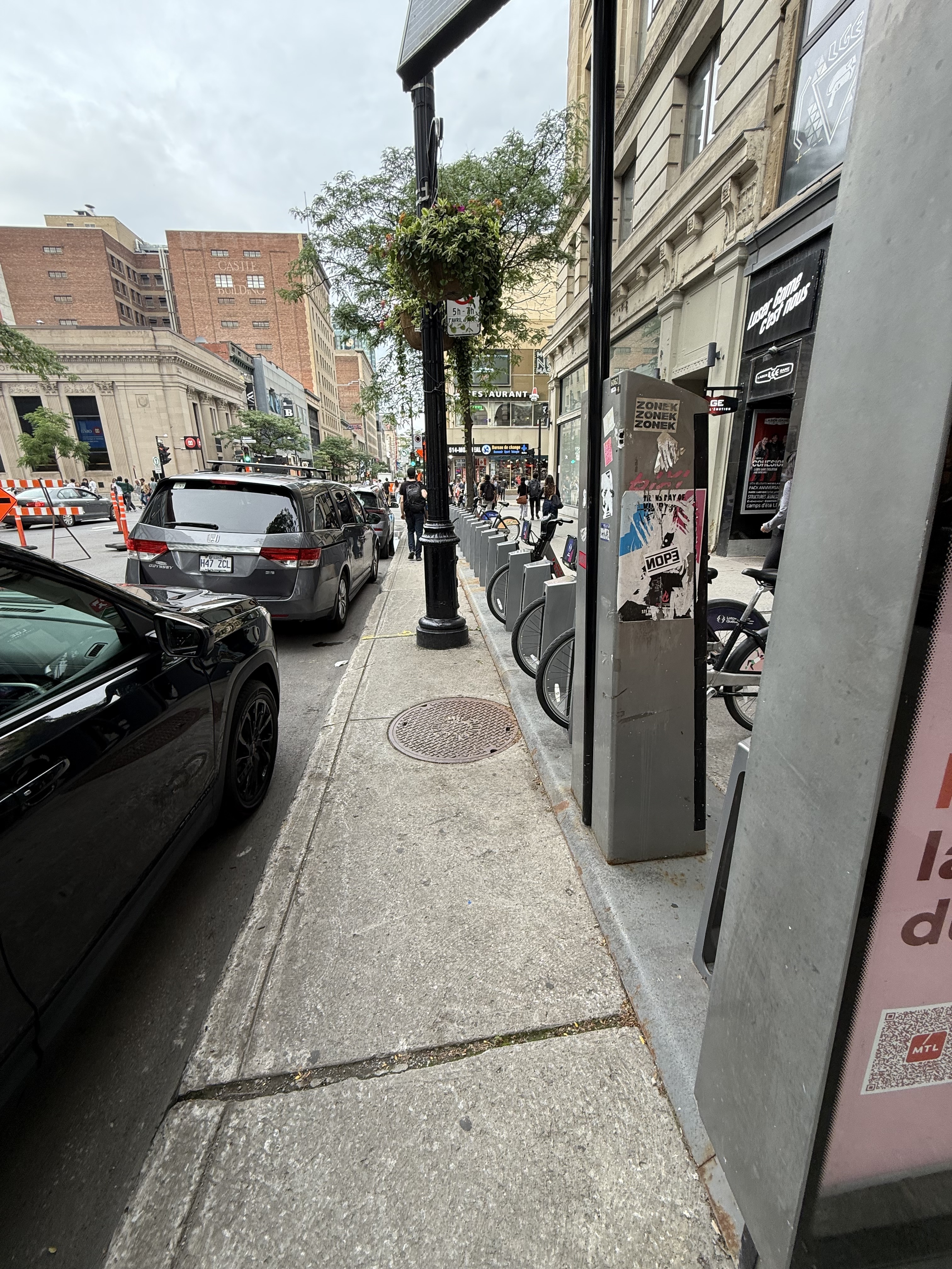Comme si on a vraiment de l’espace trottoir en trop sur Ste-Catherine ? On viendra pas me dire qu’on pouvait pas mettre la station Bixi dans la rue ou sur une rue transversale ?