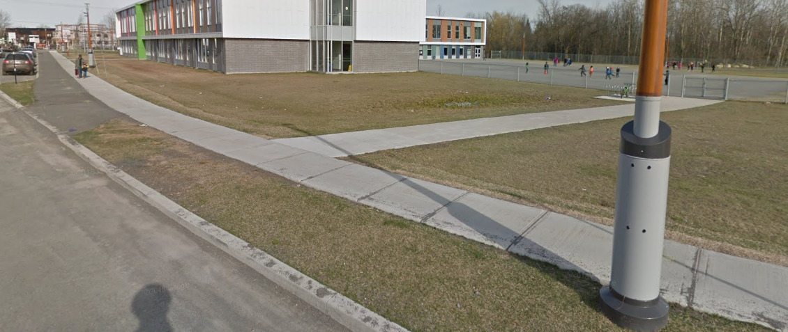 Rare point positif, l’accès au “parking vélo” (dix coince-roues pas sécuritaires) de l’école a été corrigé, avant il fallait sauter le trottoir, mais il y une rampe e été ajoutée. (Et sans abaisser le trottoir)