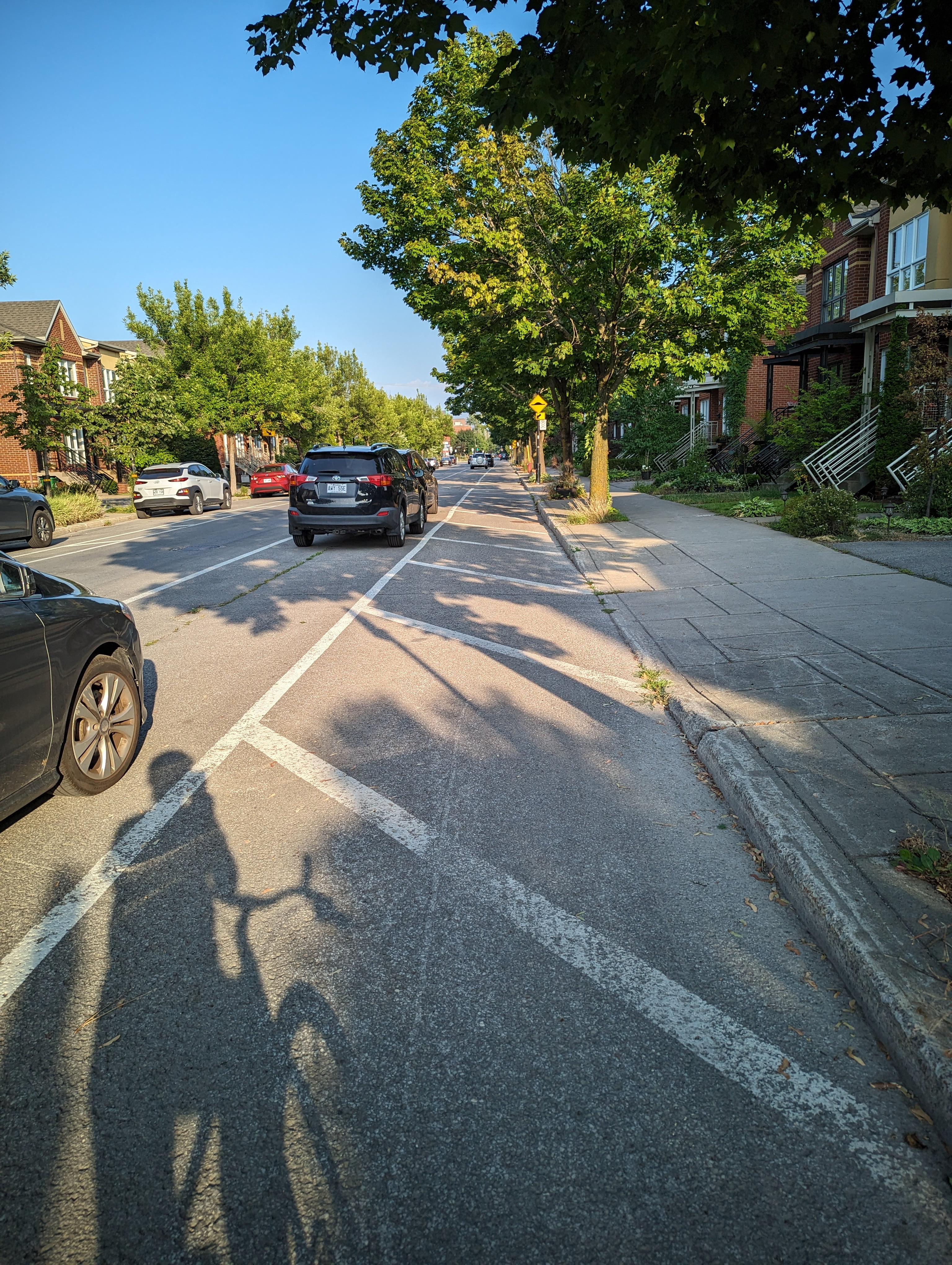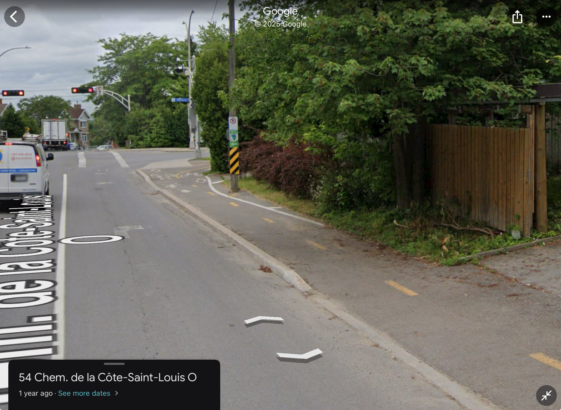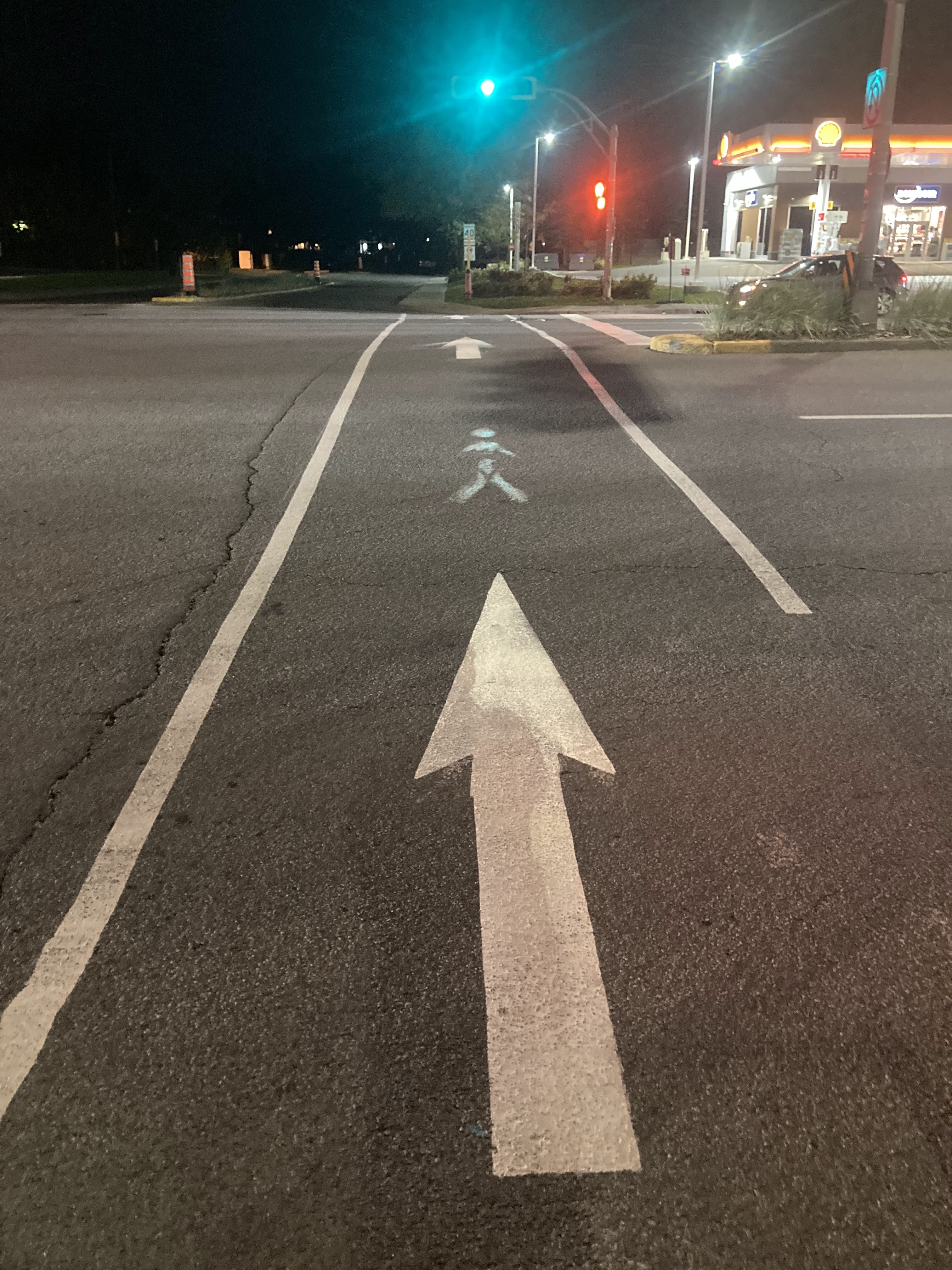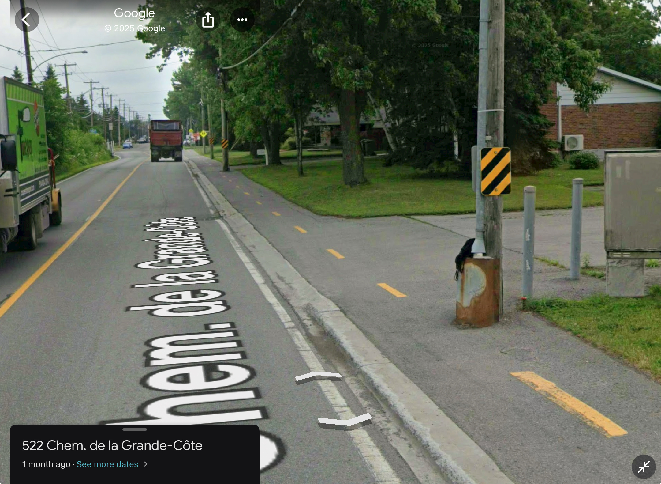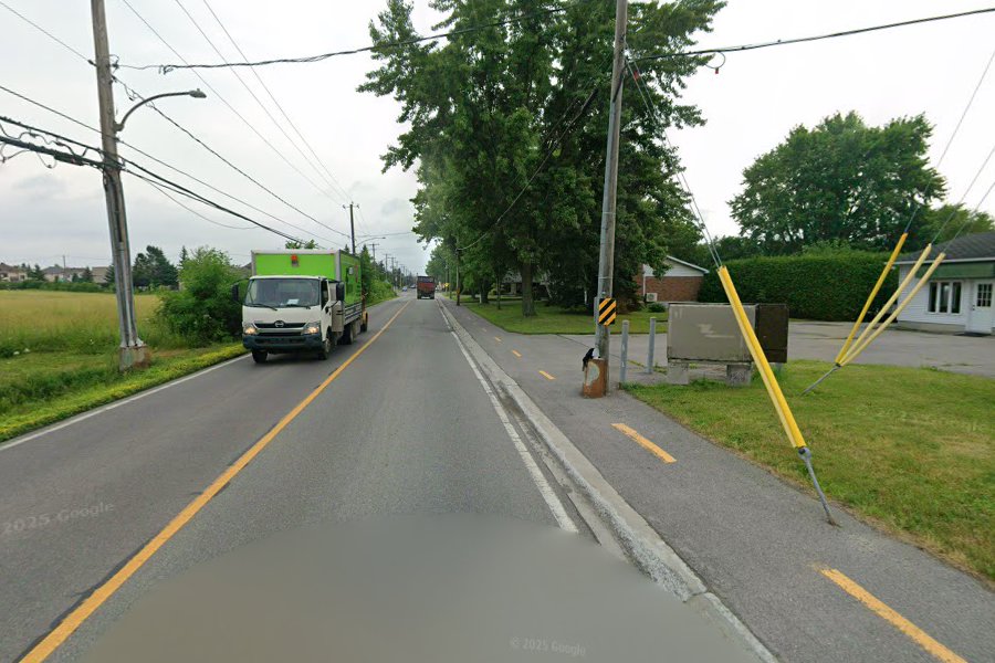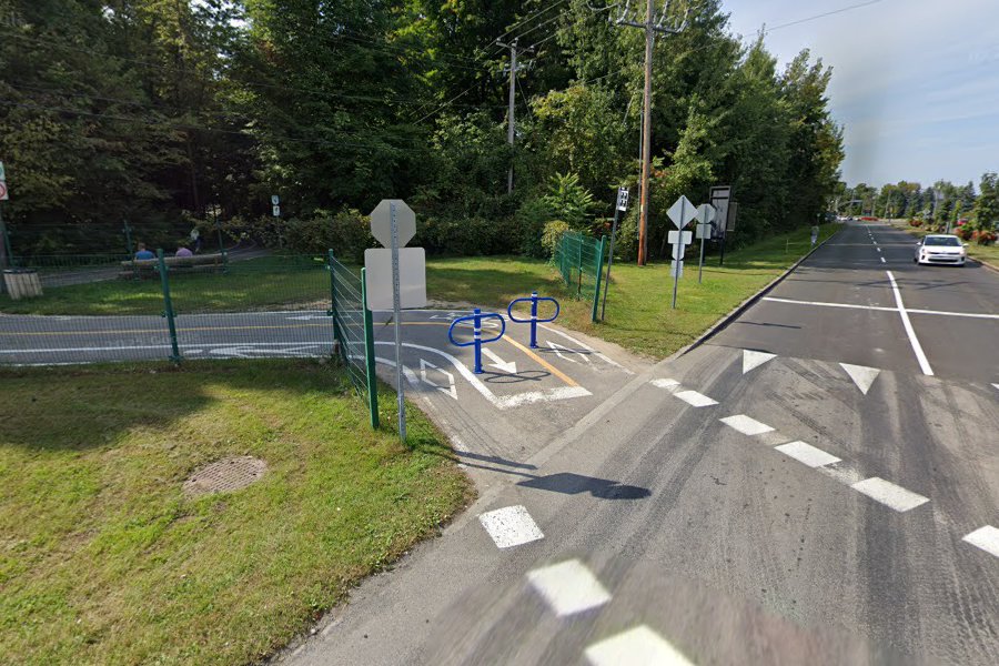 Je vous laisse déterminer si c’est aberrant ou non, mais il y a des bollards dans les pistes cyclables à Deux-Montagnes qui sont placés étrangement. J’imagine que c’est pour ralentir les cyclistes, mais la peinture n’est même pas alignée (et ça a toujours été le cas d’après Street View).