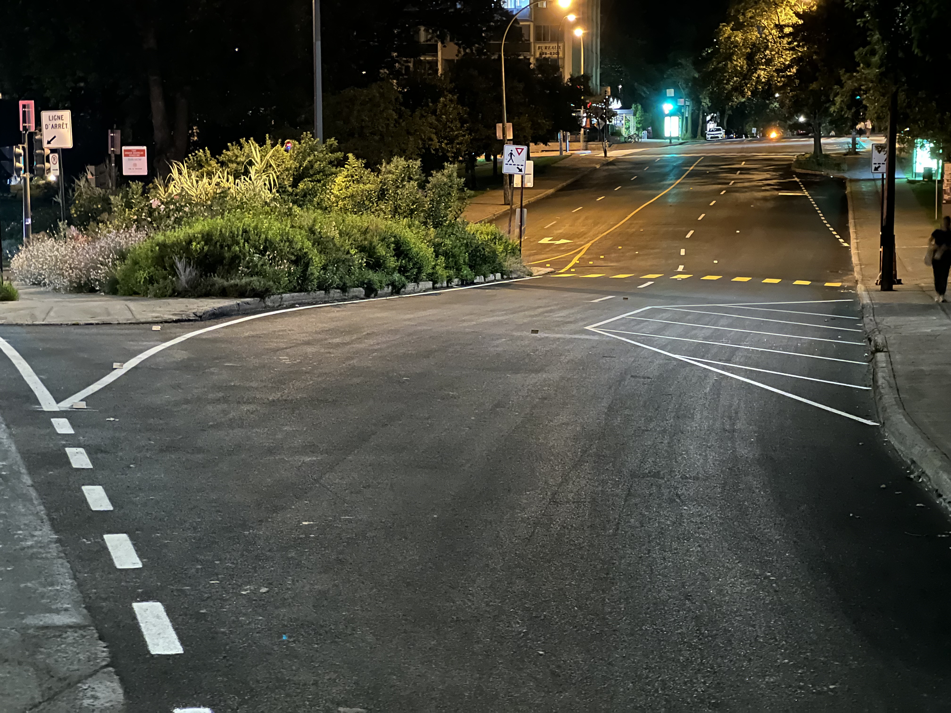 I’m not sure how a bus is supposed to smoothly turn onto Cherrier from Sherbrooke by how they repainted this: