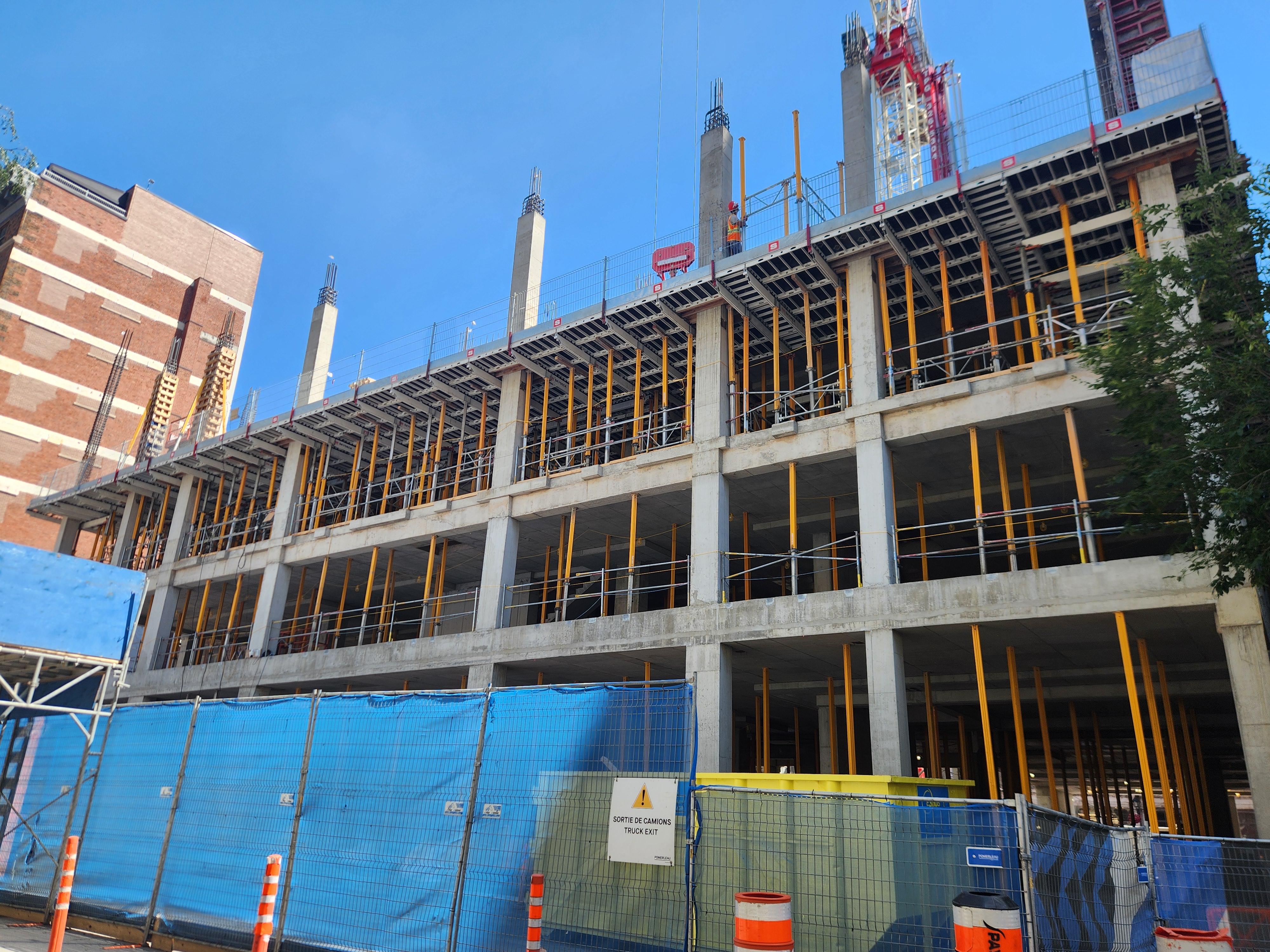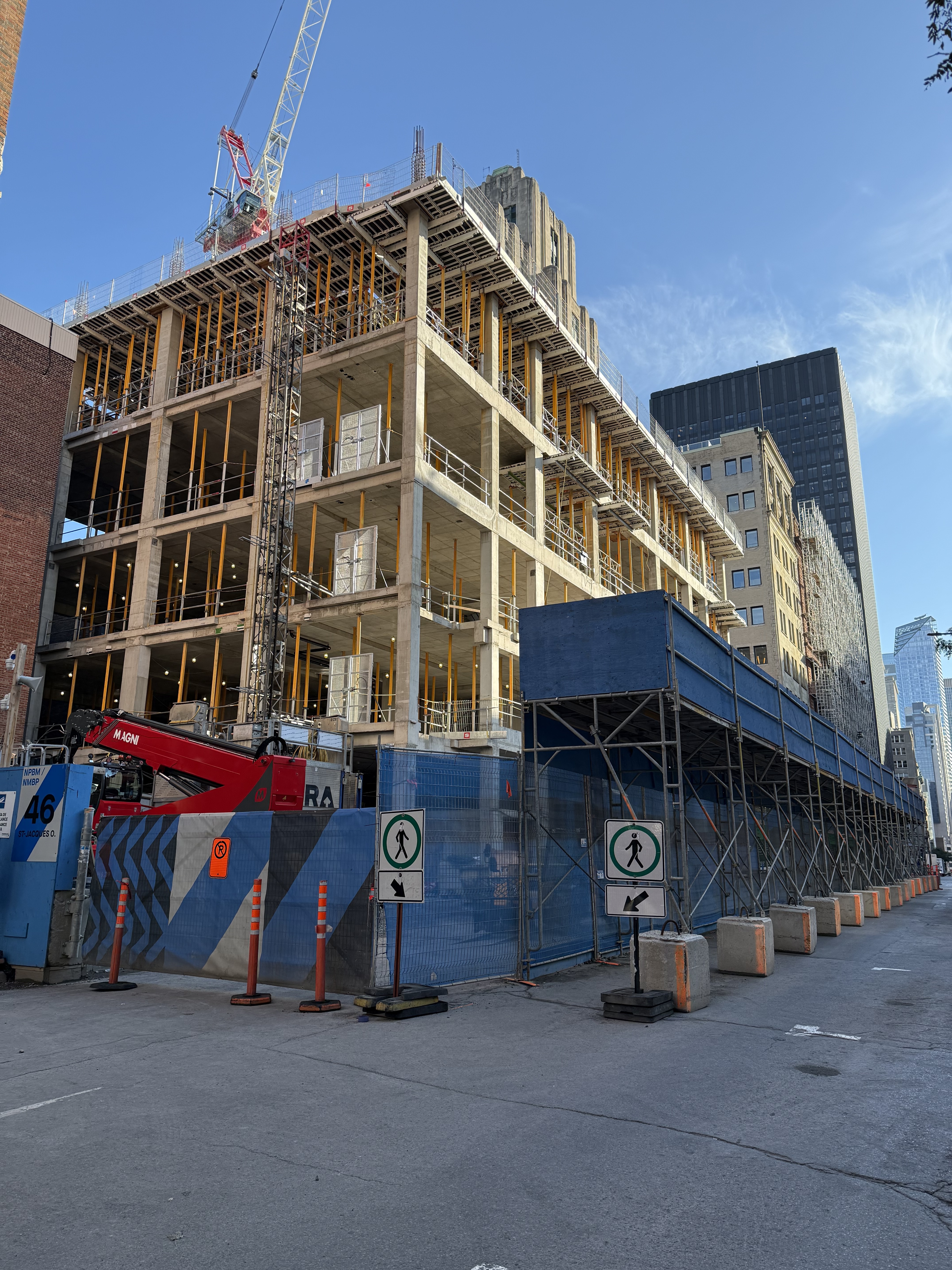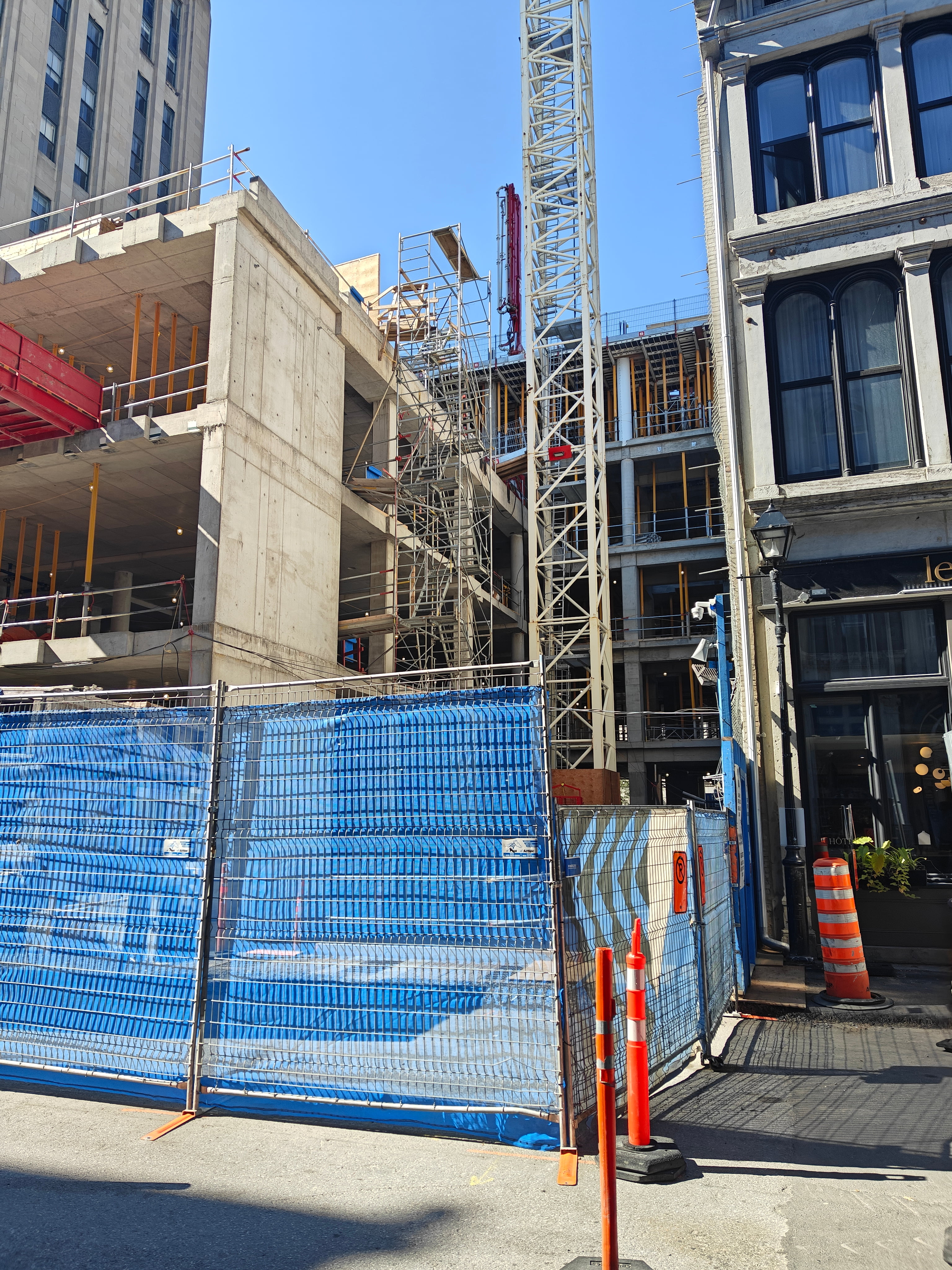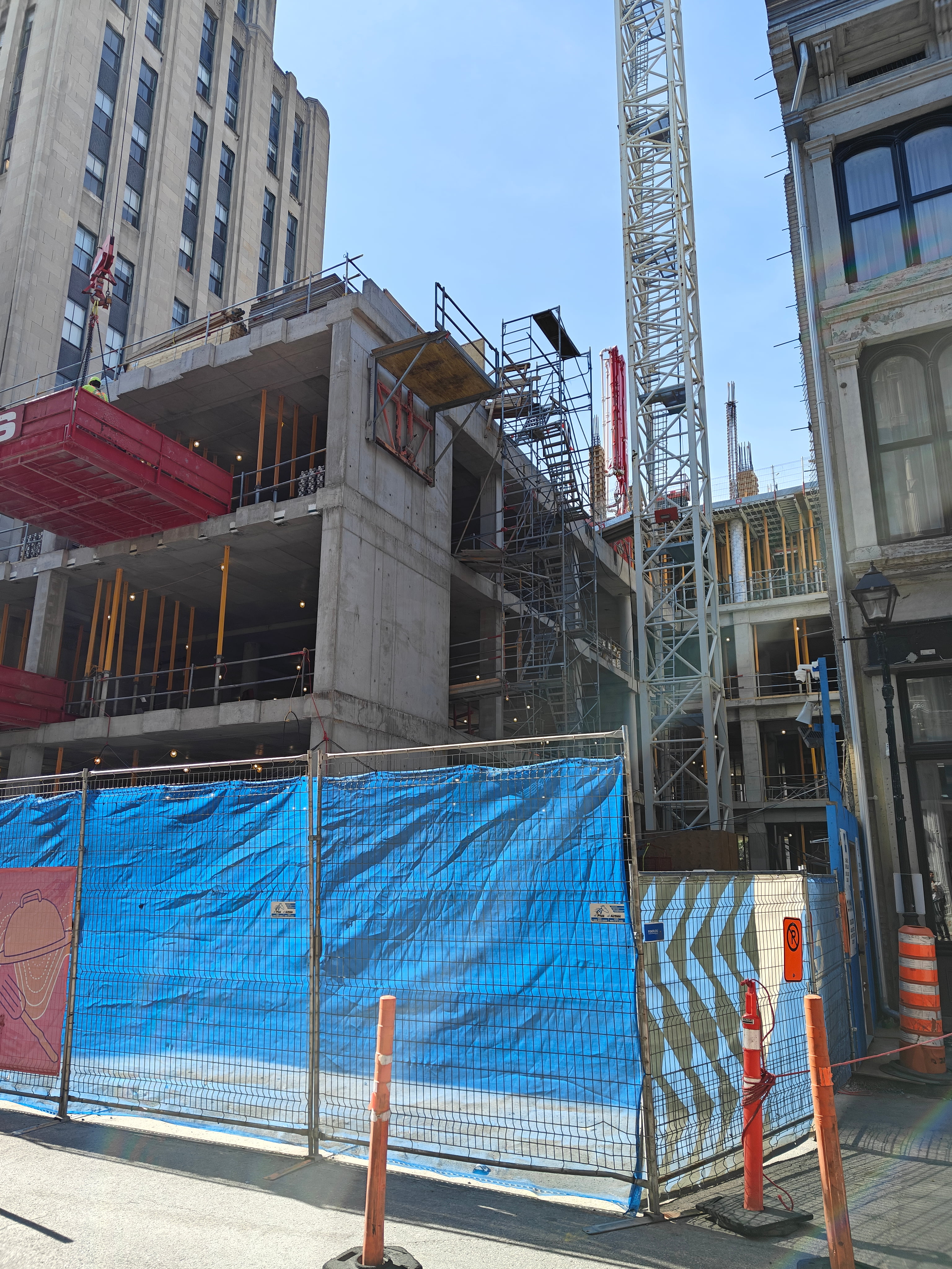 On vient de poser les escaliers de béton intérieurs. Je crois que l’espace vide à l’est, là où se trouve la grue, sera le hall d’entrée surdimentionné.
