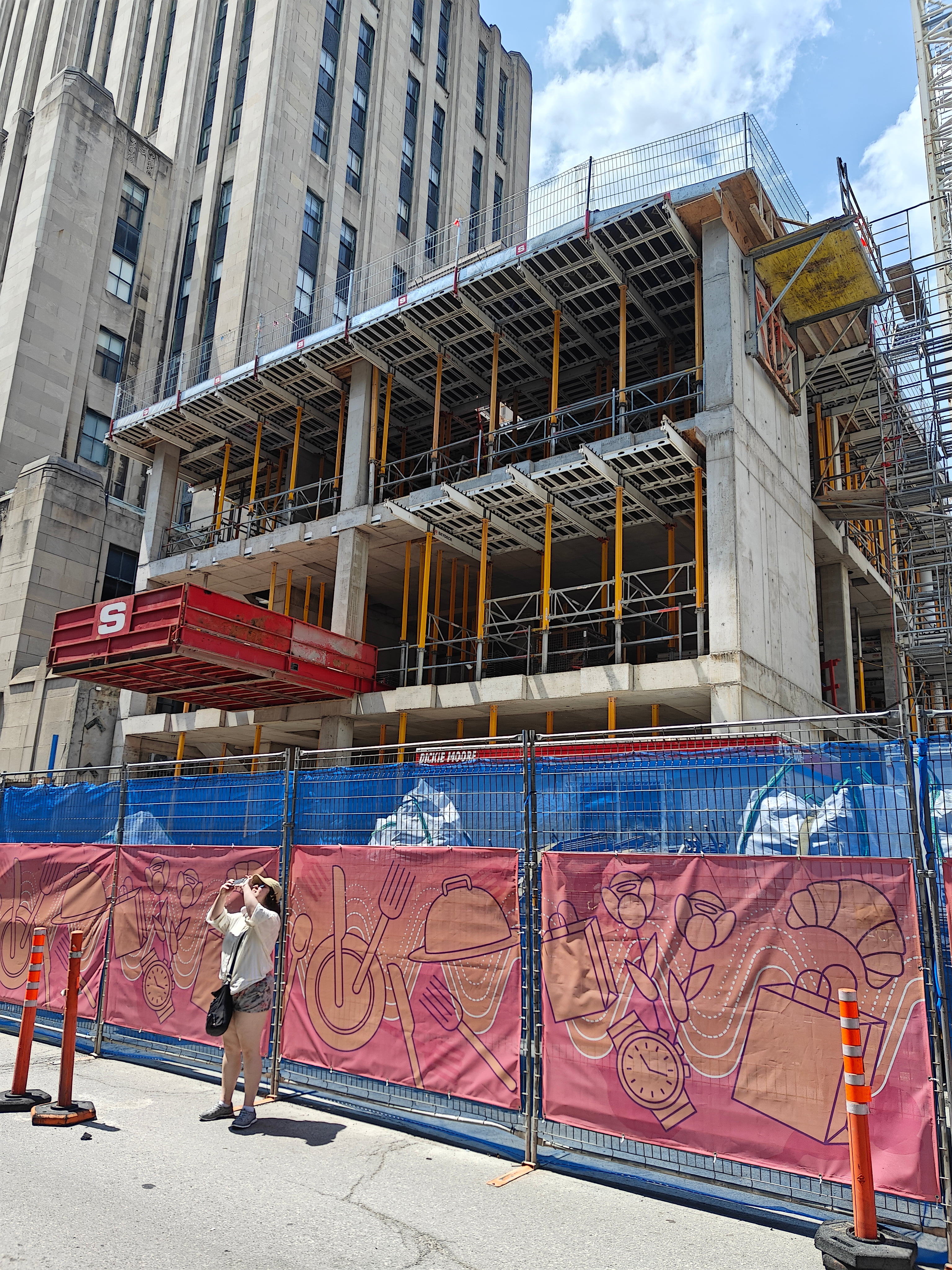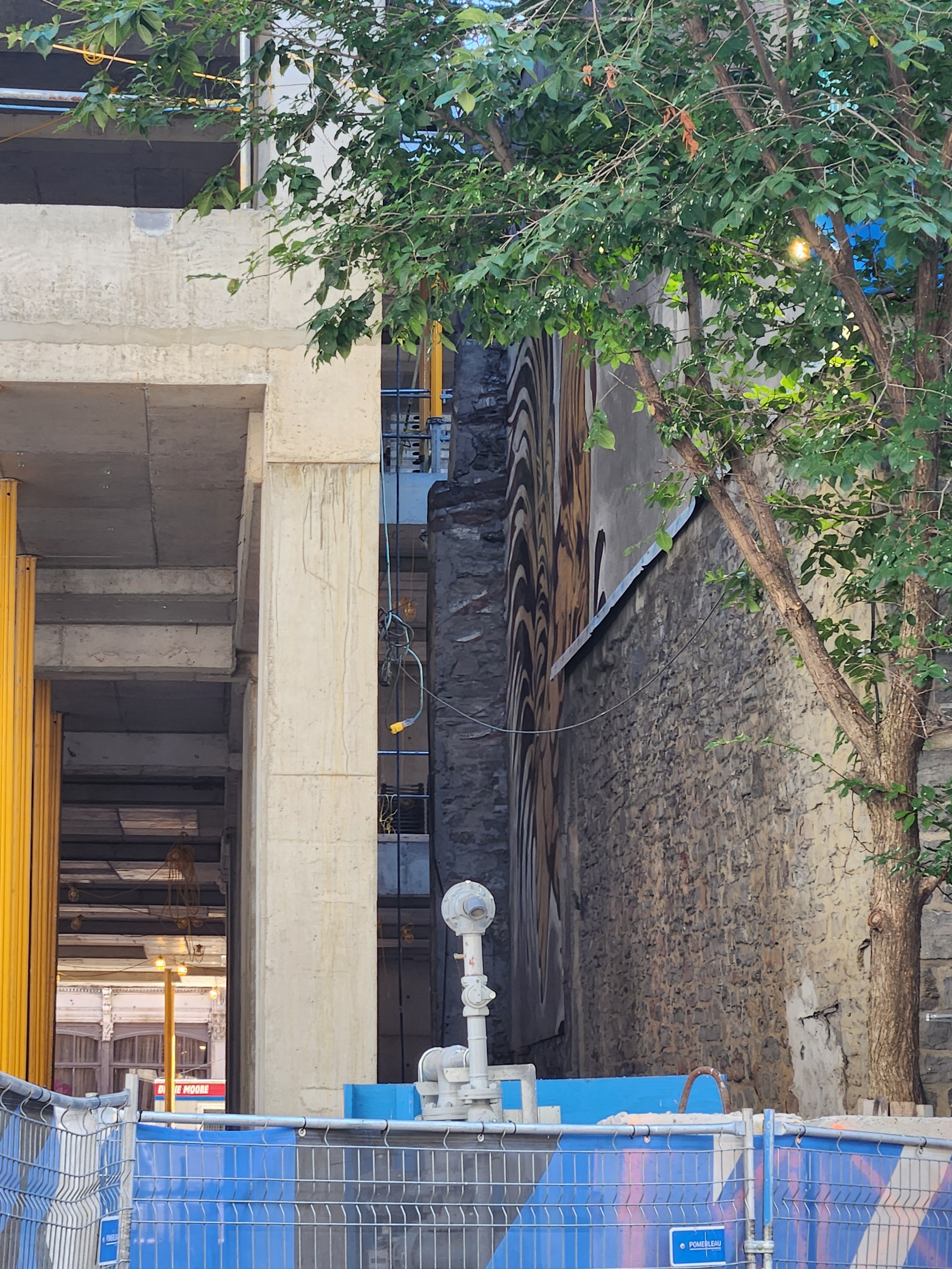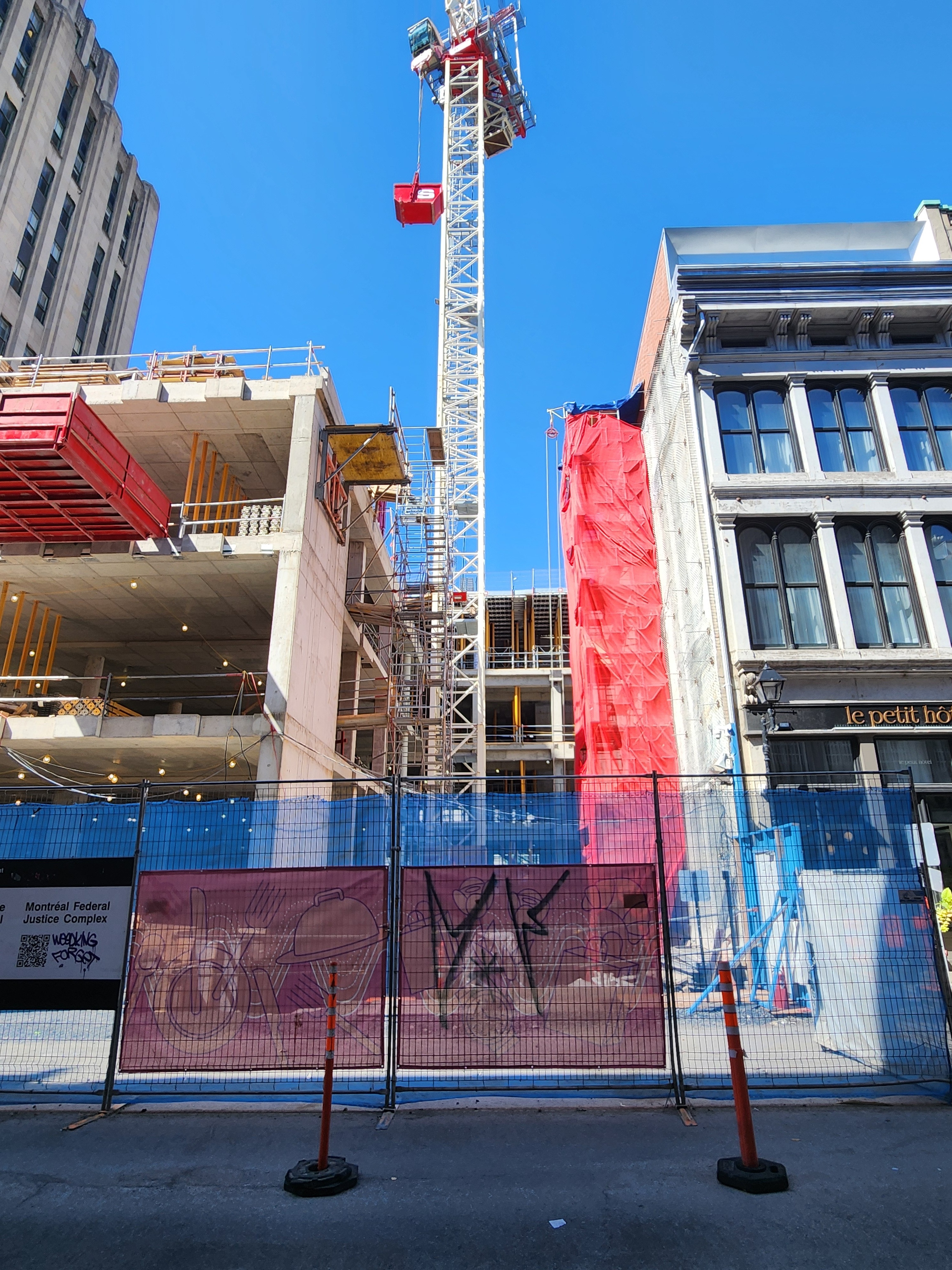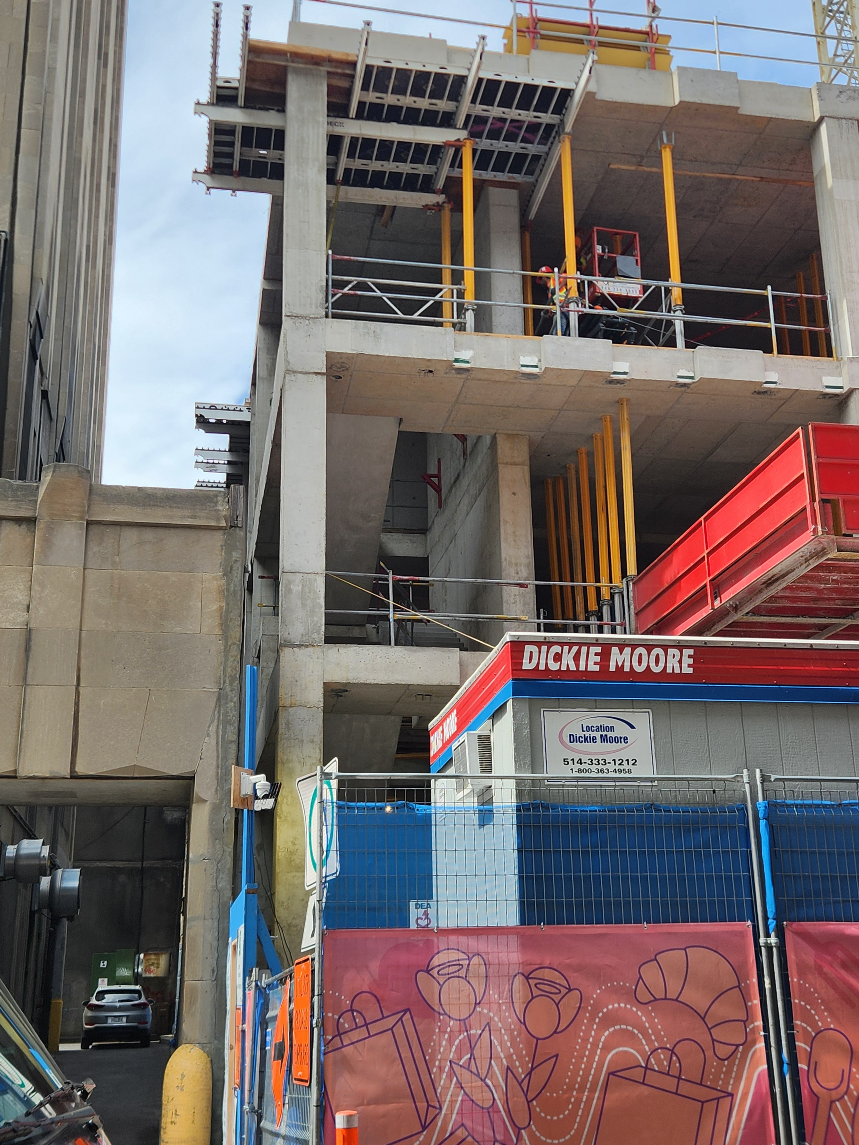 On vient de poser les escaliers de béton intérieurs. Je crois que l’espace vide à l’est, là où se trouve la grue, sera le hall d’entrée surdimentionné.