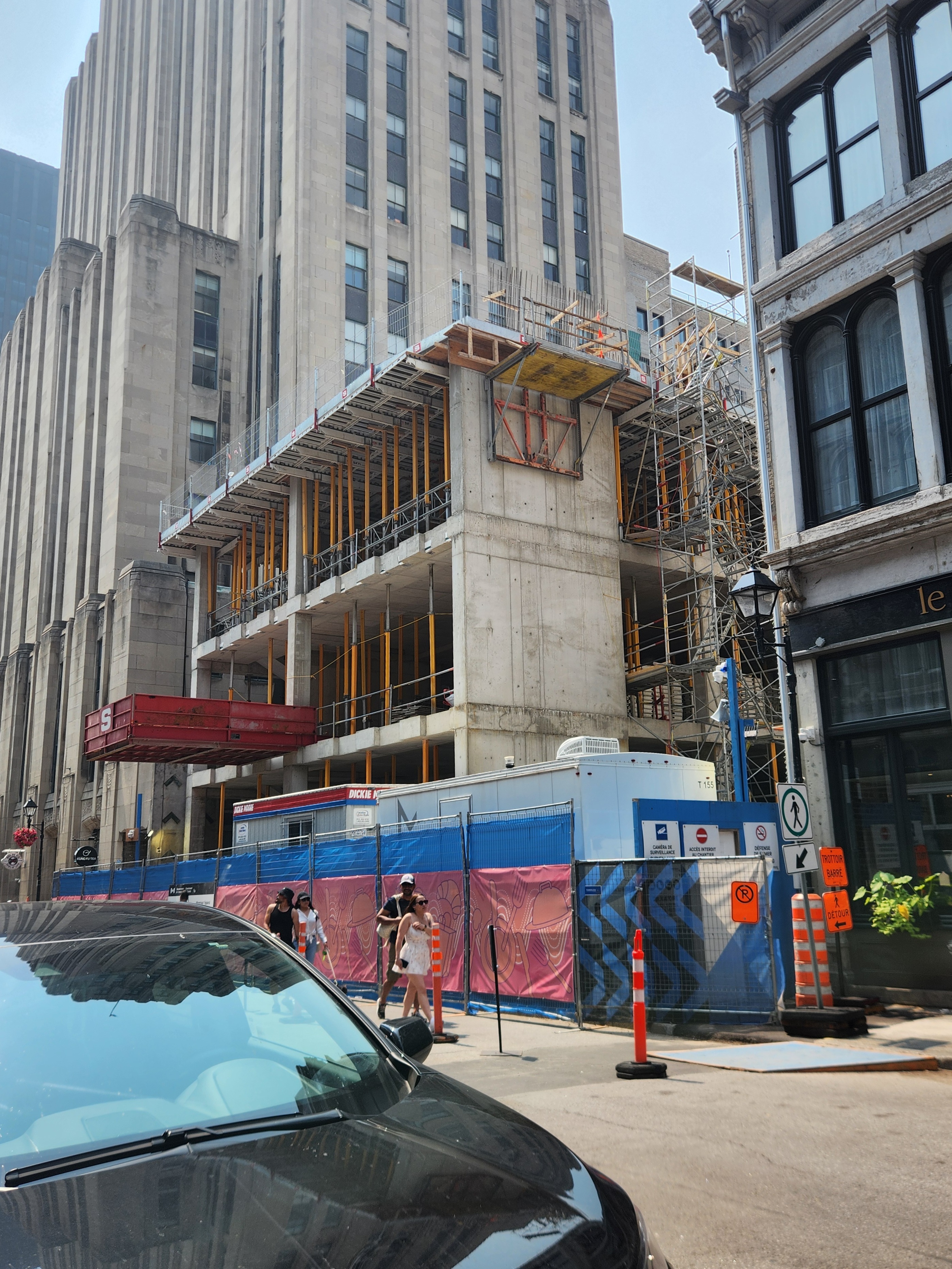 Une amélioration notable pour la trame urbaine et la préservation de la perspective sur la rue Notre-Dame, qui d’après les esquisses en tête de fil, s’alignera avec les premiers étages de l’édifice Aldred, sans toutefois le cacher davantage à partir de la rue.