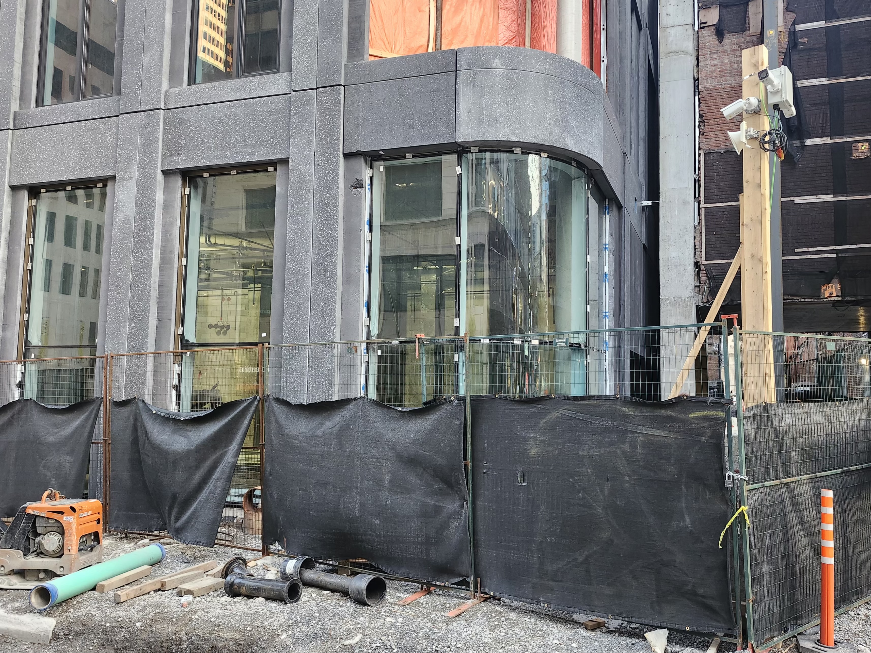 Le problème n’est pas les fenêtres ronde mais le precast rond, c’est pour ça que les fenêtres ne sont pas installés encore.