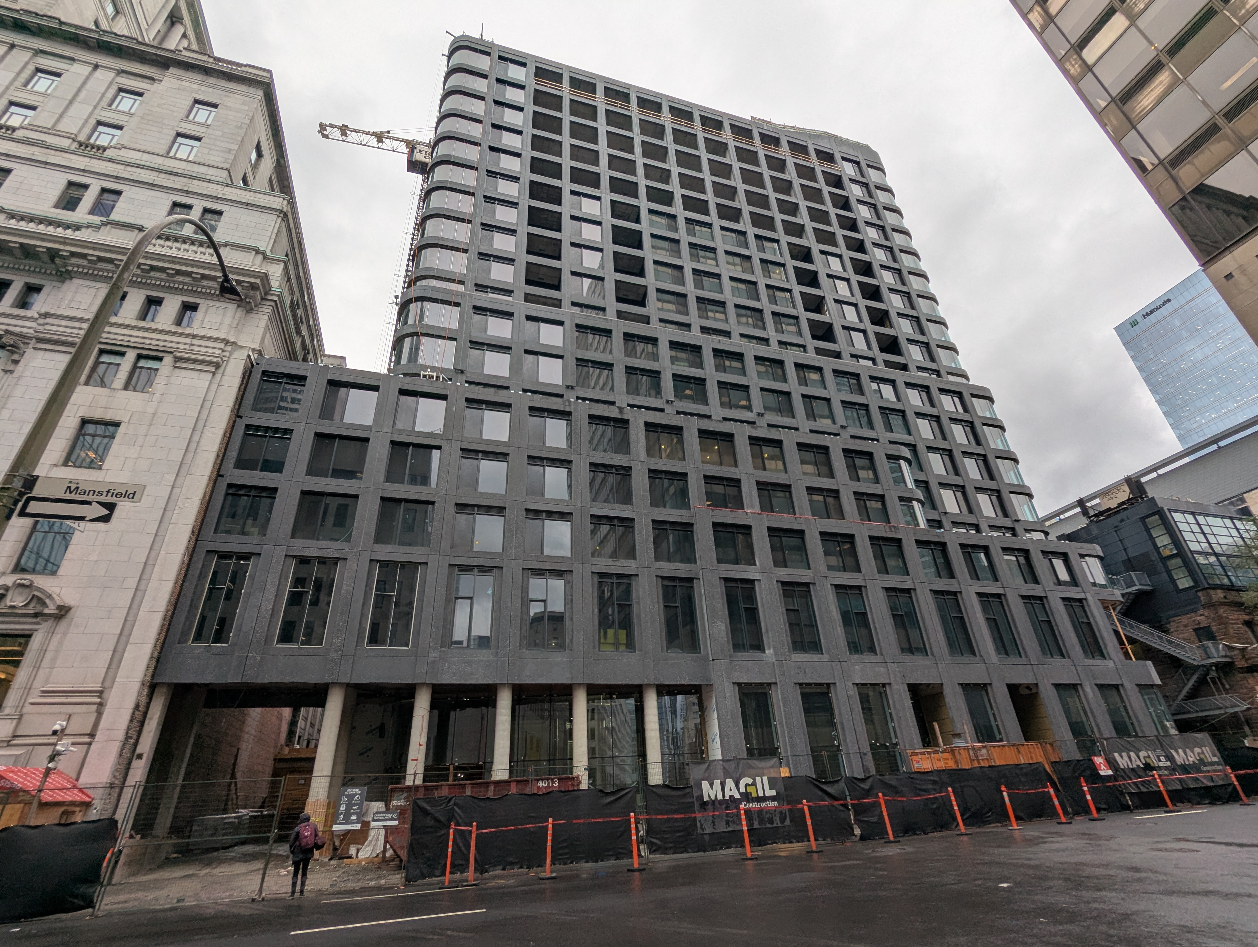 J’espère que la tour Rogers se parera d’un nouveau mur-rideau prochainement. C’est assez curieux pour un propriétaire de maintenir une finition extérieure aussi défraîchie, dans une optique d’attraction de locataires de prestige au coeur du quartier des affaires.