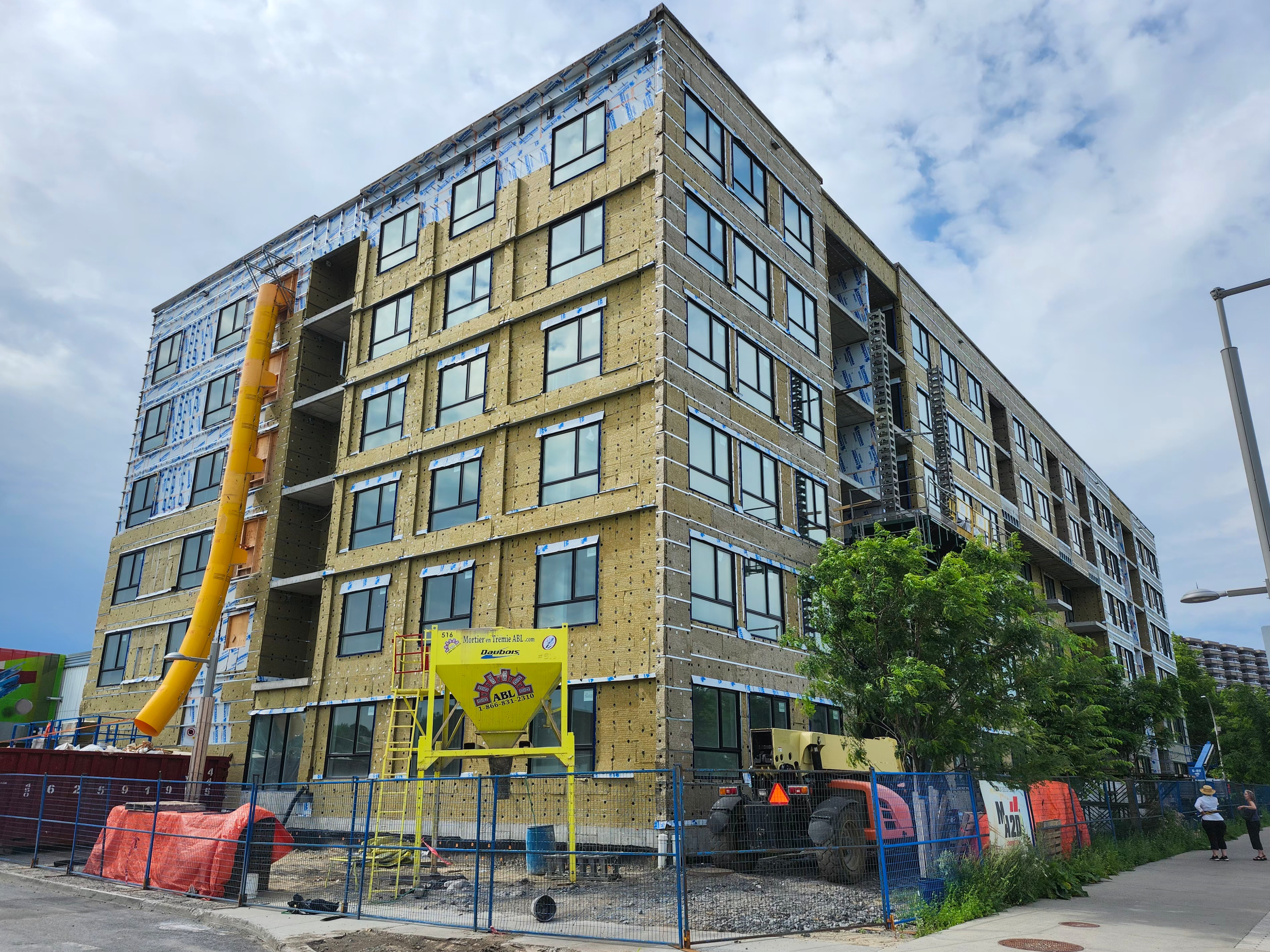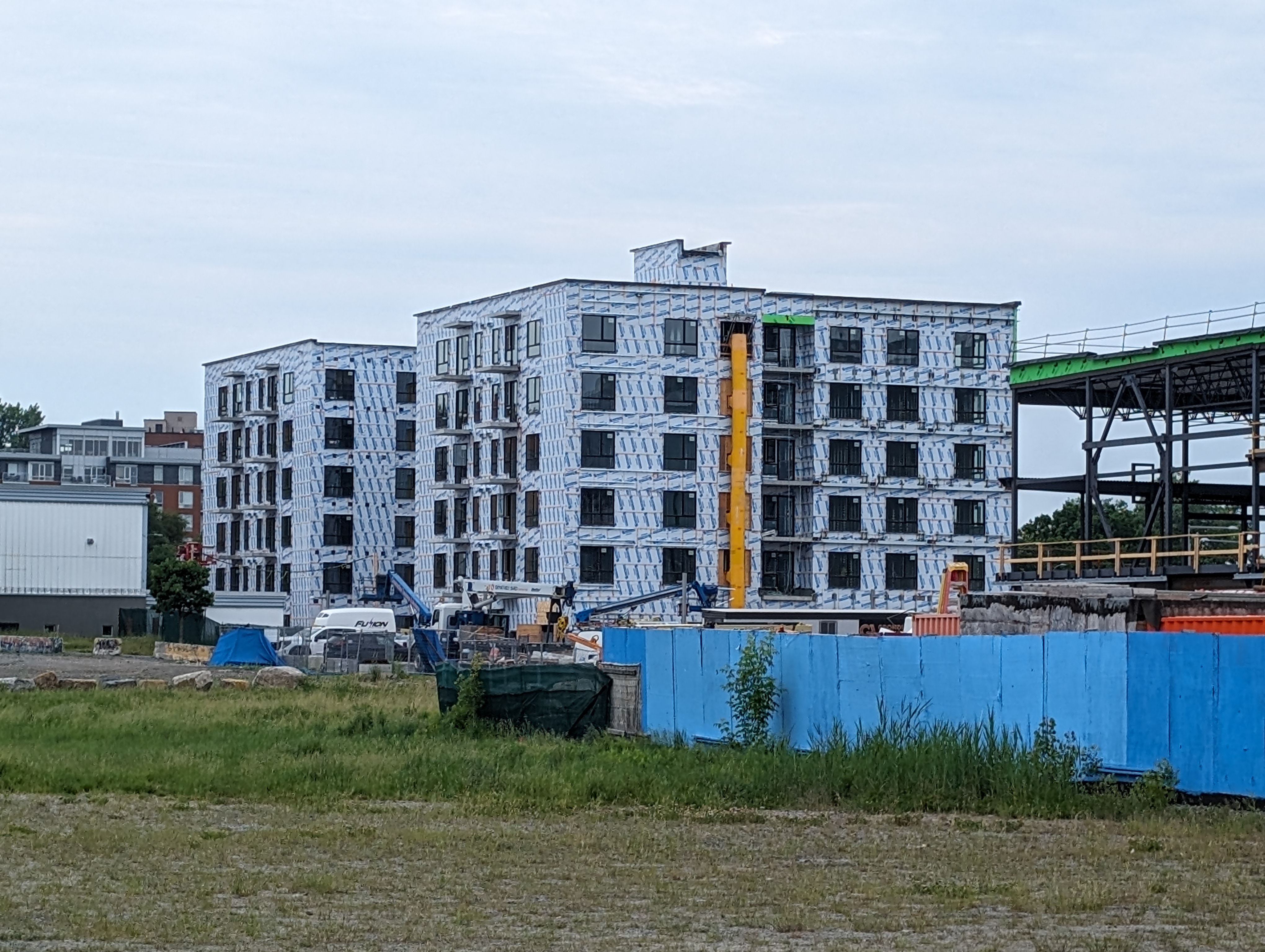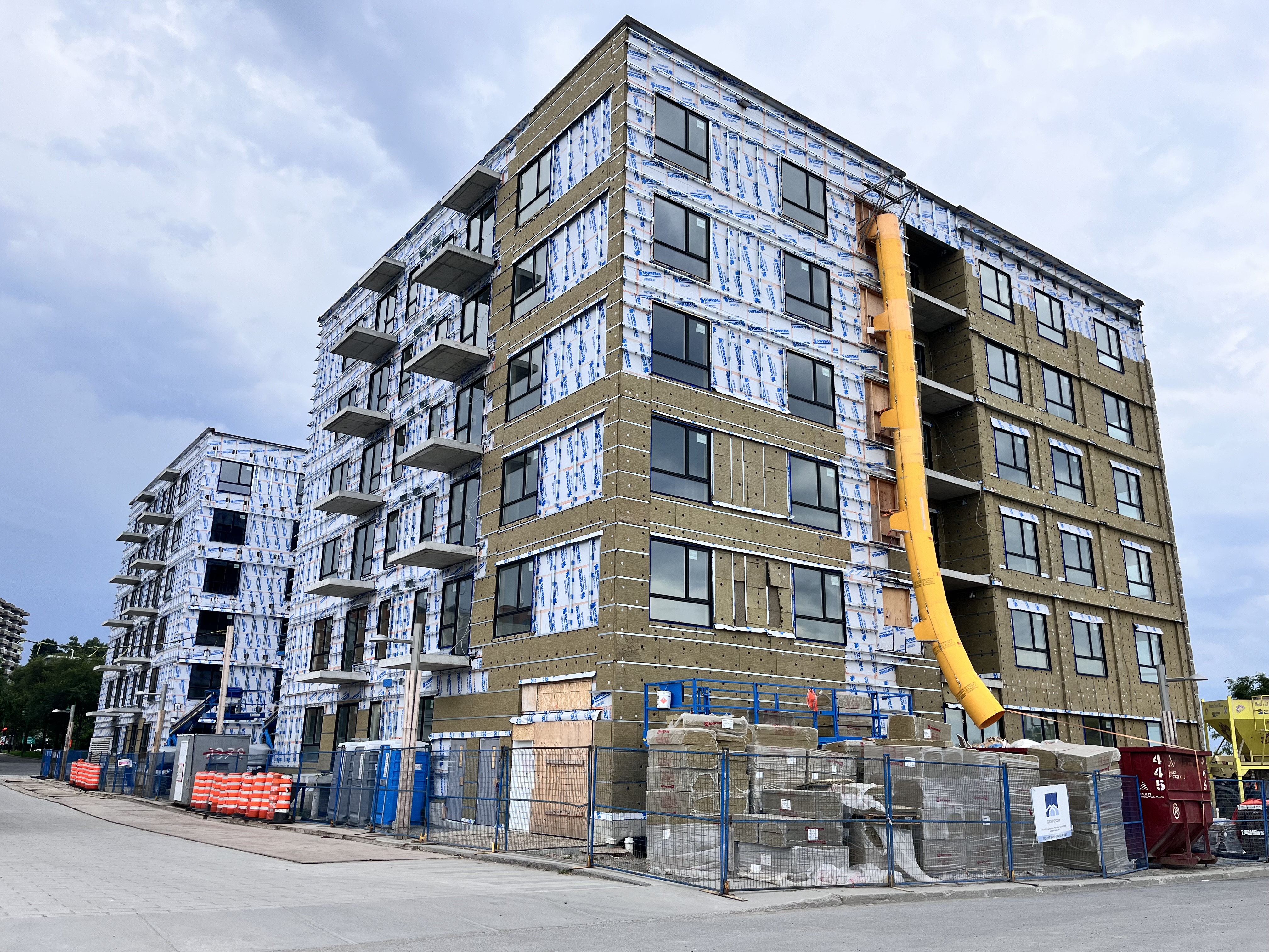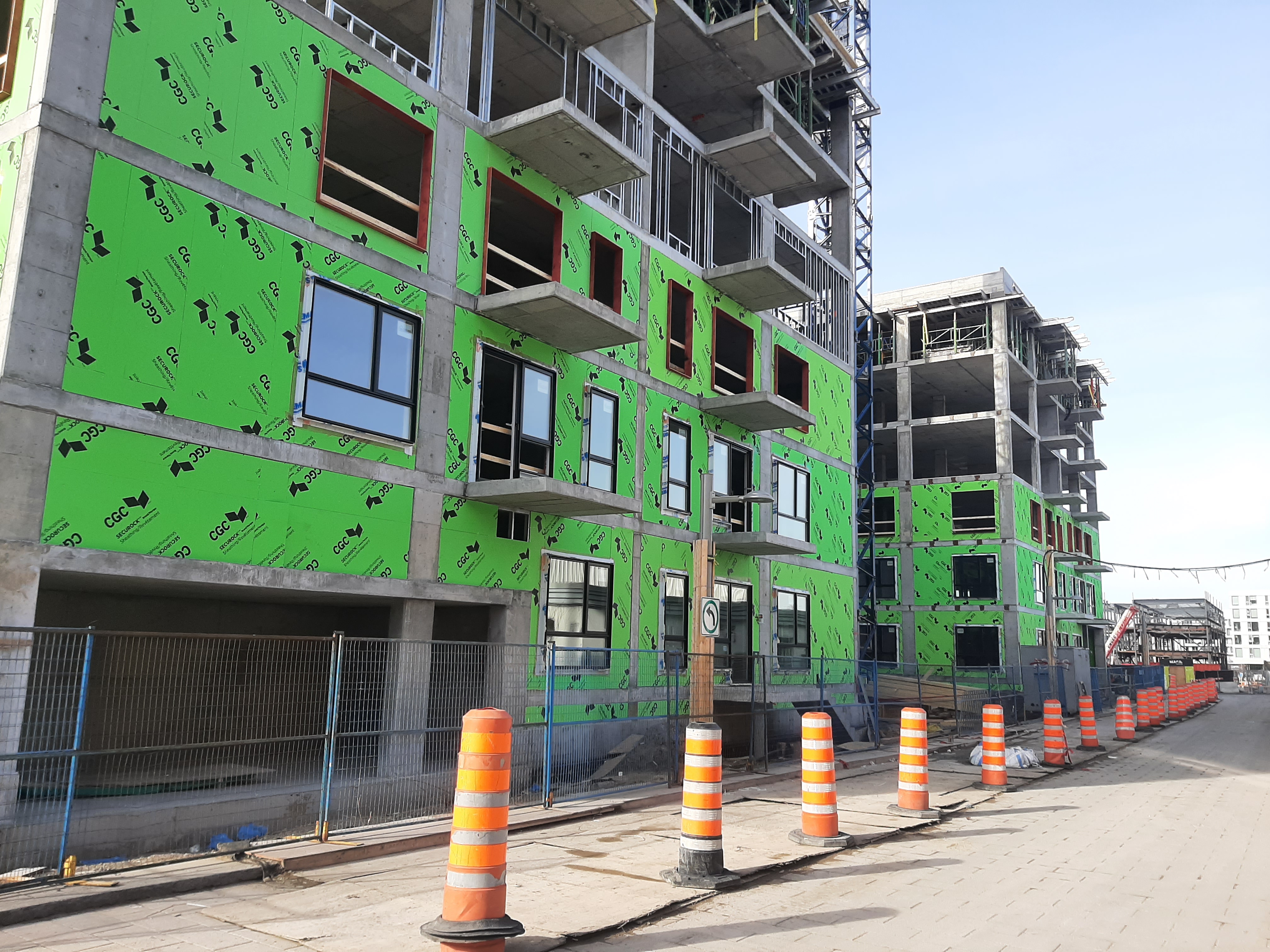Un peu de progrès sur le pare-vapeur et on voit quelques nouveau encrages sur la façade pour le revêtement j’imagine: