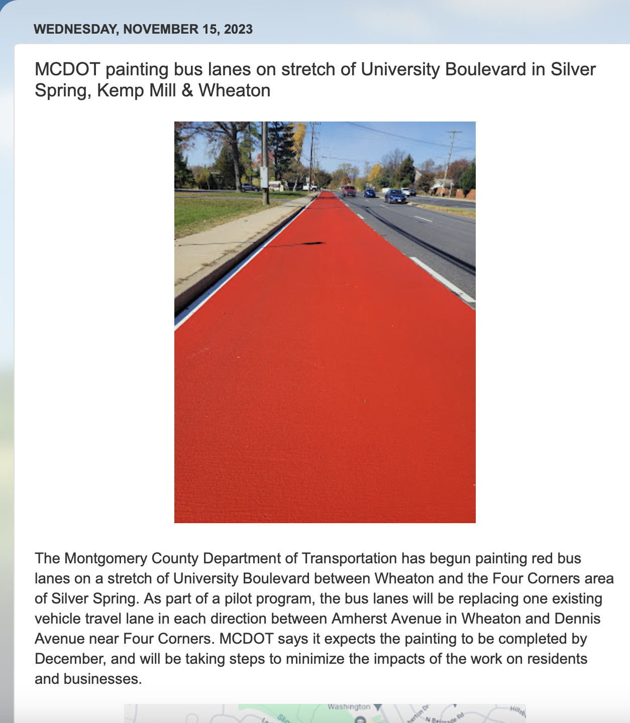 Ça semble être le même produit qui a été appliqué à Silver Spring en banlieue de Washington l’automne dernier, on dirait que ça vieillit bien: