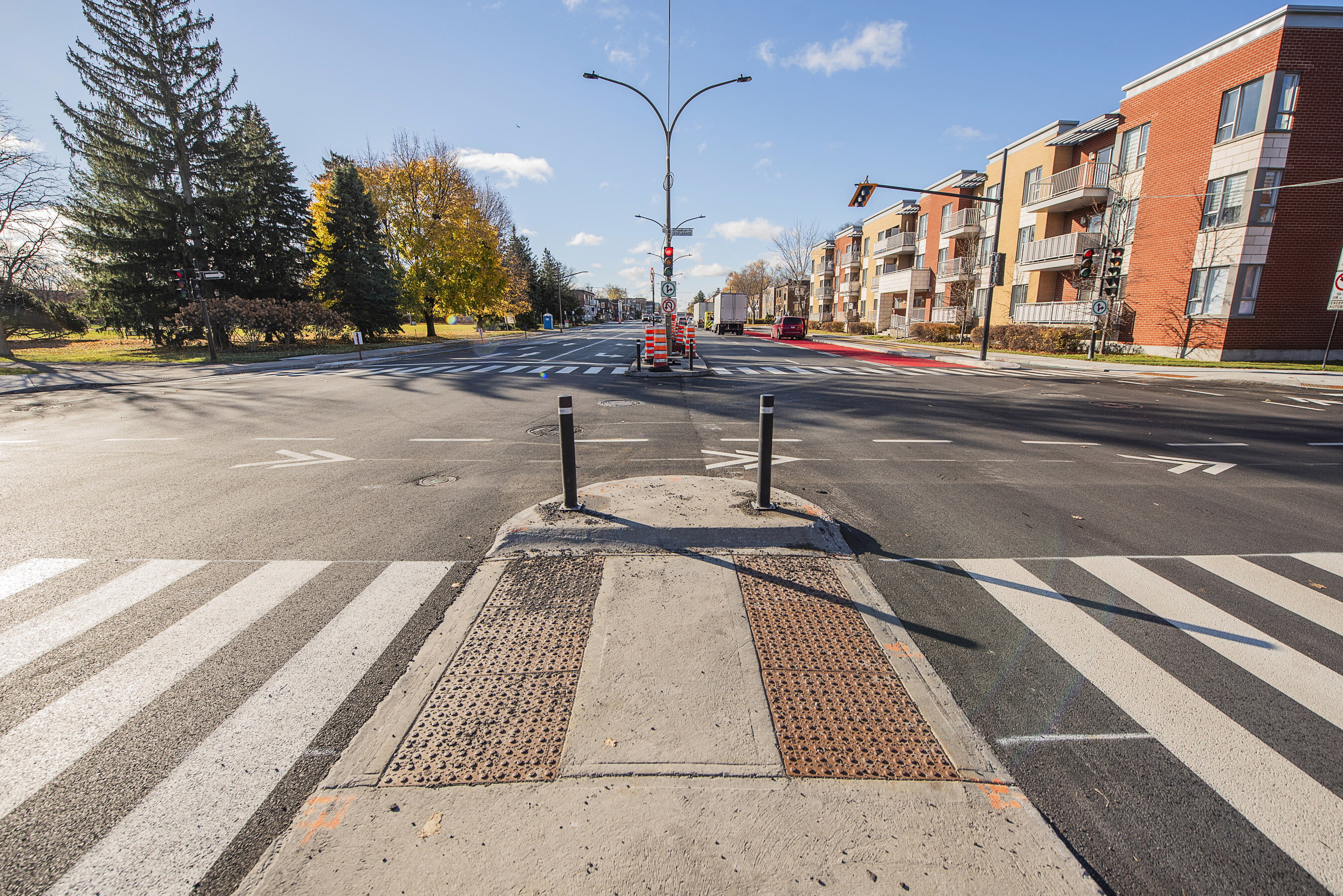 - Une sécurisation des intersections avec la construction de zones-refuges pour piétons et la mise aux normes des feux de circulation.