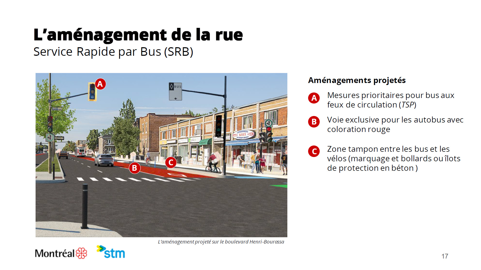 Je vois que même dans la terminologie de la STM, ils l’appelent un SRB. Intéressant! Est-ce que la fréquence des lignes sur le boulevard HB est améliorée?