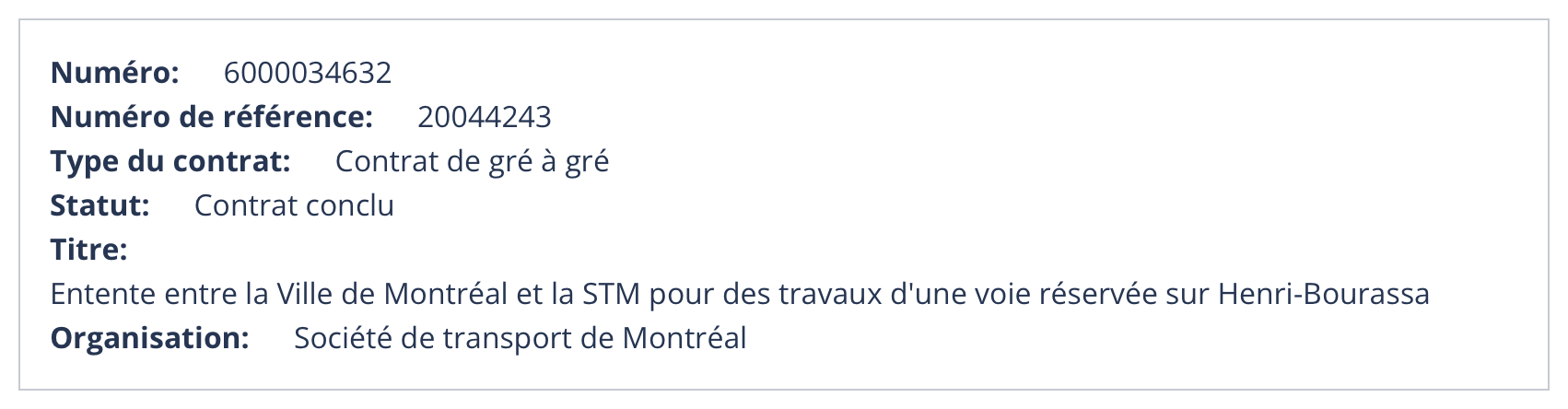 Ça ou bien la ville a démontré que le seul fournisseur existant est la STM et qu’une négociation avec un contrat gré à gré est plus avantageux qu’un appel d’offres.