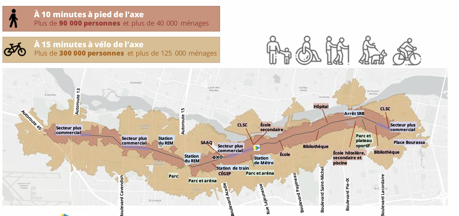 Je ne serais pas capable de donner des chiffres précises quant au nombre de personnes, mais je peux donner un chiffre du nombre de logements desservi par chacun des axes et vérifier les chiffres de la Ville.